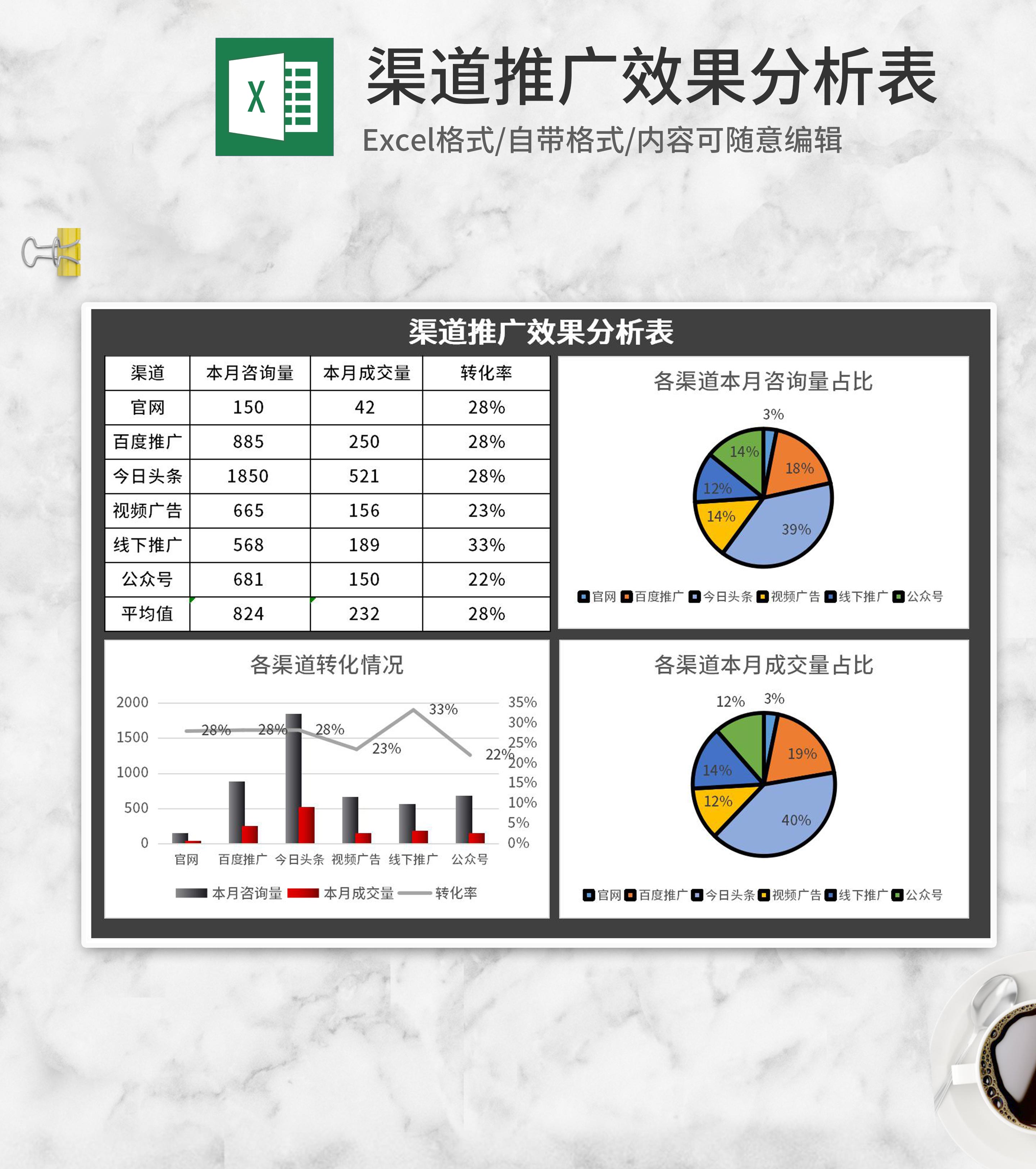 灰色渠道推广效果分析表Excel模板