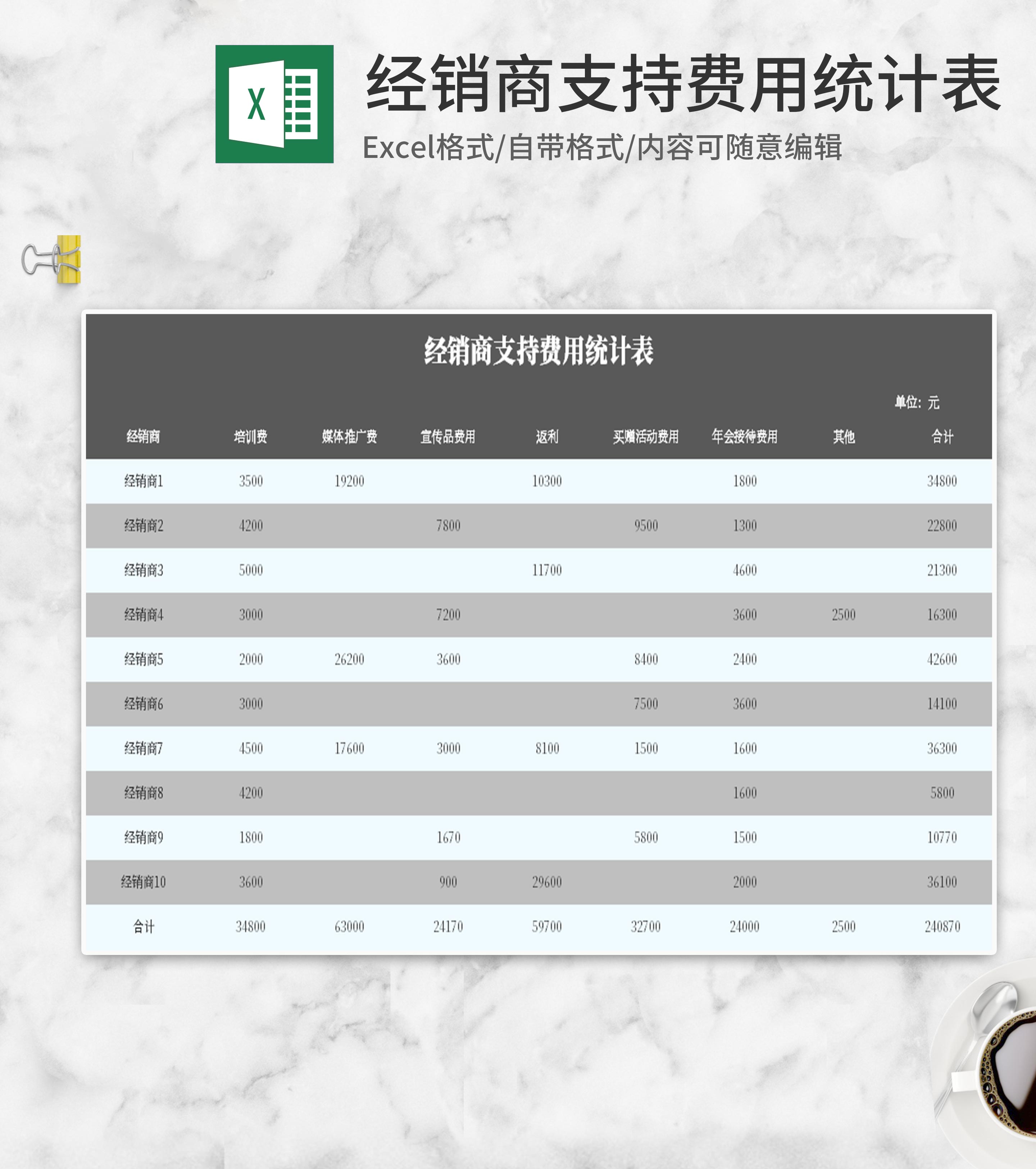 简约灰色经销商支持费用统计表Excel模板