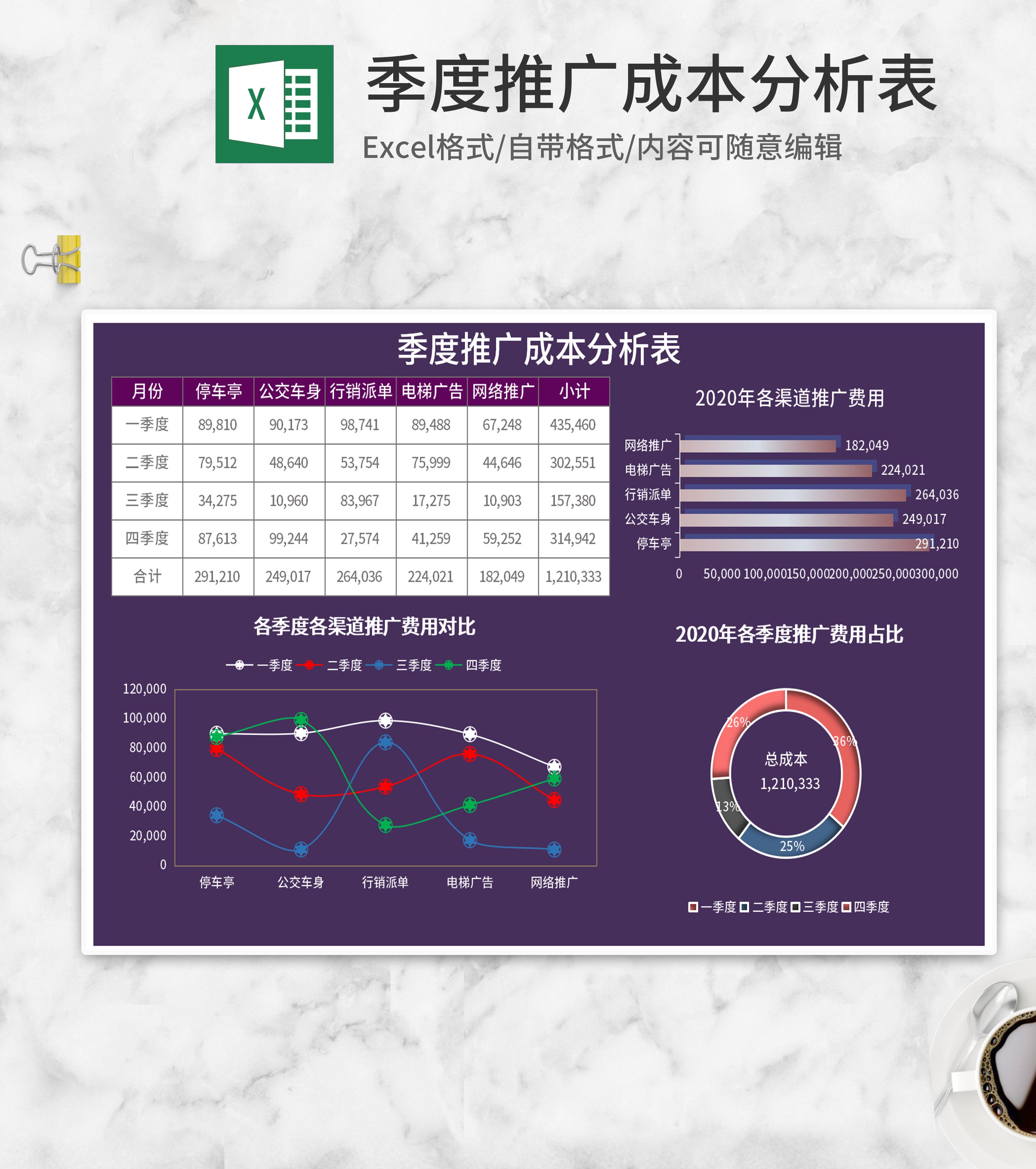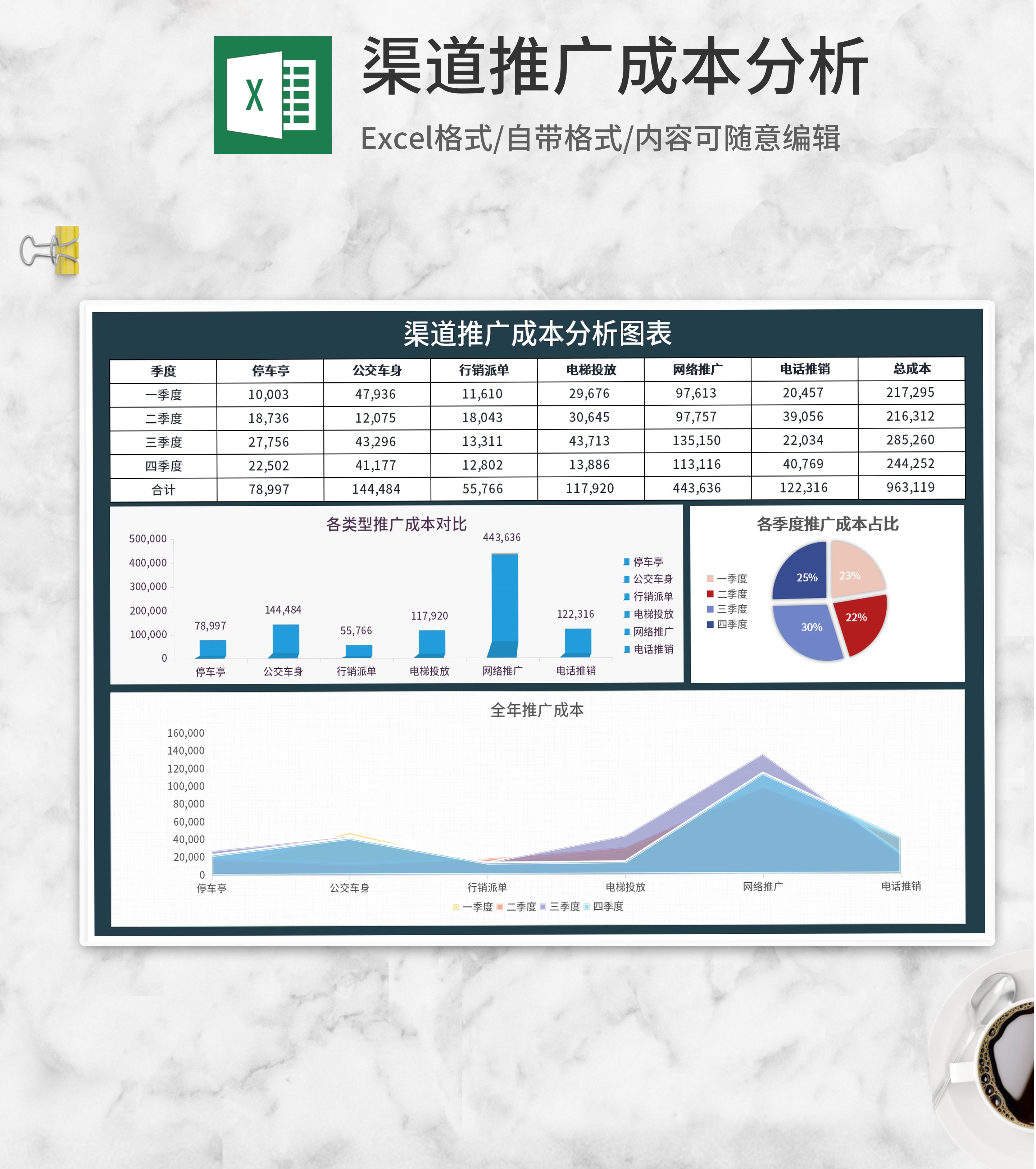 渠道季度推广成本分析Excel模板