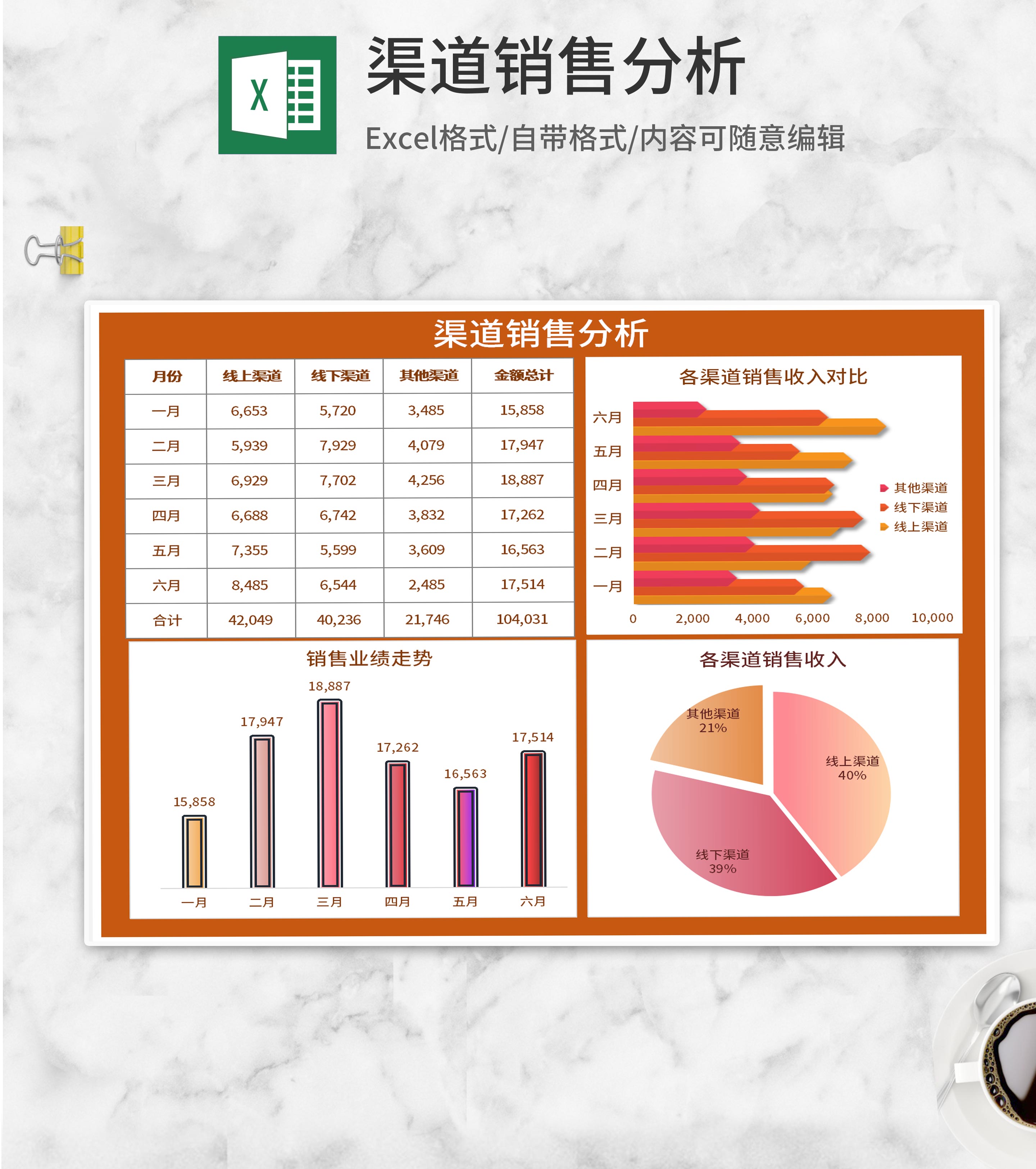 橘色月度渠道销售分析Excel模板