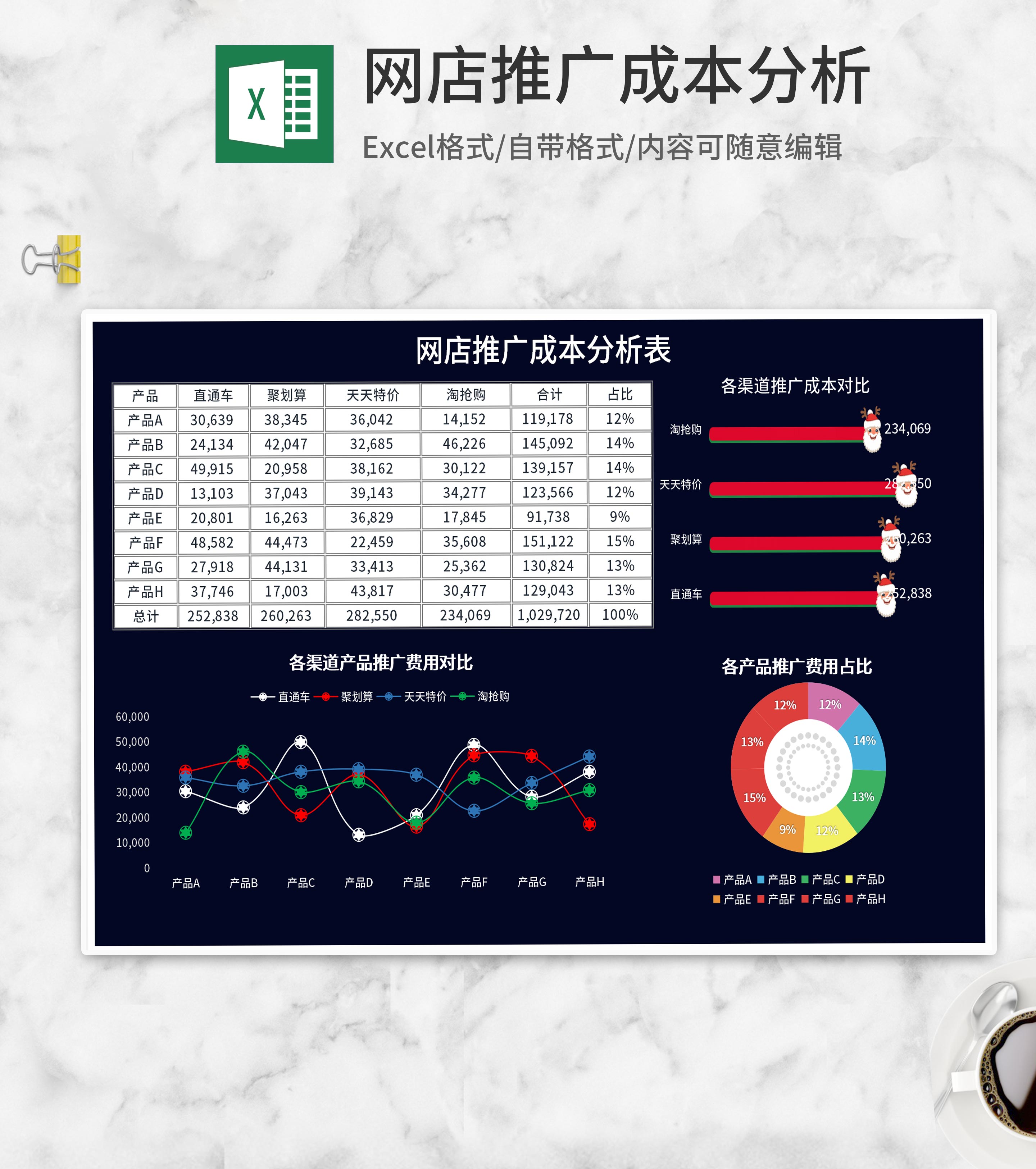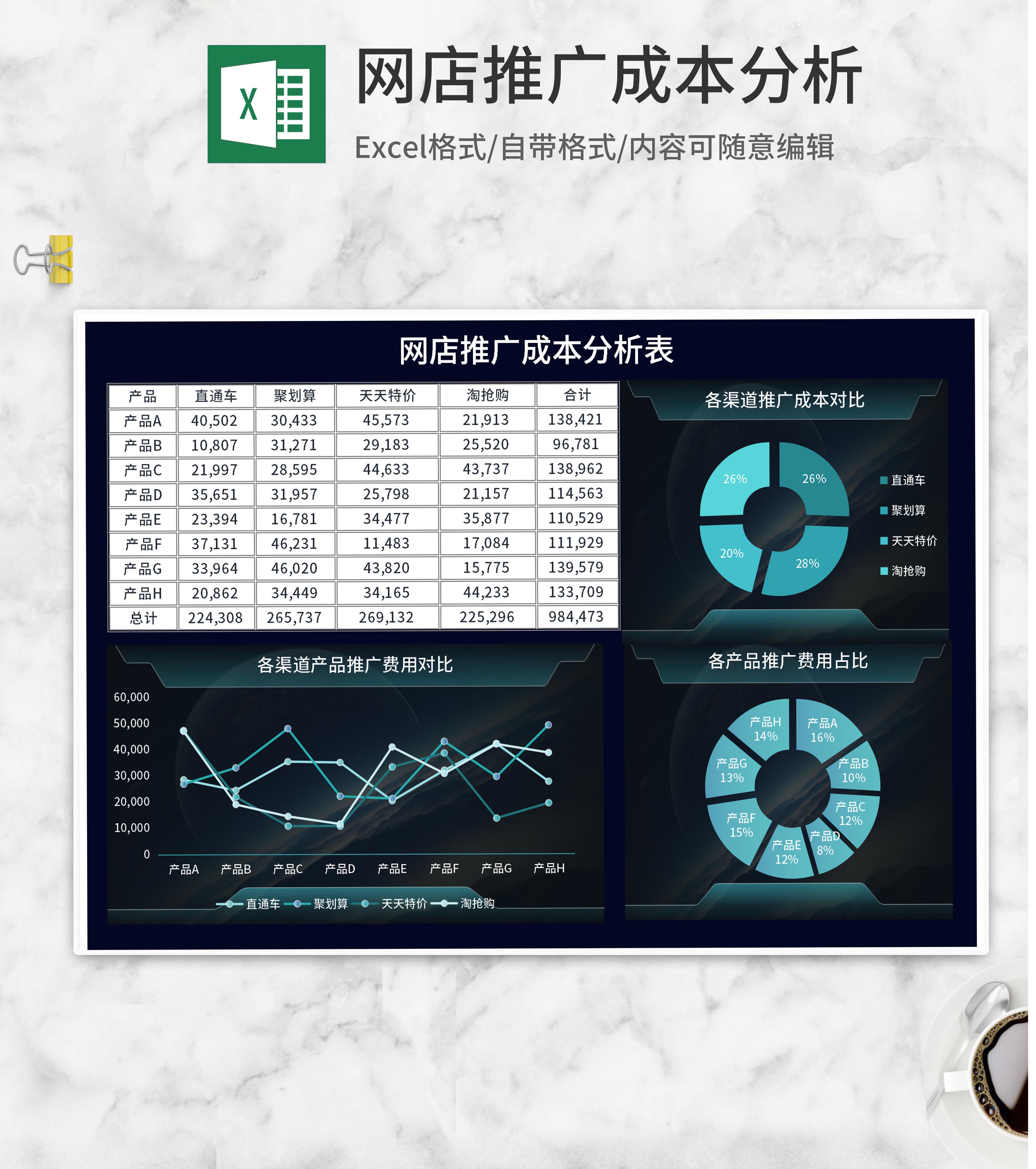 深蓝网店推广成本分析Excel模板
