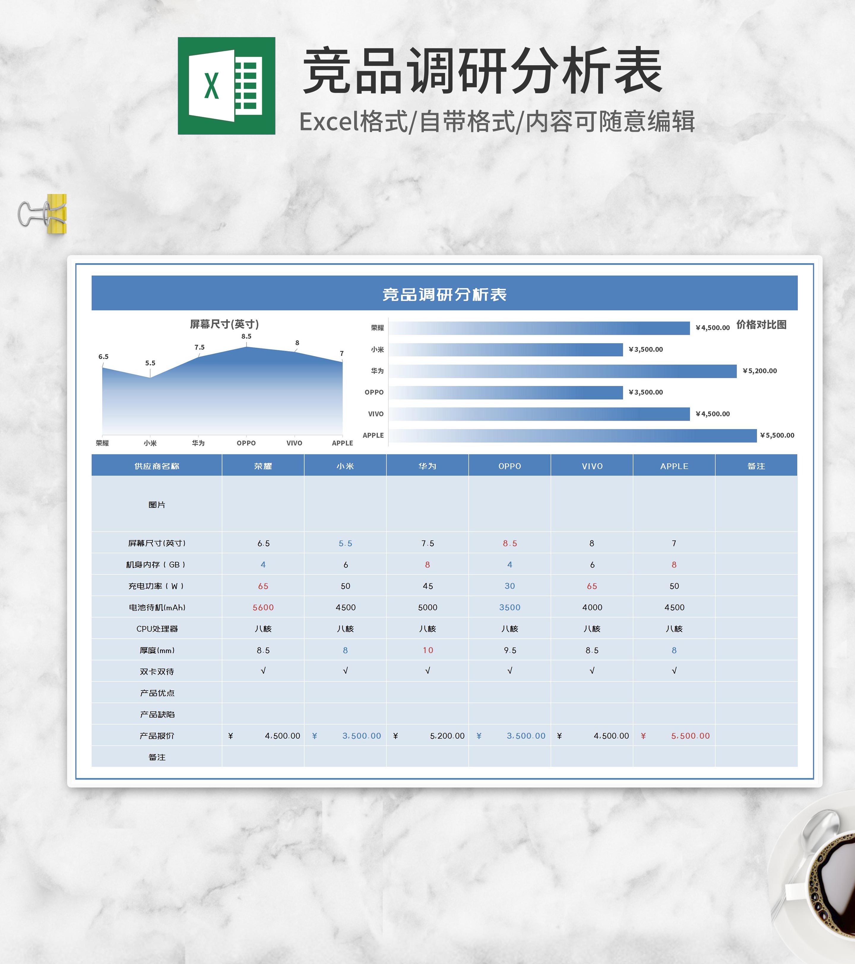 蓝色竞品调研分析表Excel模板