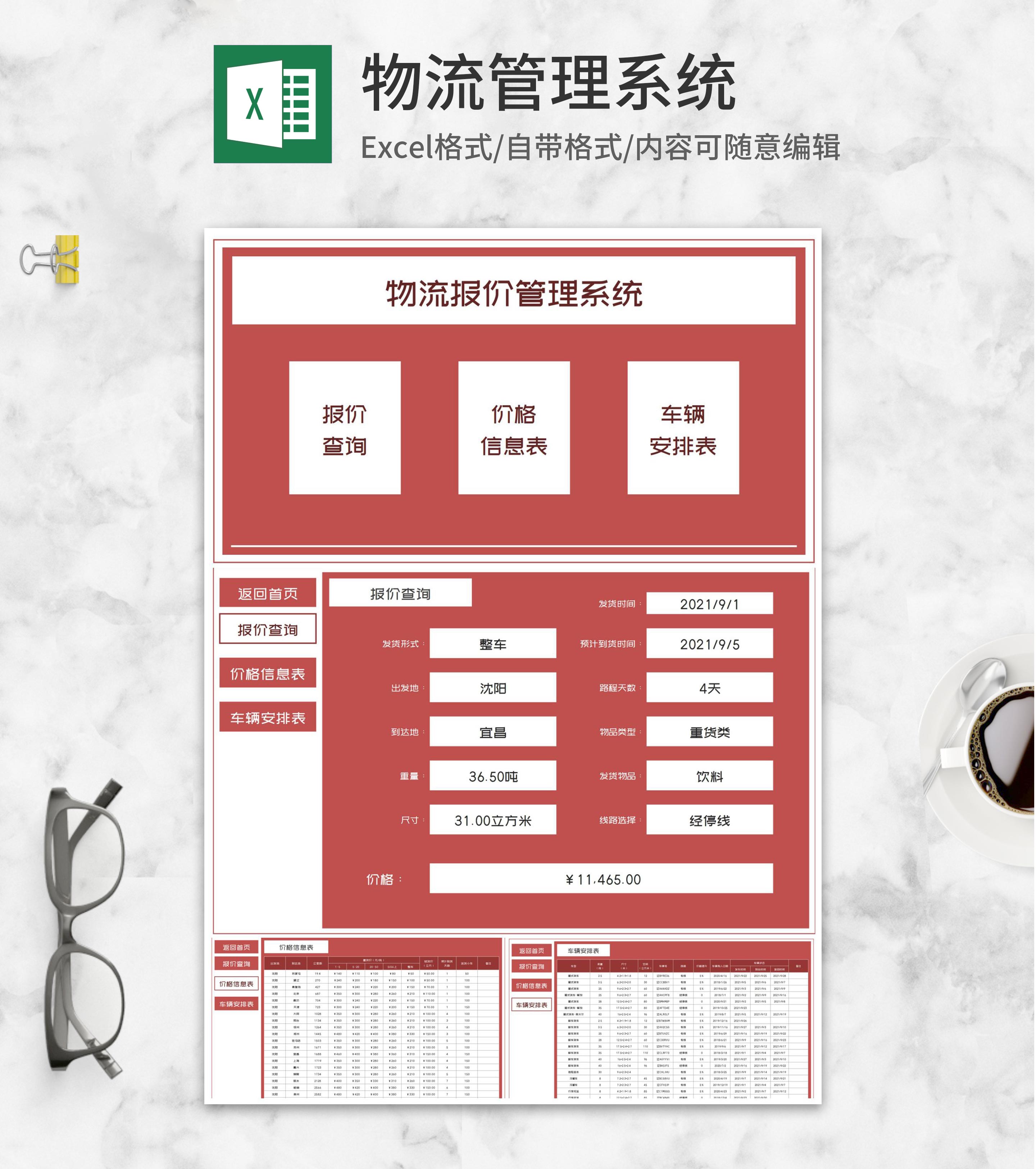物流运输报价管理系统Excel模板