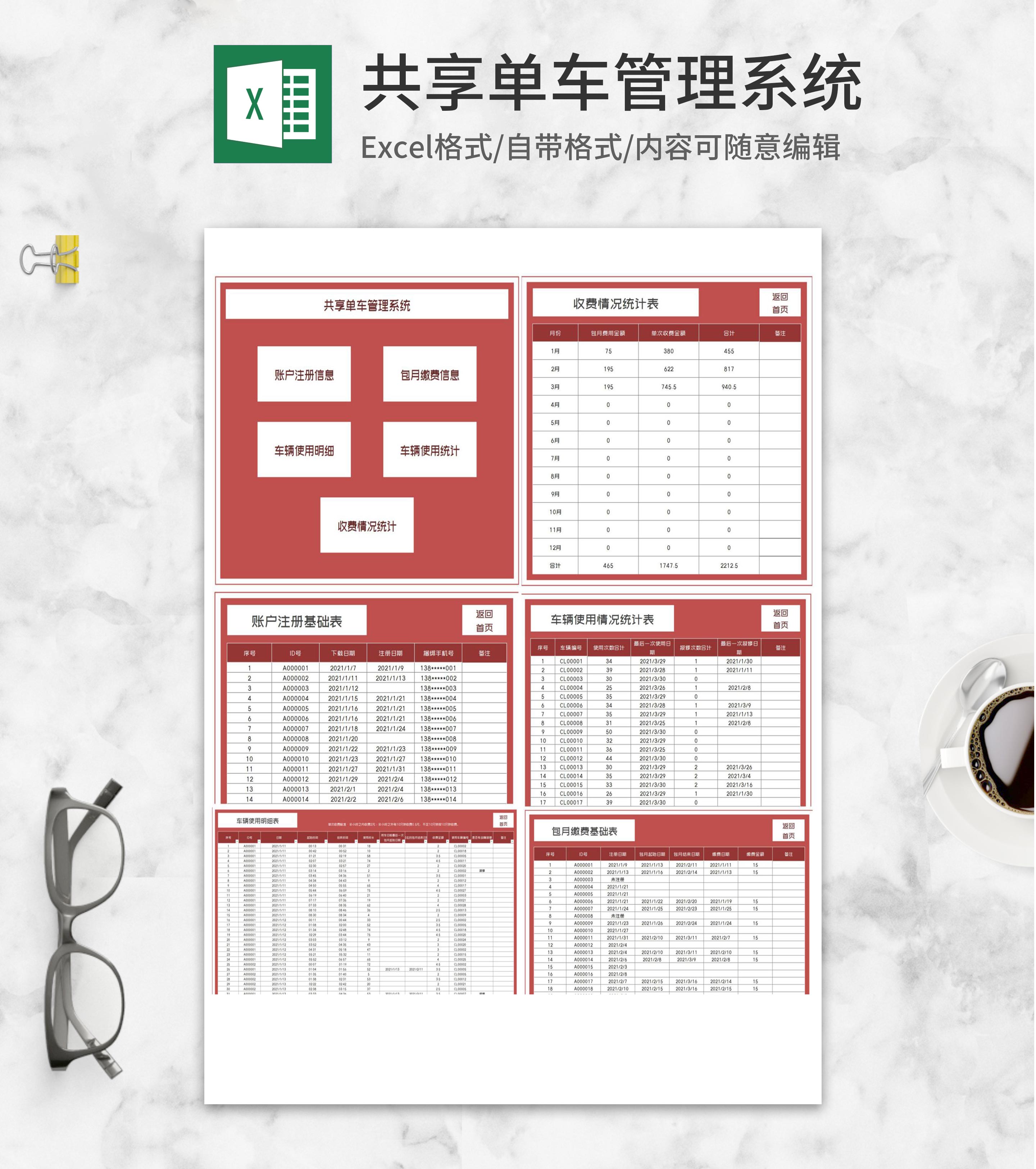 共享单车客户管理系统Excel模板