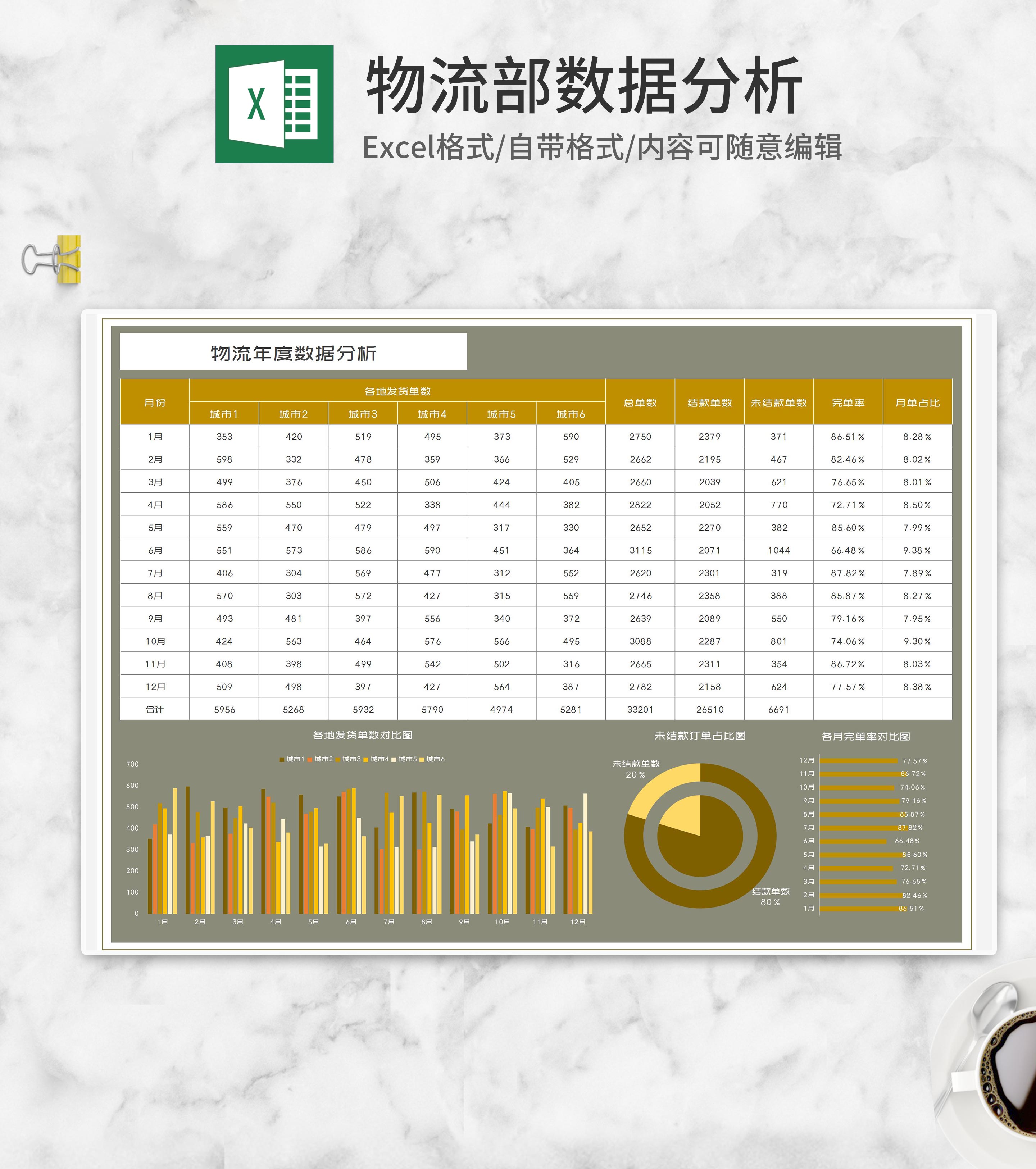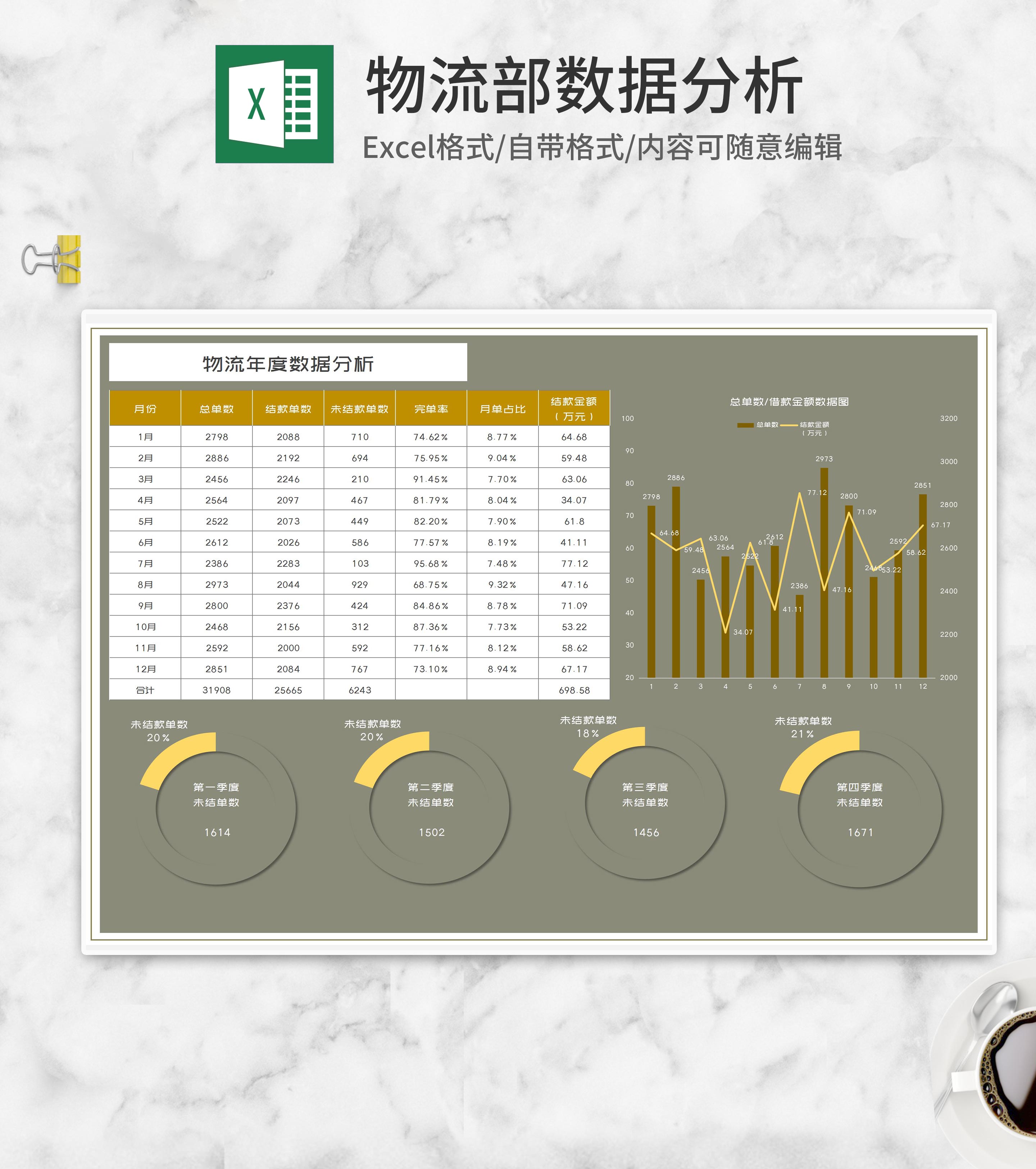 物流年度数据分析Excel模板