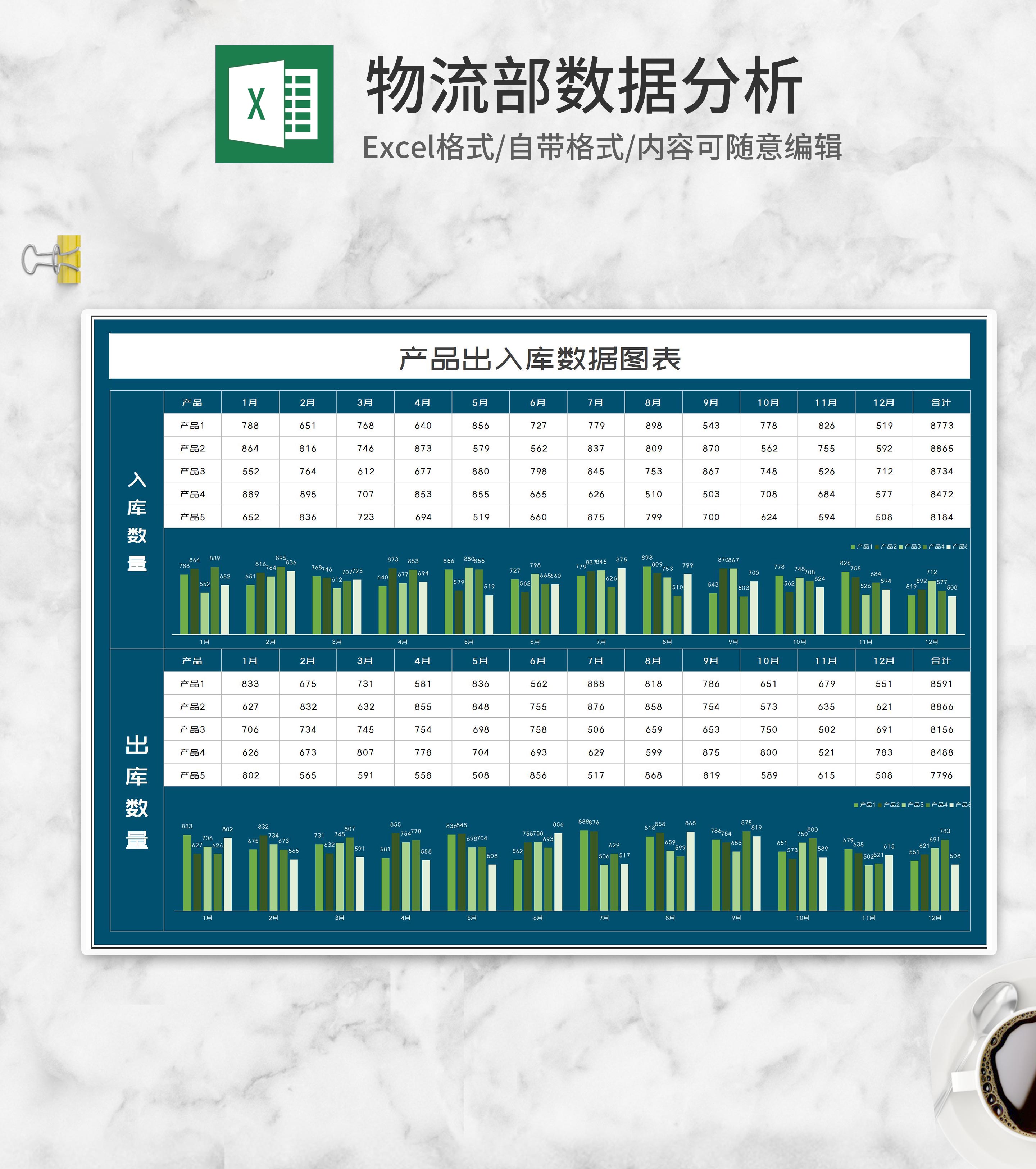 产品出入库数据图表Excel模板