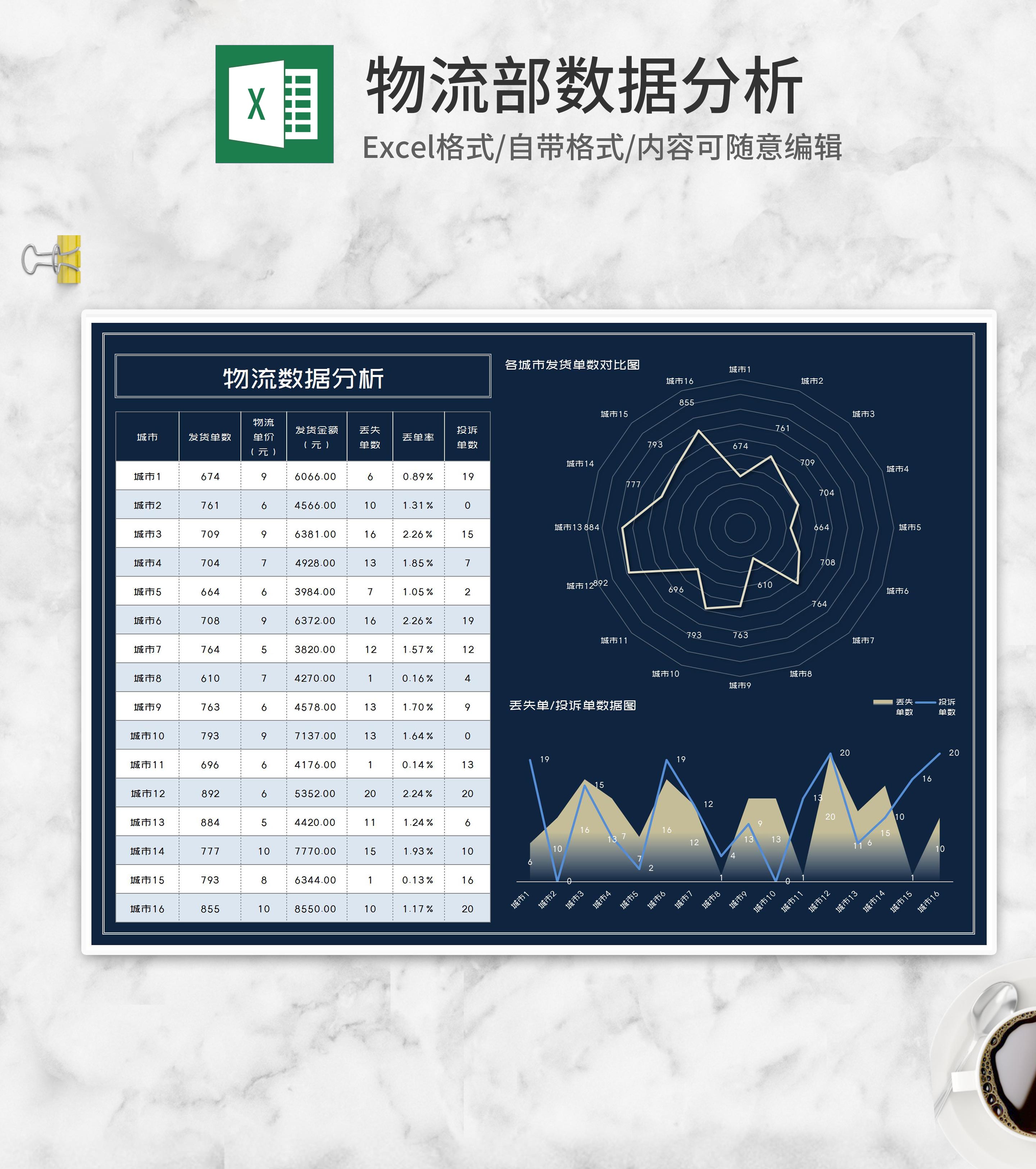 商务风城市物流数据分析Excel模板