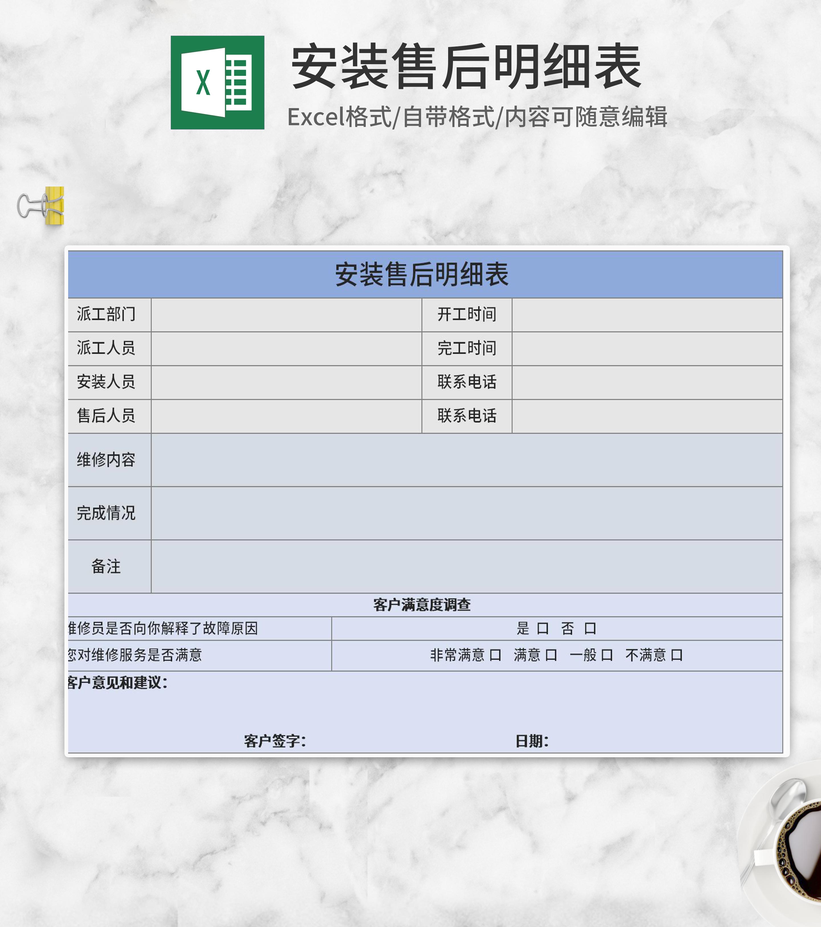 简约蓝色安装售后明细表Excel模板