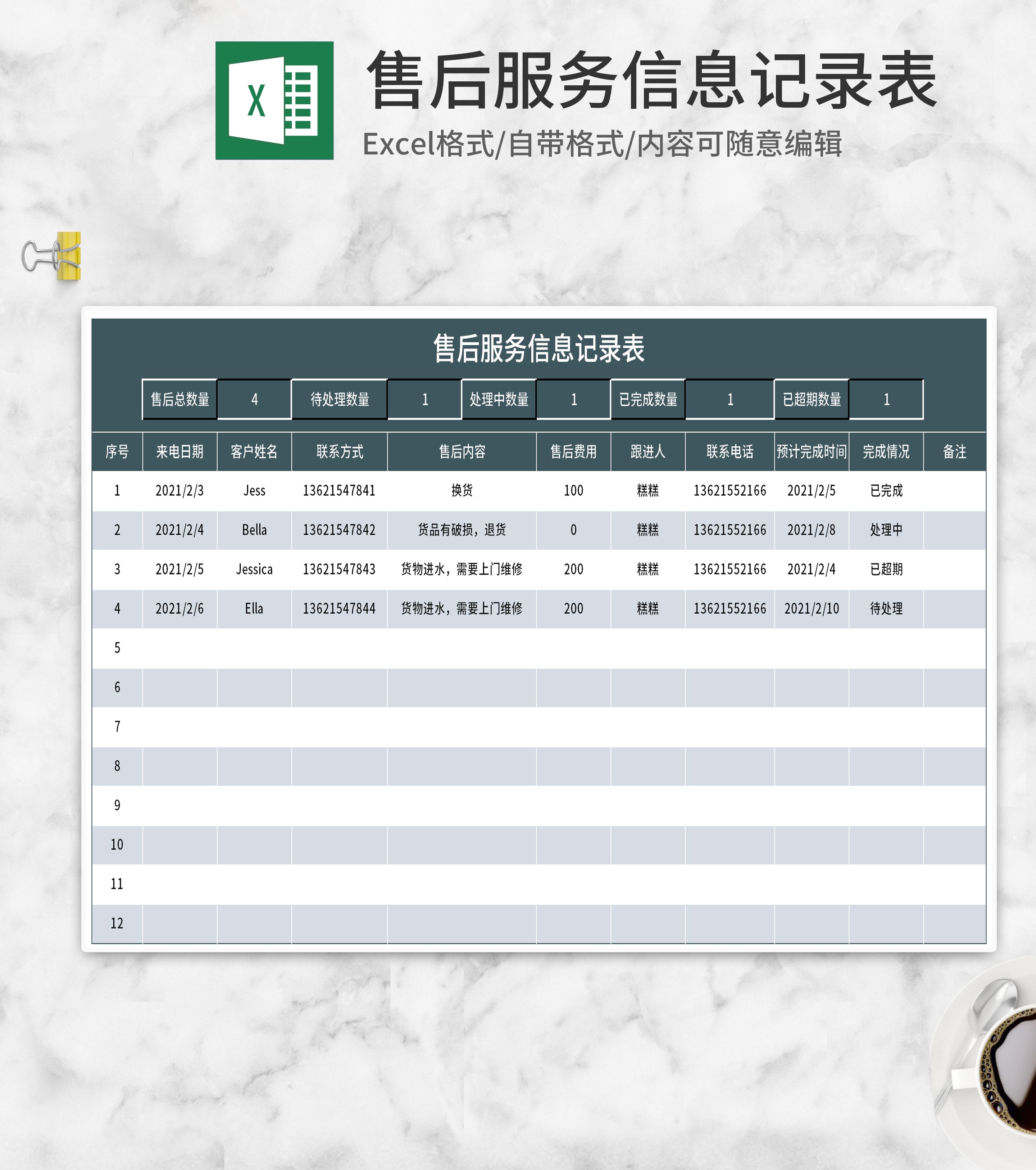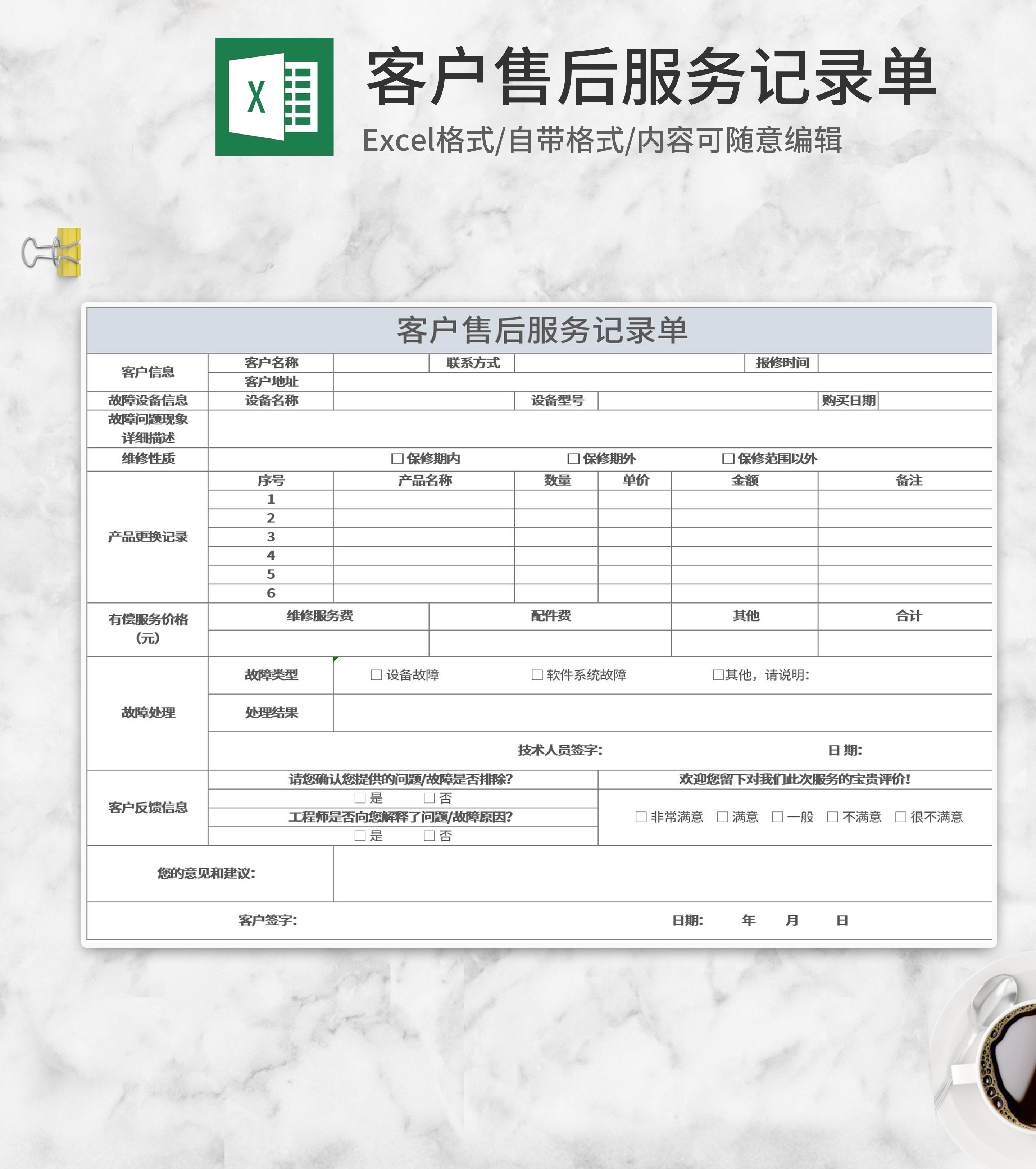 售后服务信息记录表Excel模板