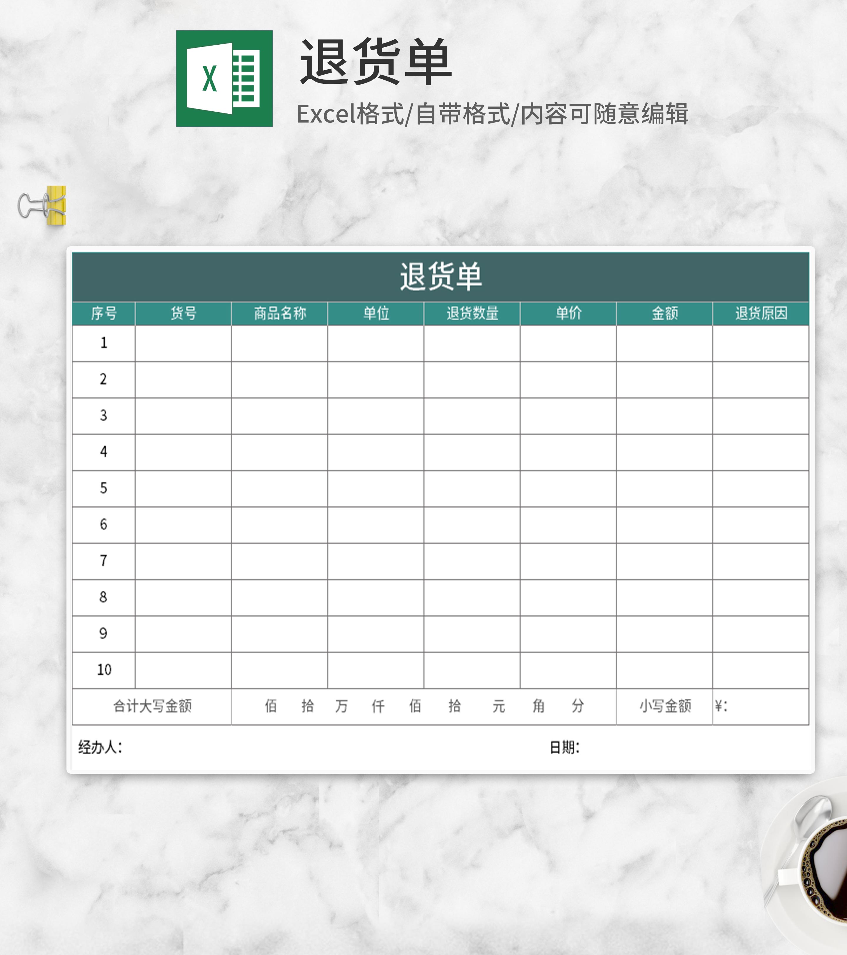 绿色产品退货单Excel模板