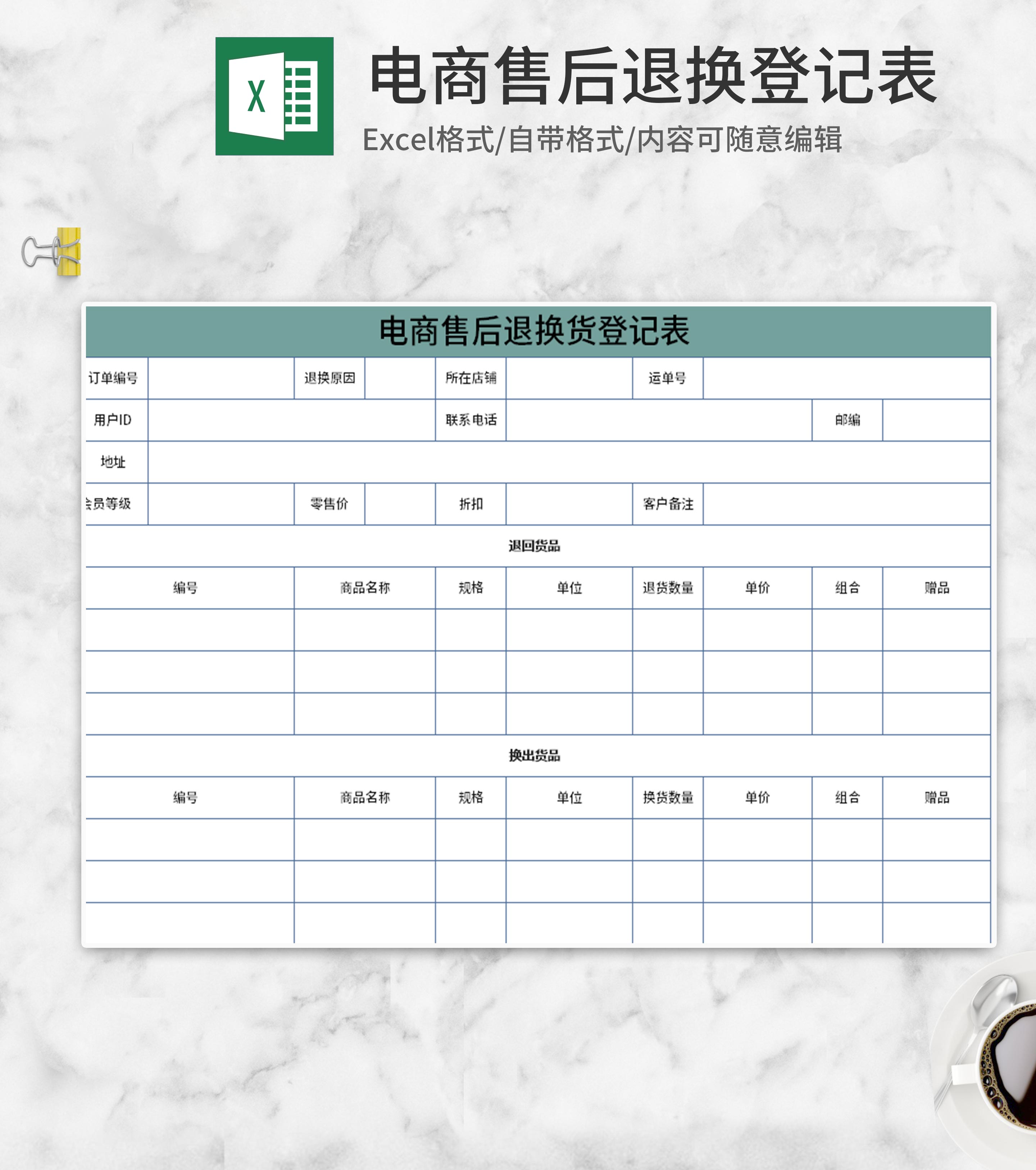简约青色电商售后退换登记表Excel模板