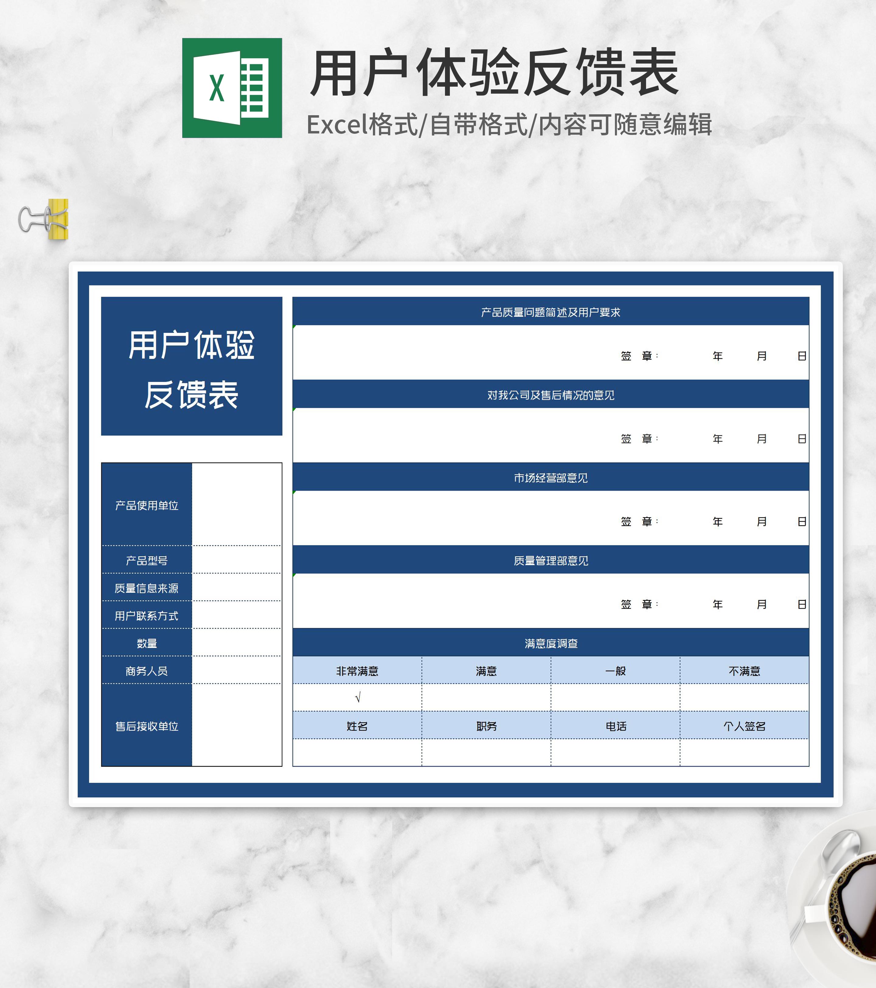公司产品用户体验反馈表Excel模板