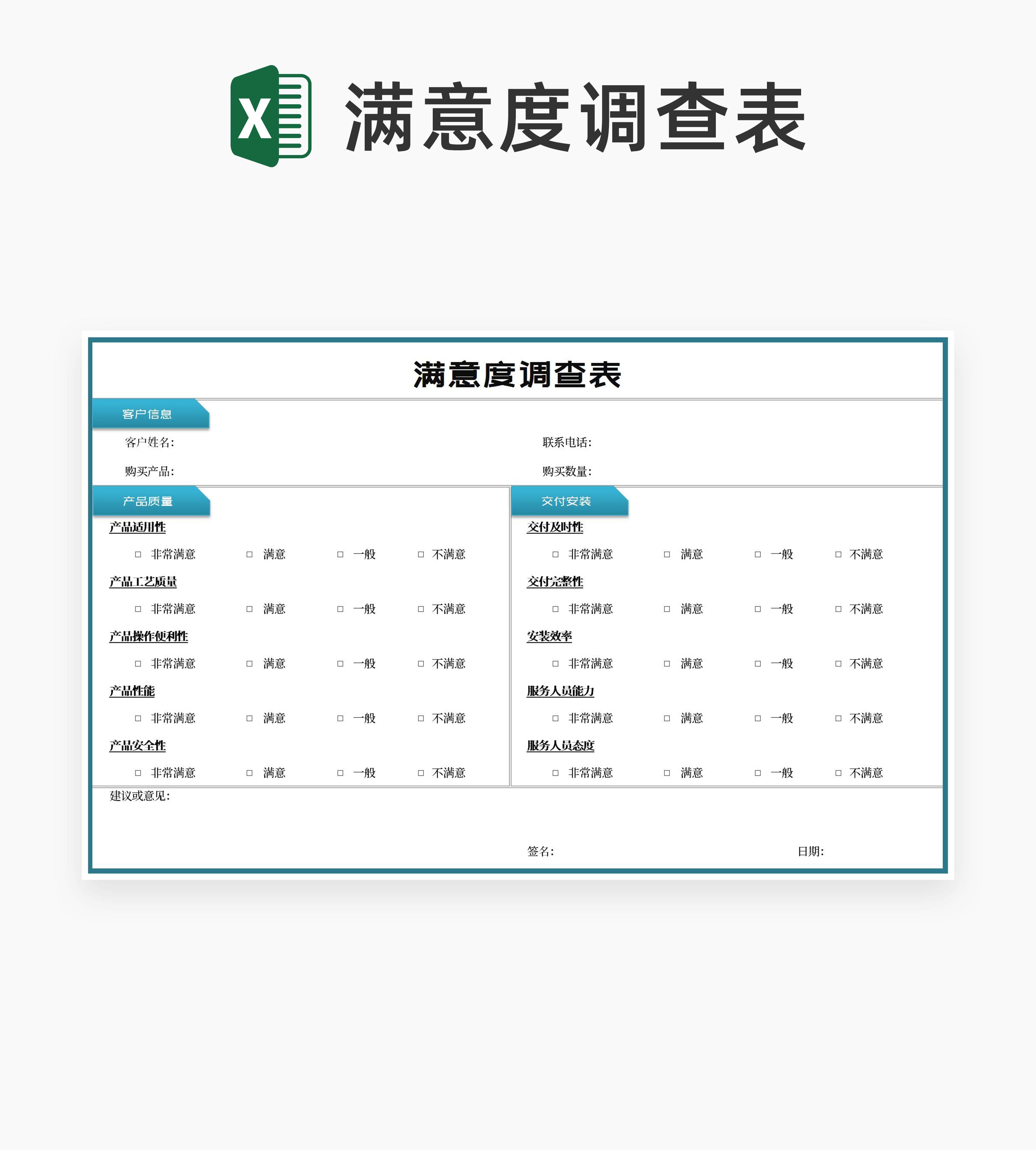 客户产品满意度调查表Excel模板