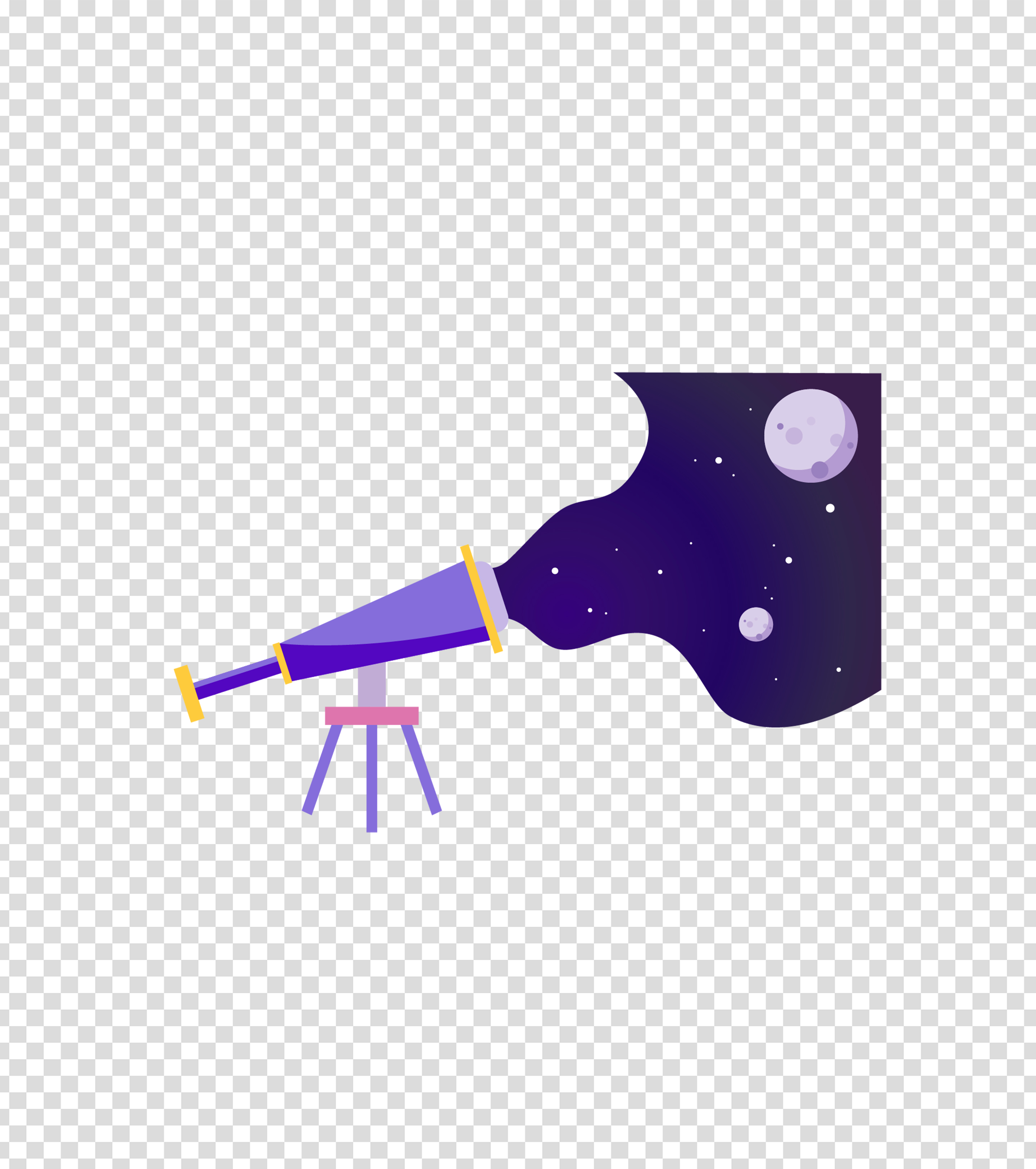 紫色宇宙望远镜看星空插画