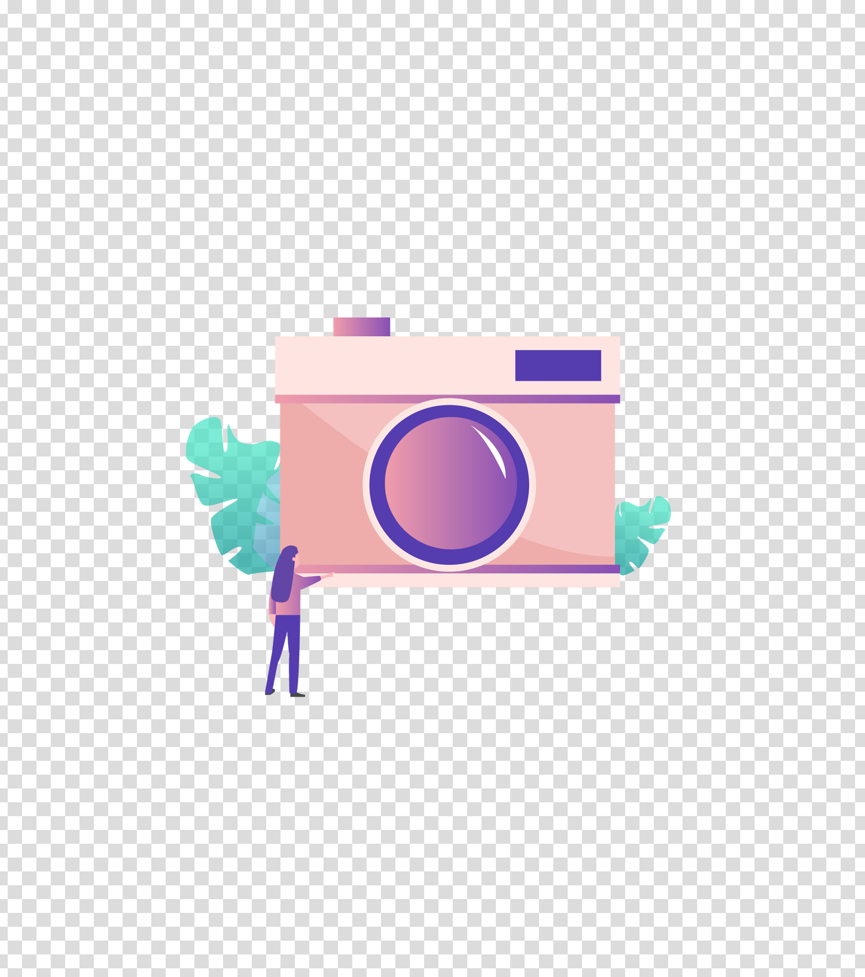 粉色旅游拍照女孩插画