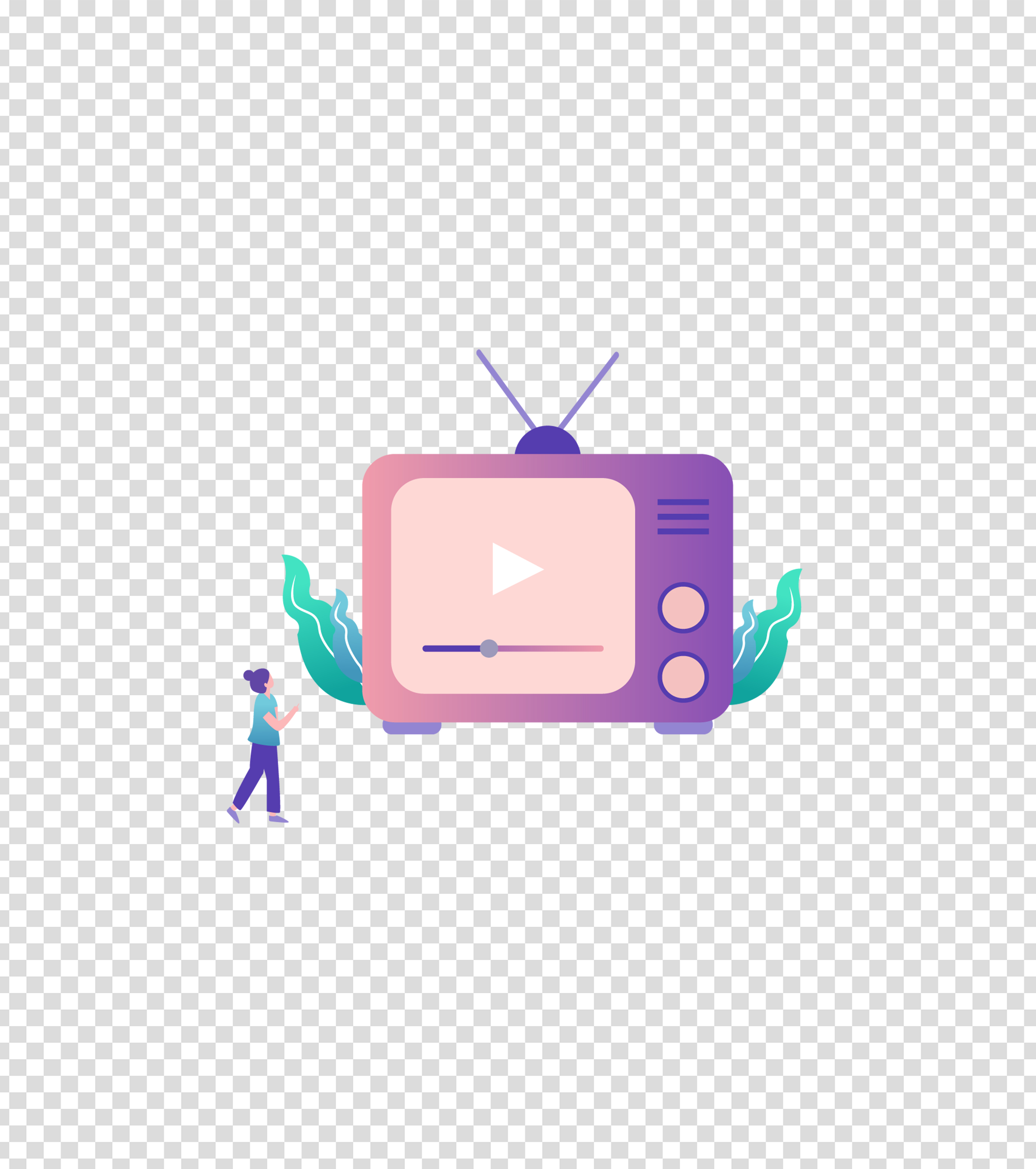 紫色看电视视频的女孩插画