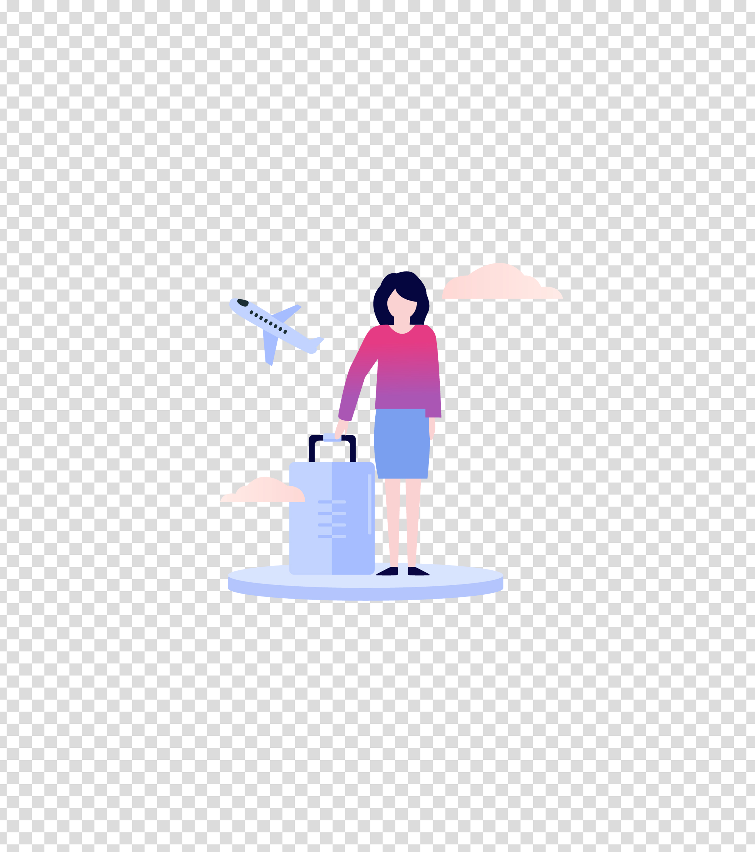 蓝色出差旅行的女子插画