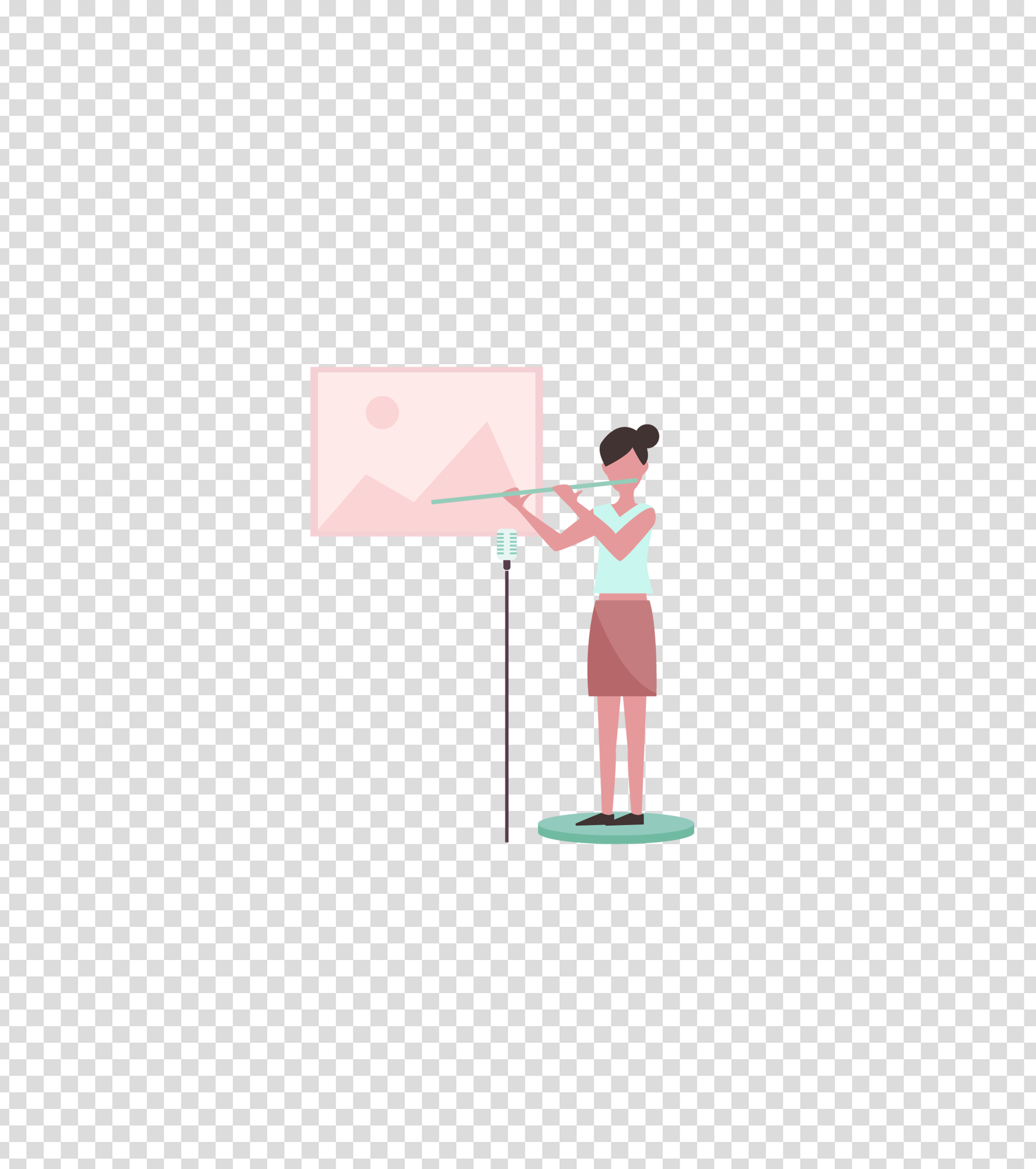 蓝色演奏吹笛子的女孩插画