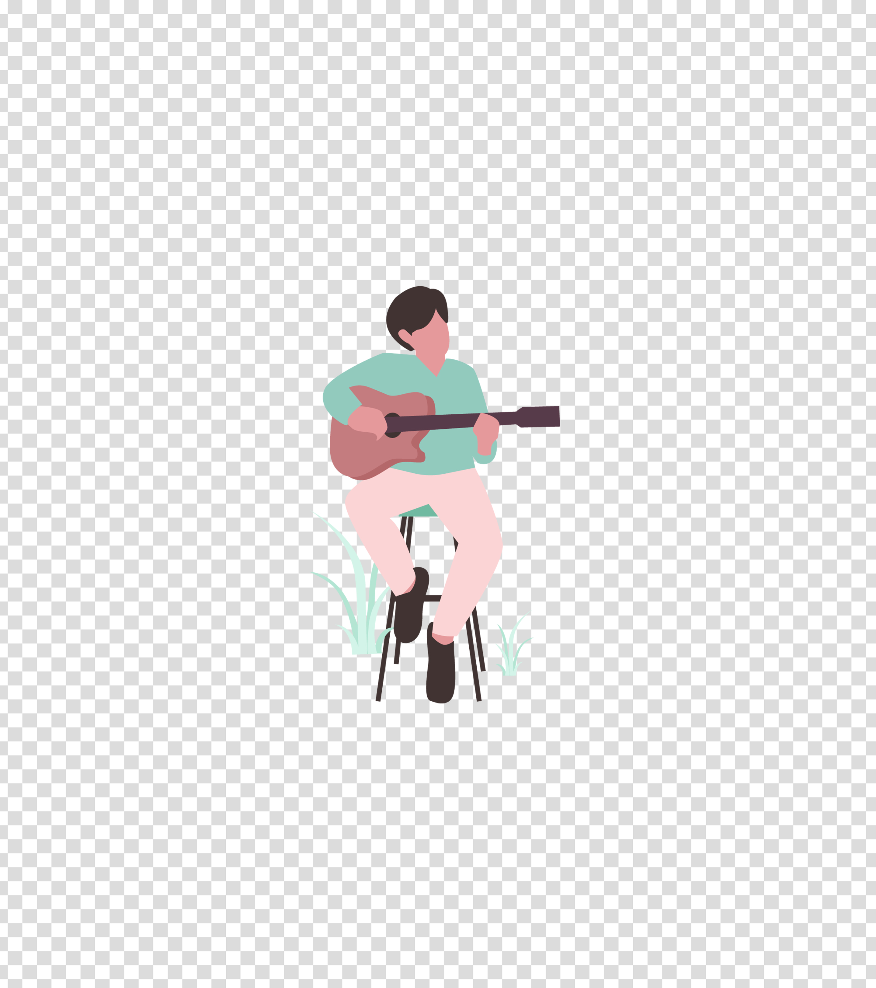 绿色坐着弹吉他的男子插画