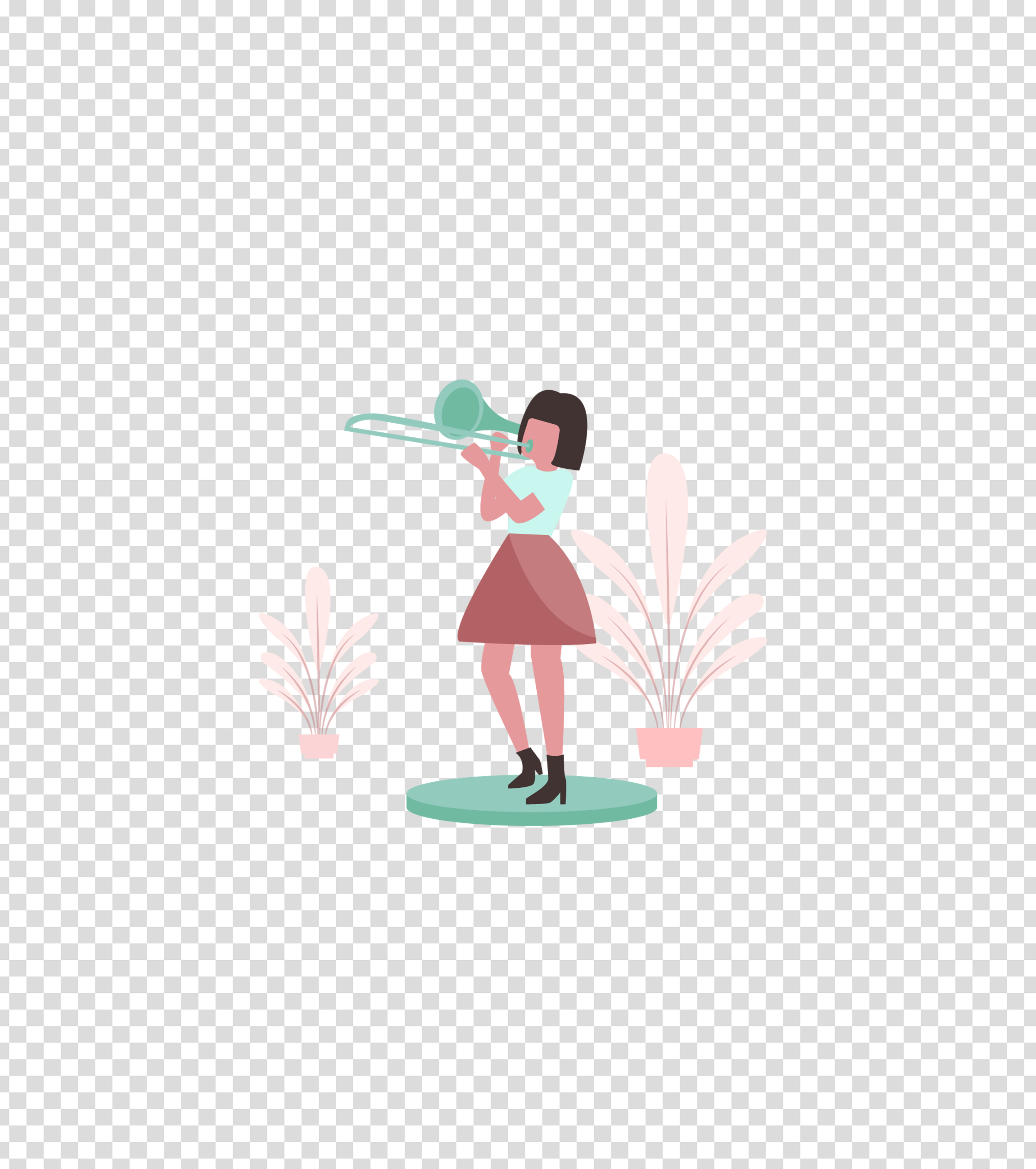 绿色乐器吹小号的女孩插画