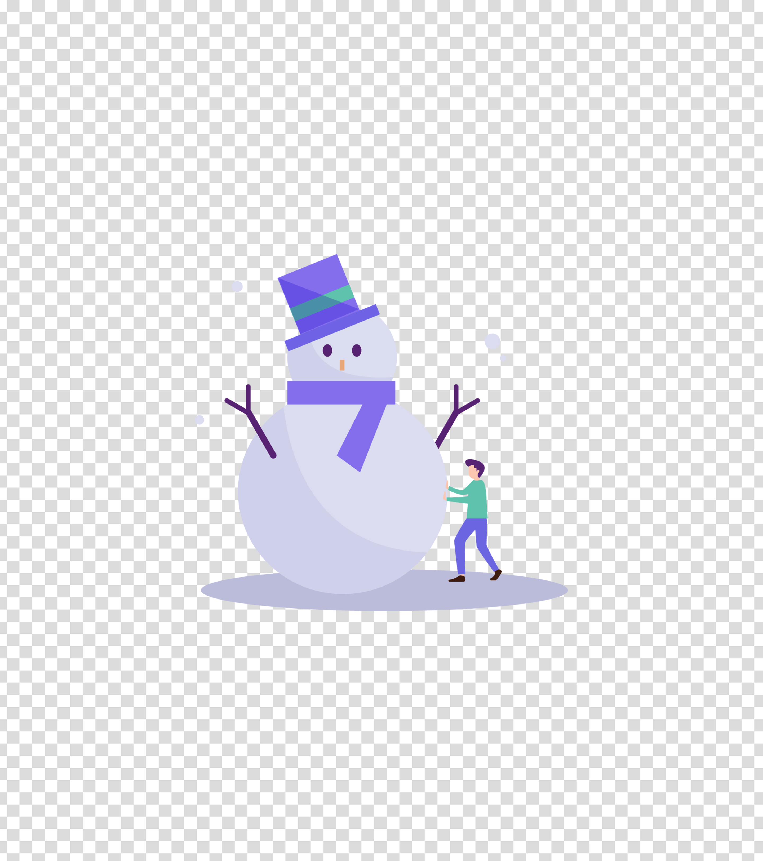 紫色冬天堆雪人的男人插画