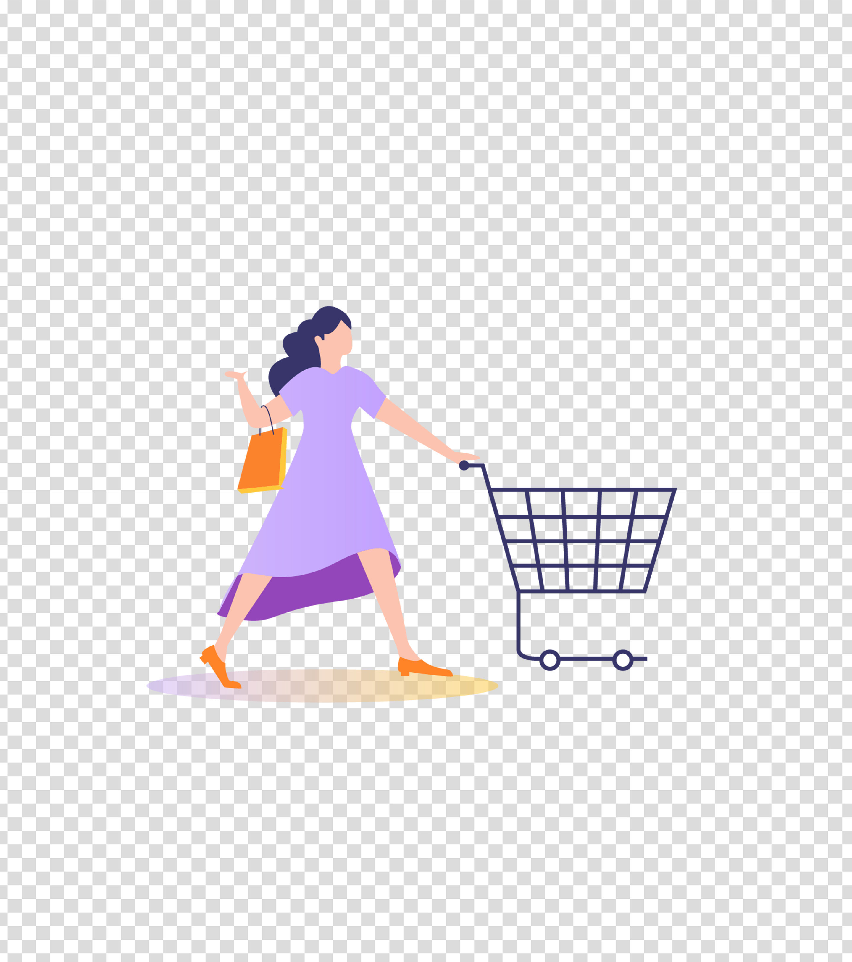 紫色女人超市购物插画