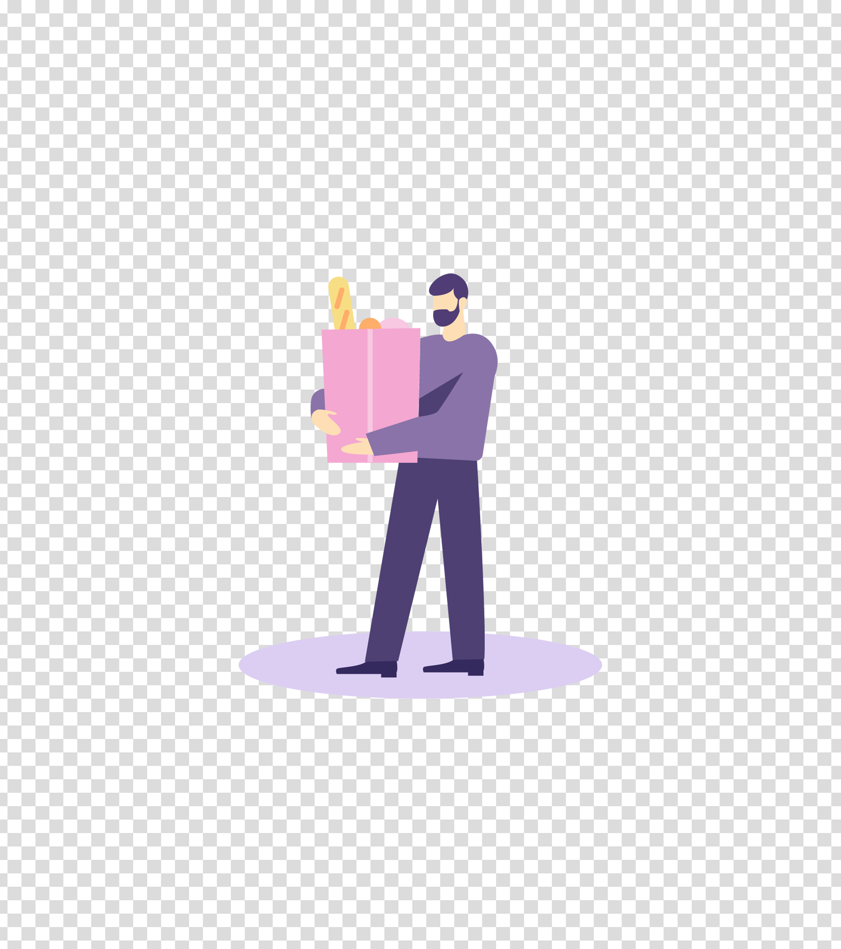 紫色拿着食品的男人