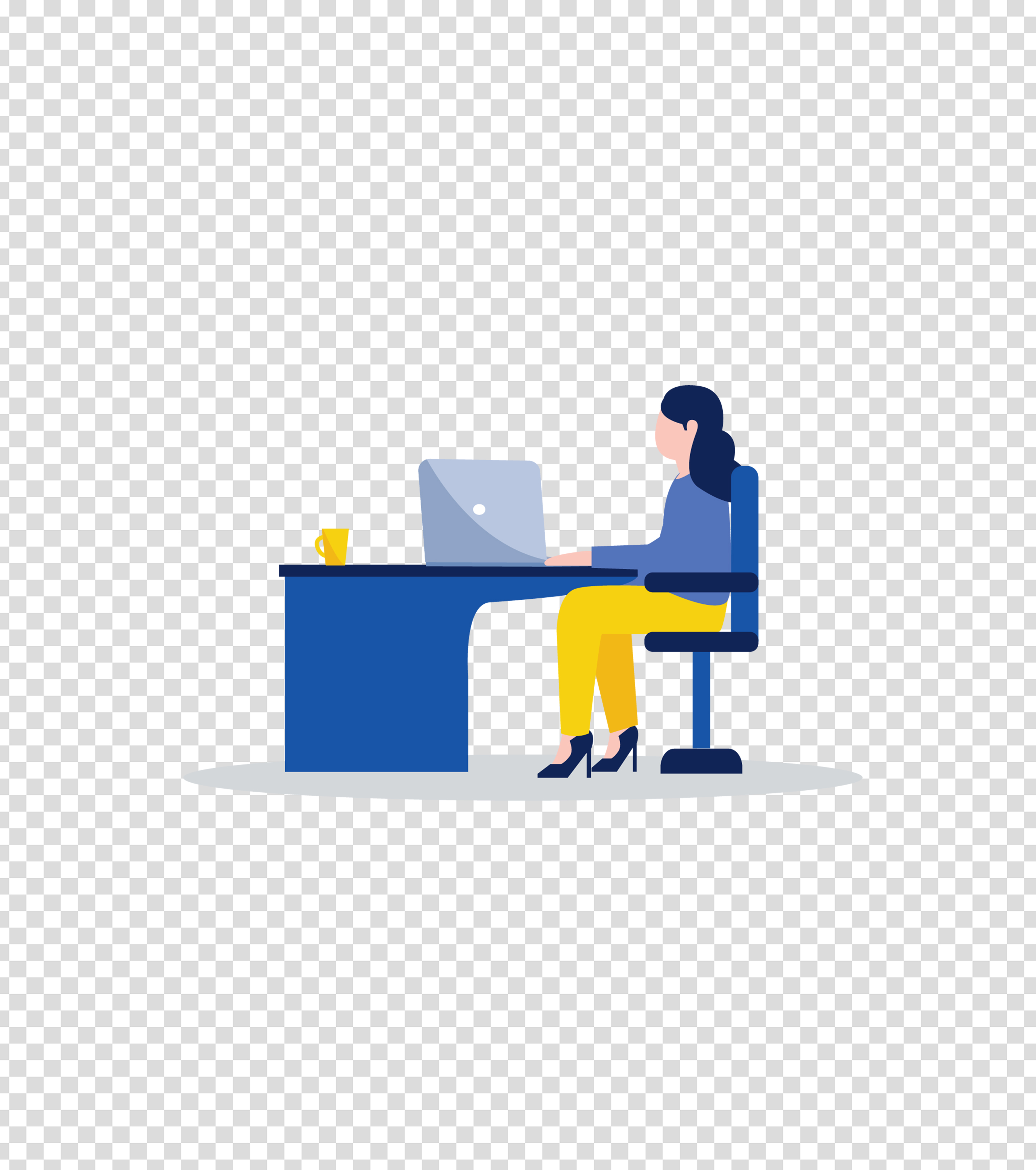 蓝色办公室办公女孩插画