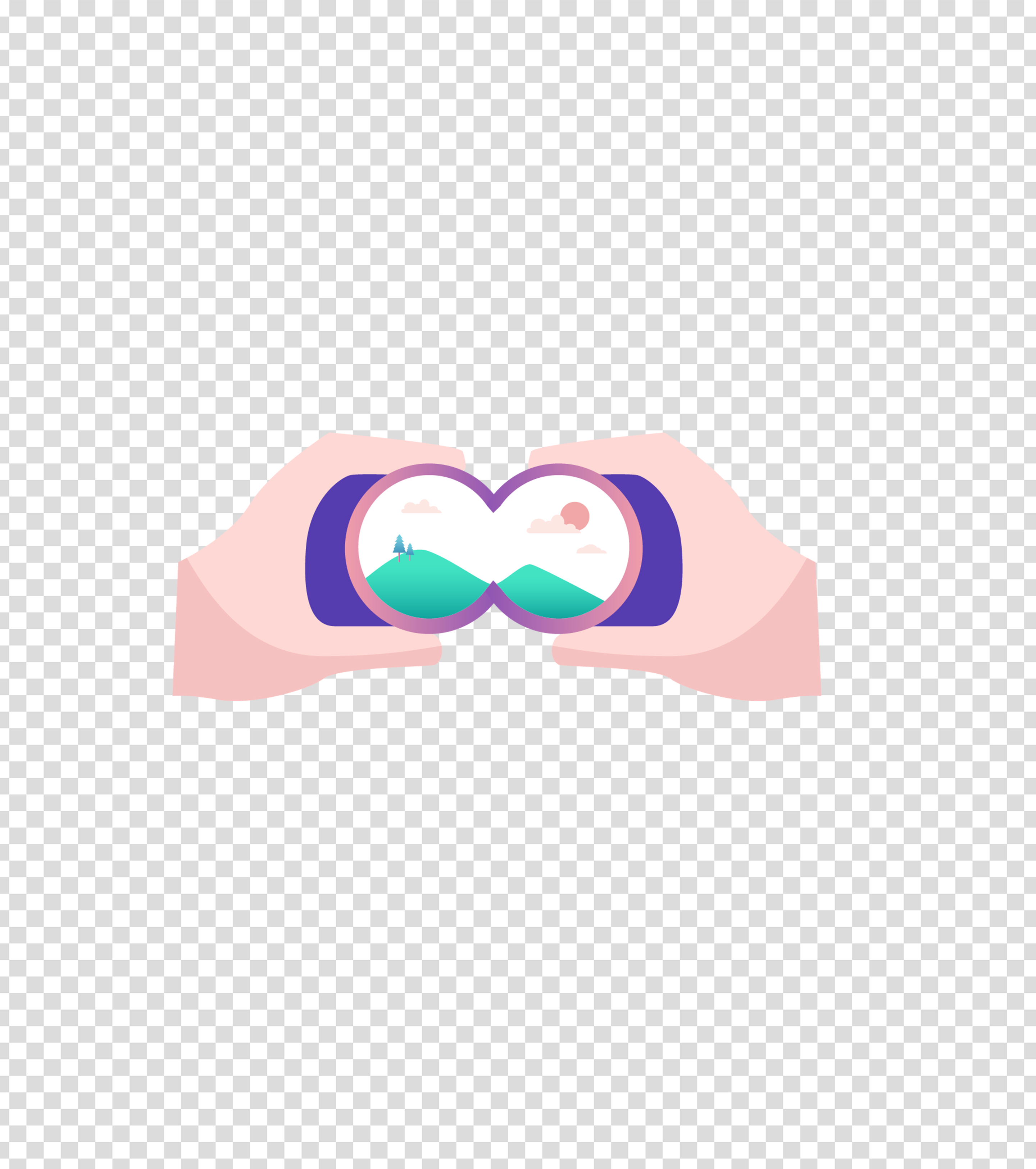 紫色拿望远镜看风景插画