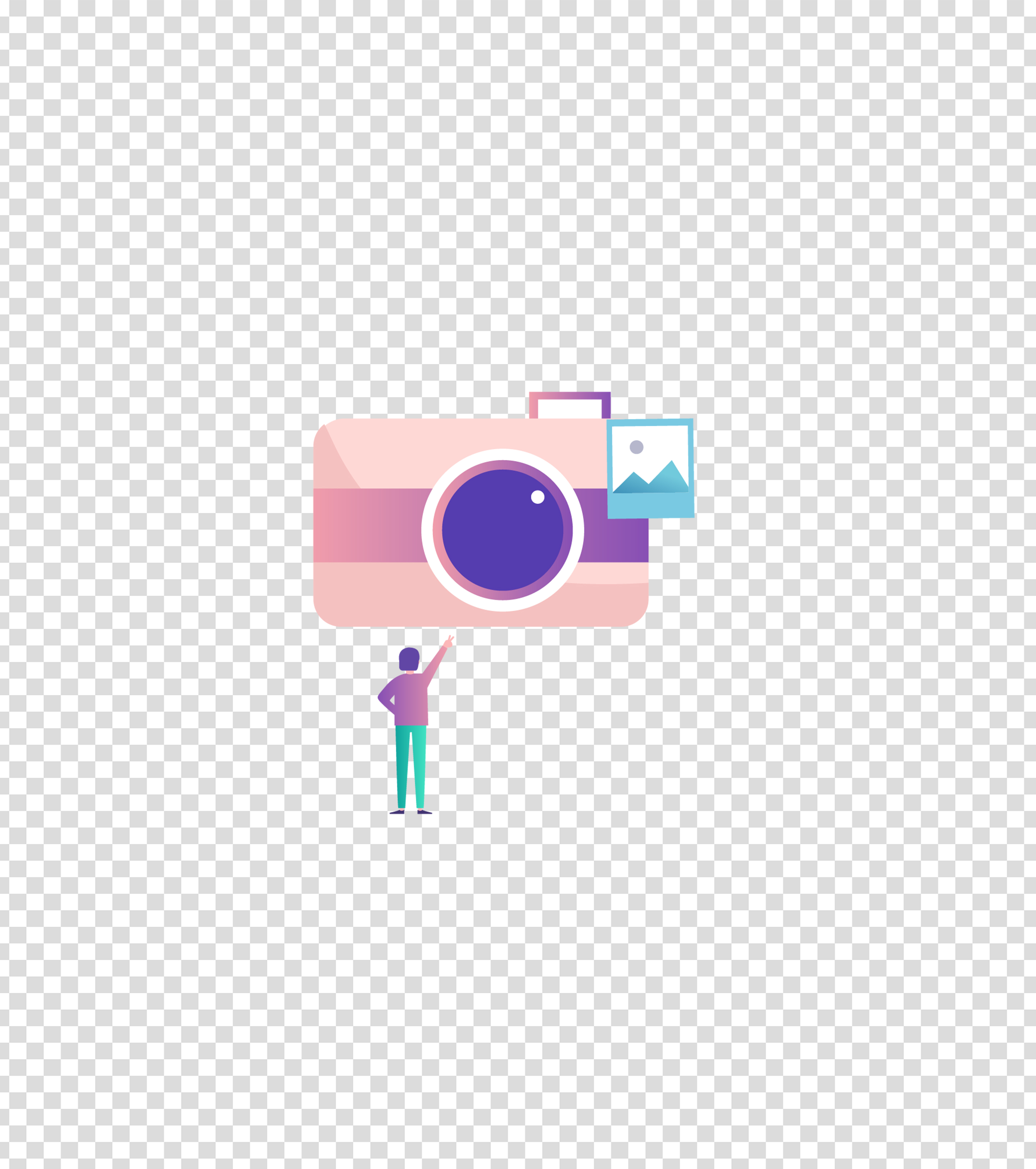 粉色旅行拍照插画