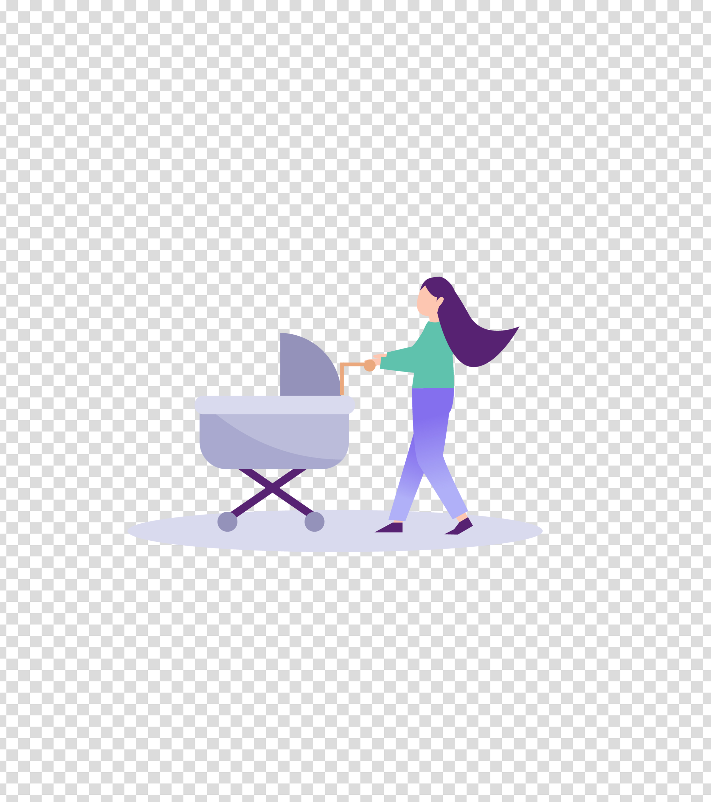 紫色推着婴儿车的女人插画