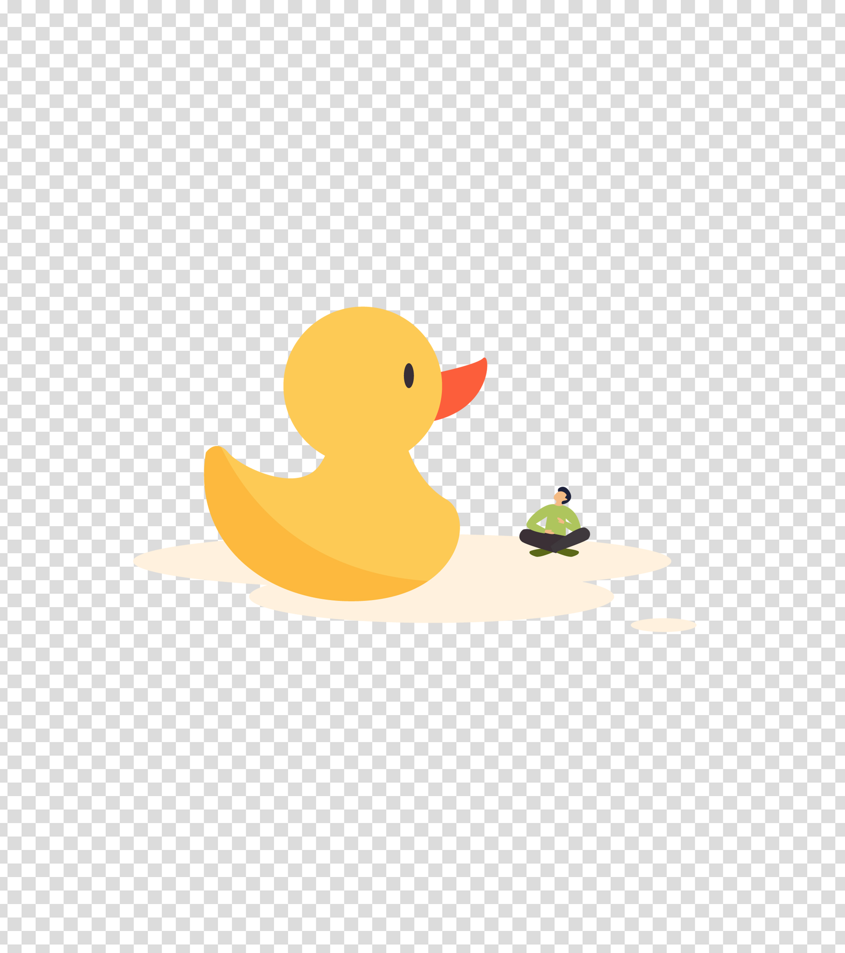 黄色看着小黄鸭的男人插画