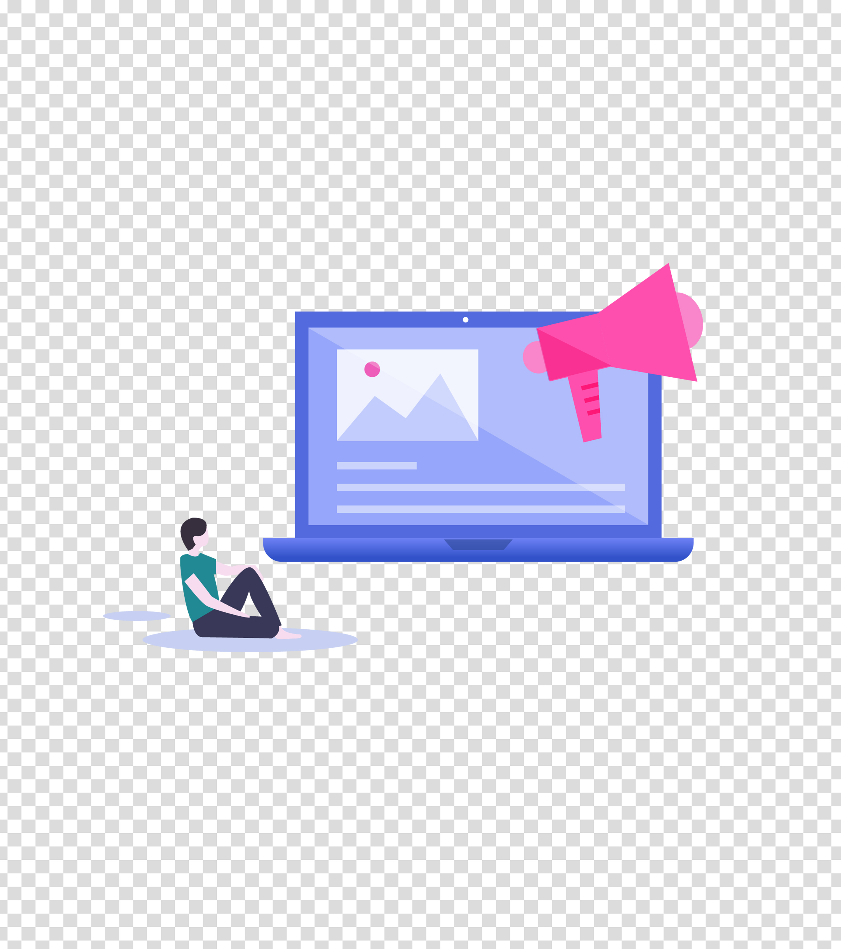 蓝色公园玩电脑的女孩插画