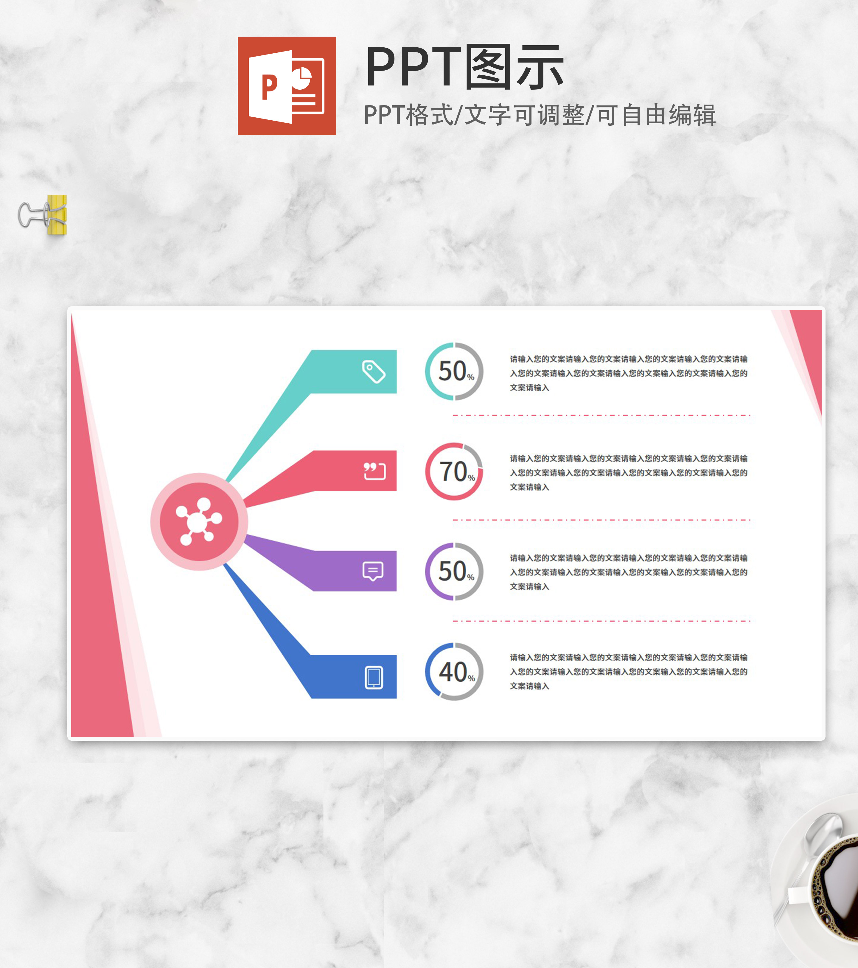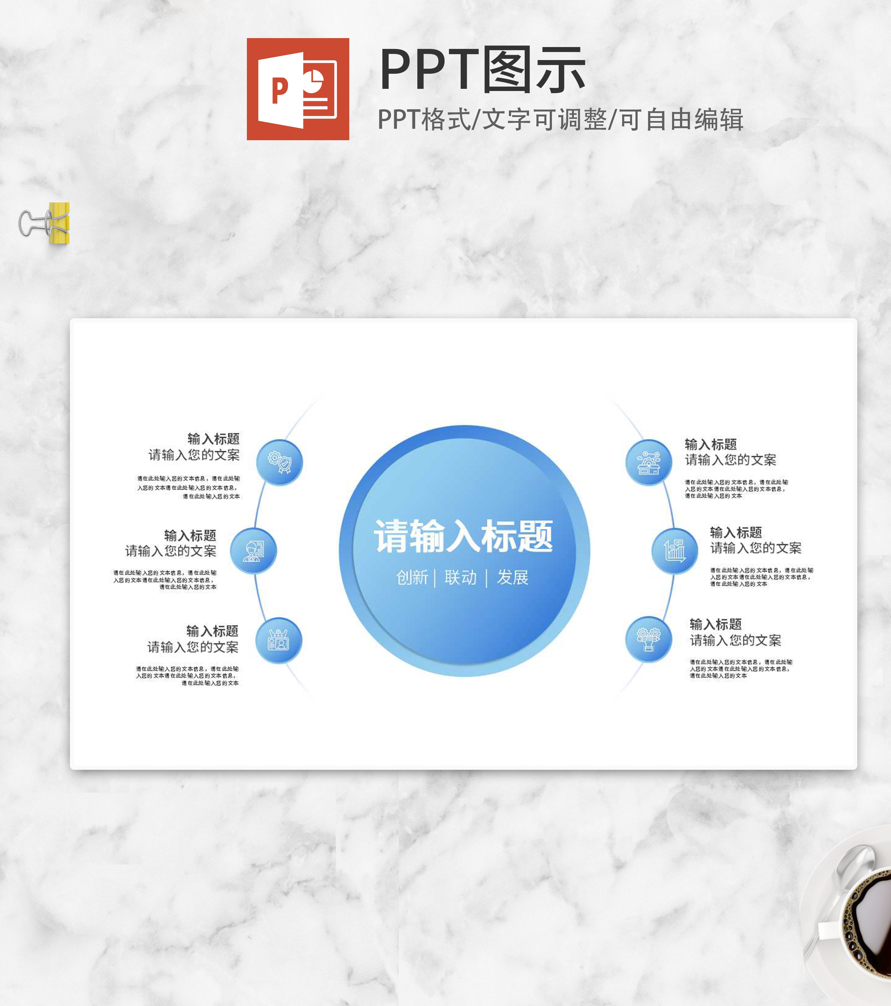 圆形中分流程结构PPT图示