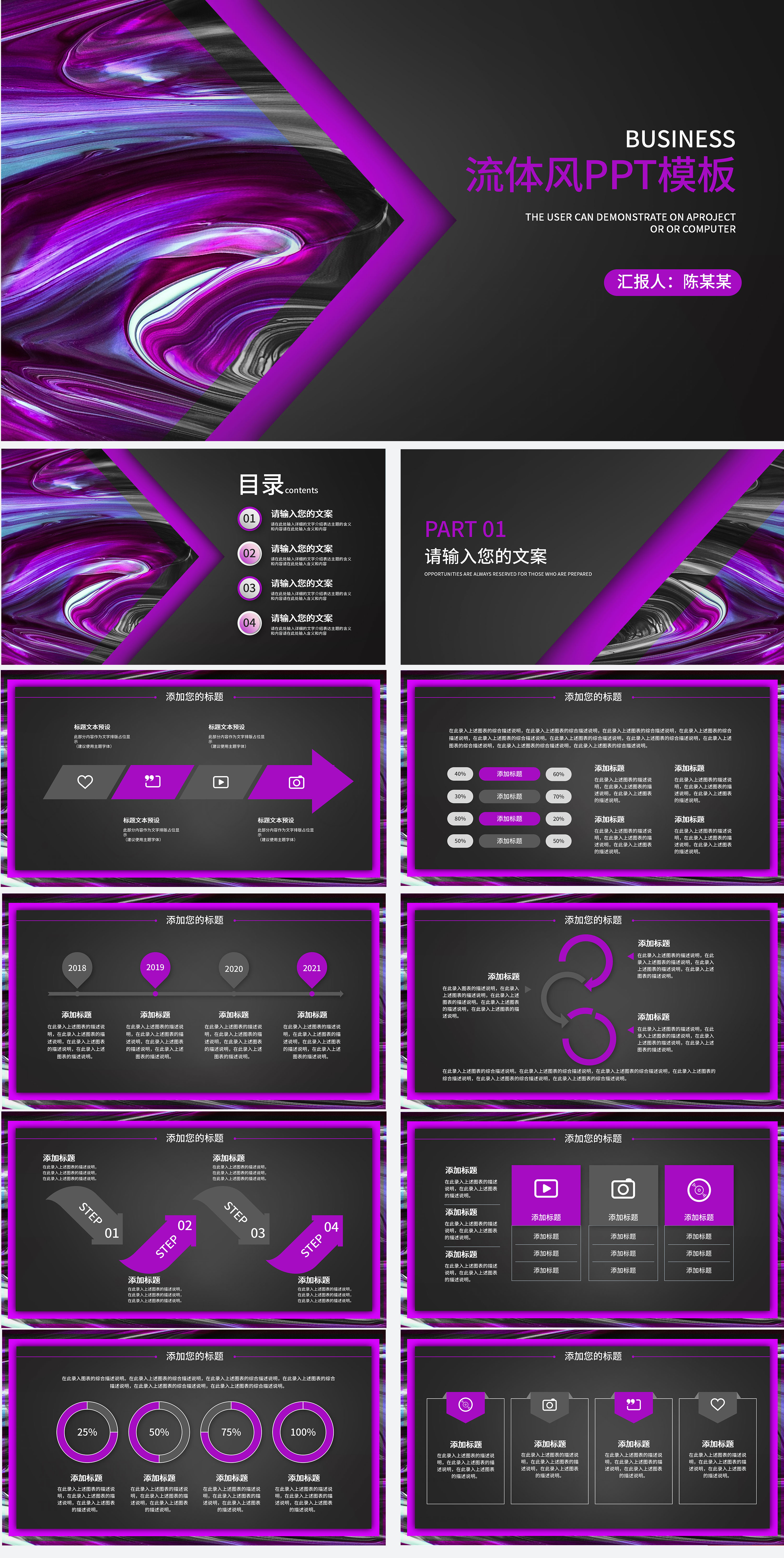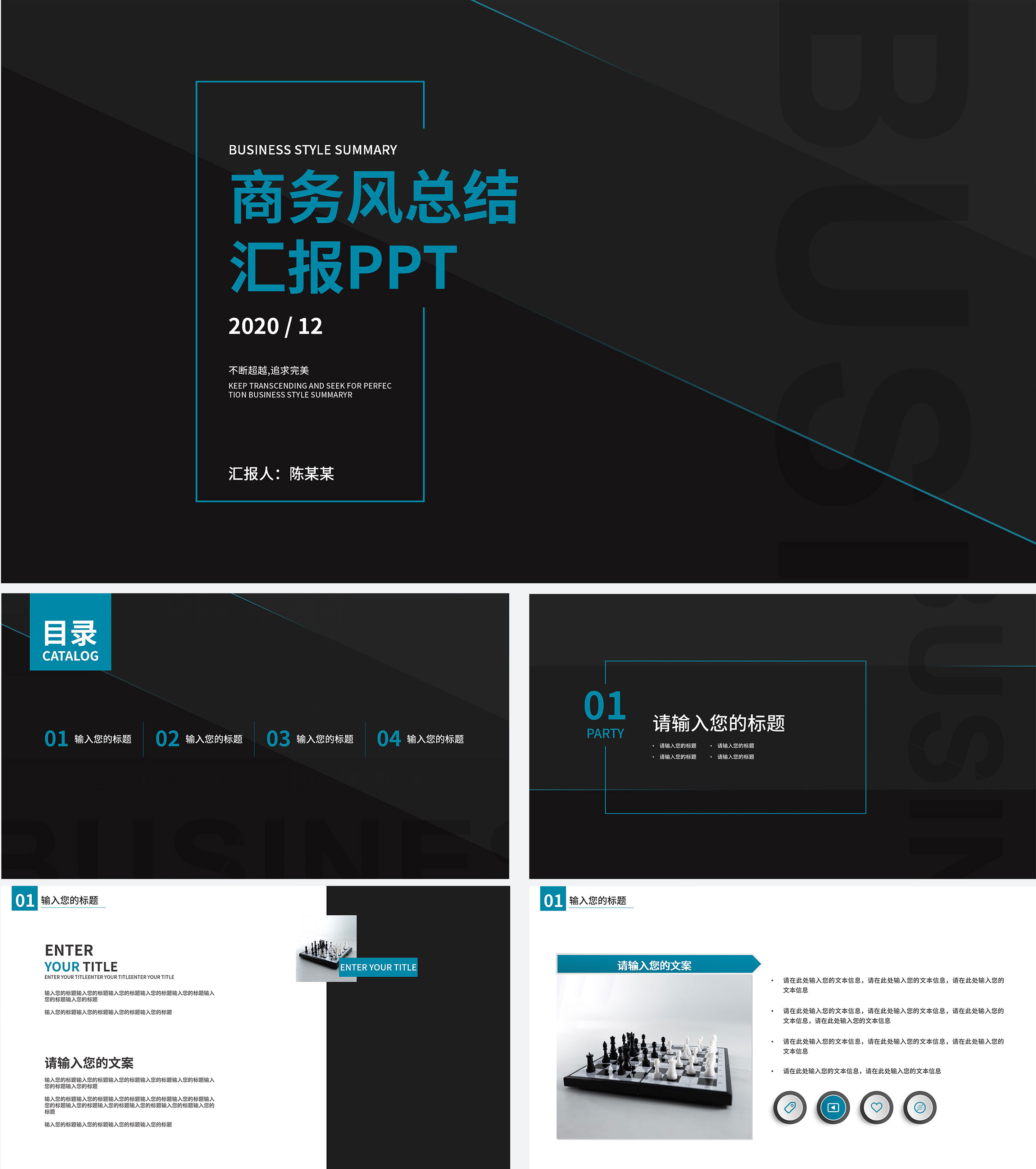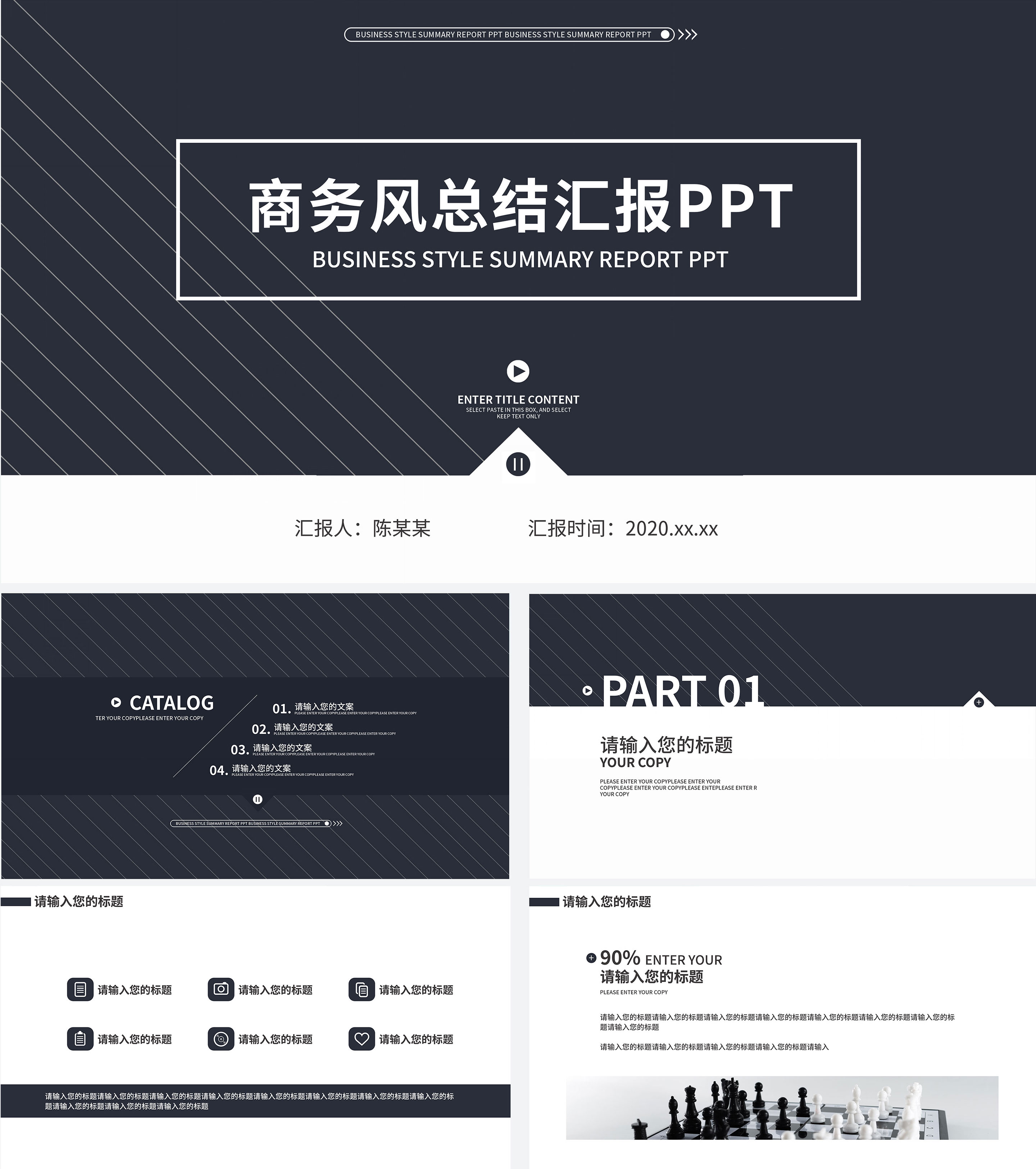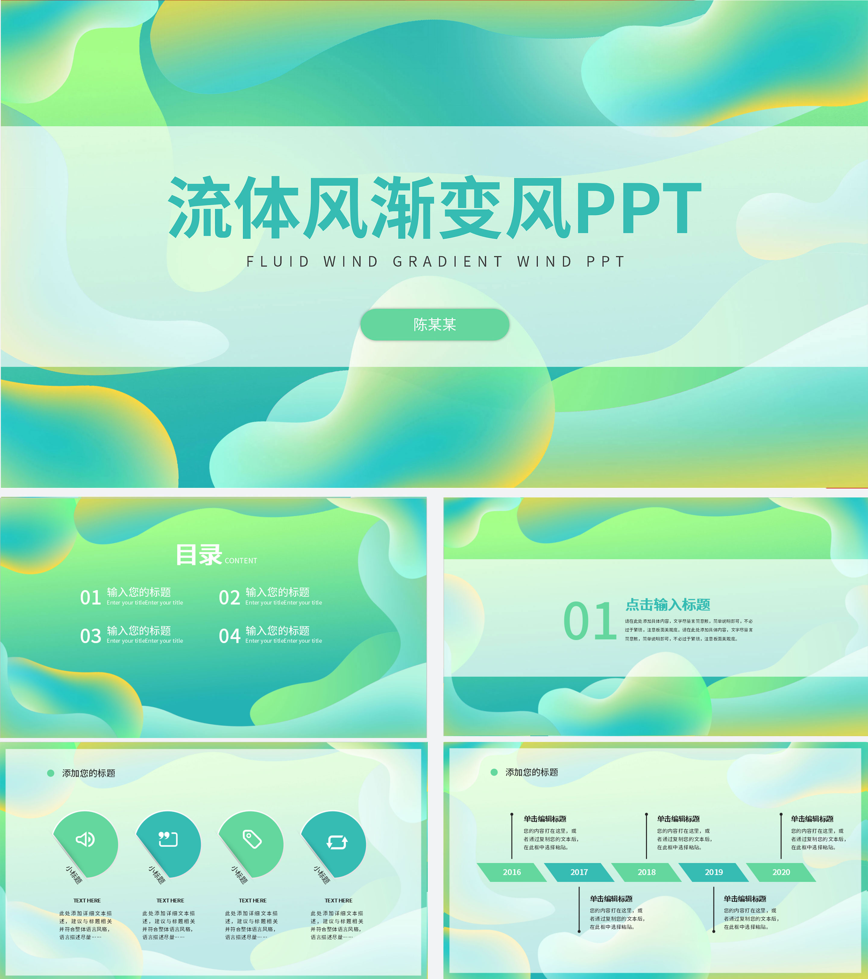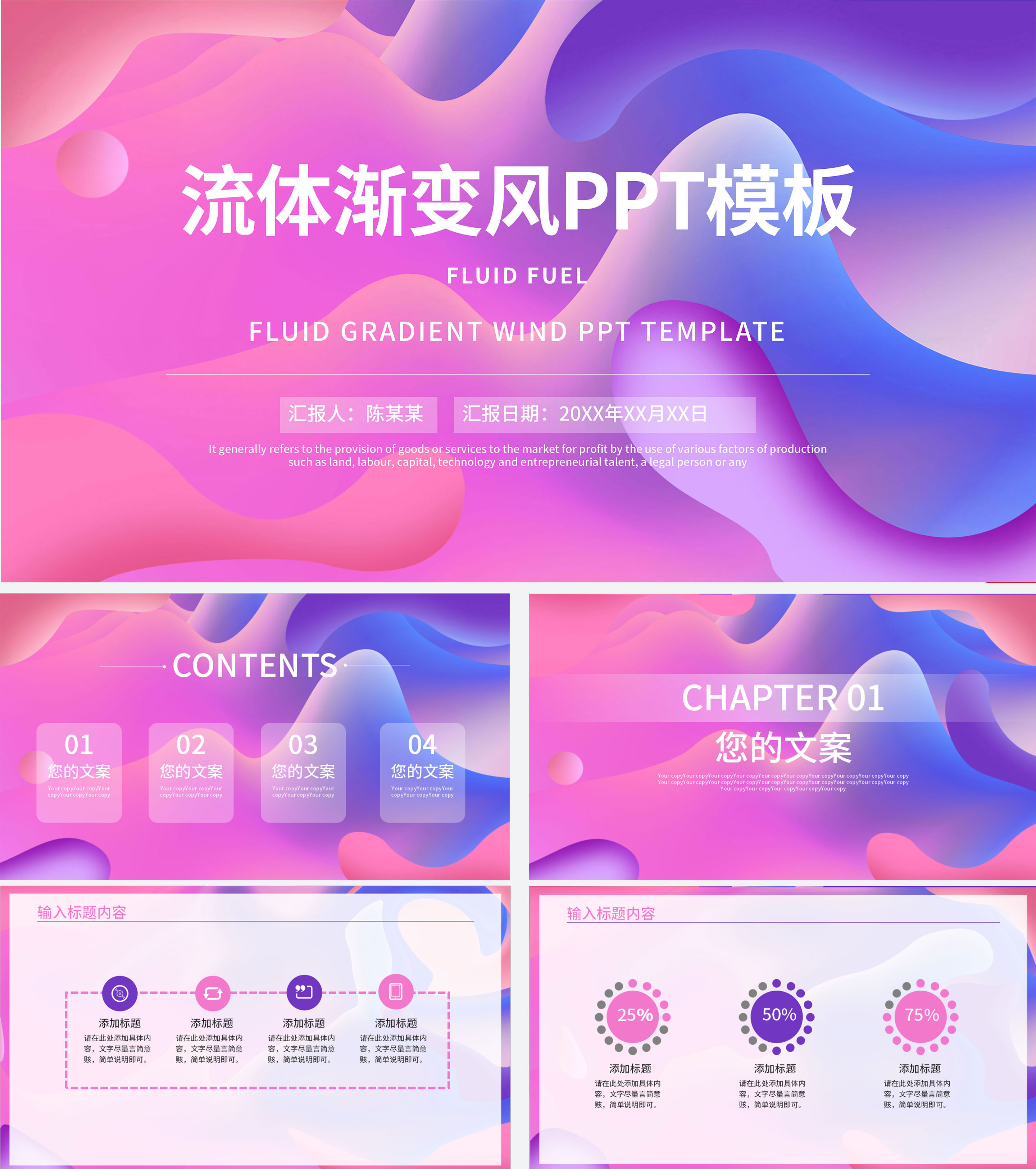 蓝色商务几何风渐变年度述职汇报PPT模板