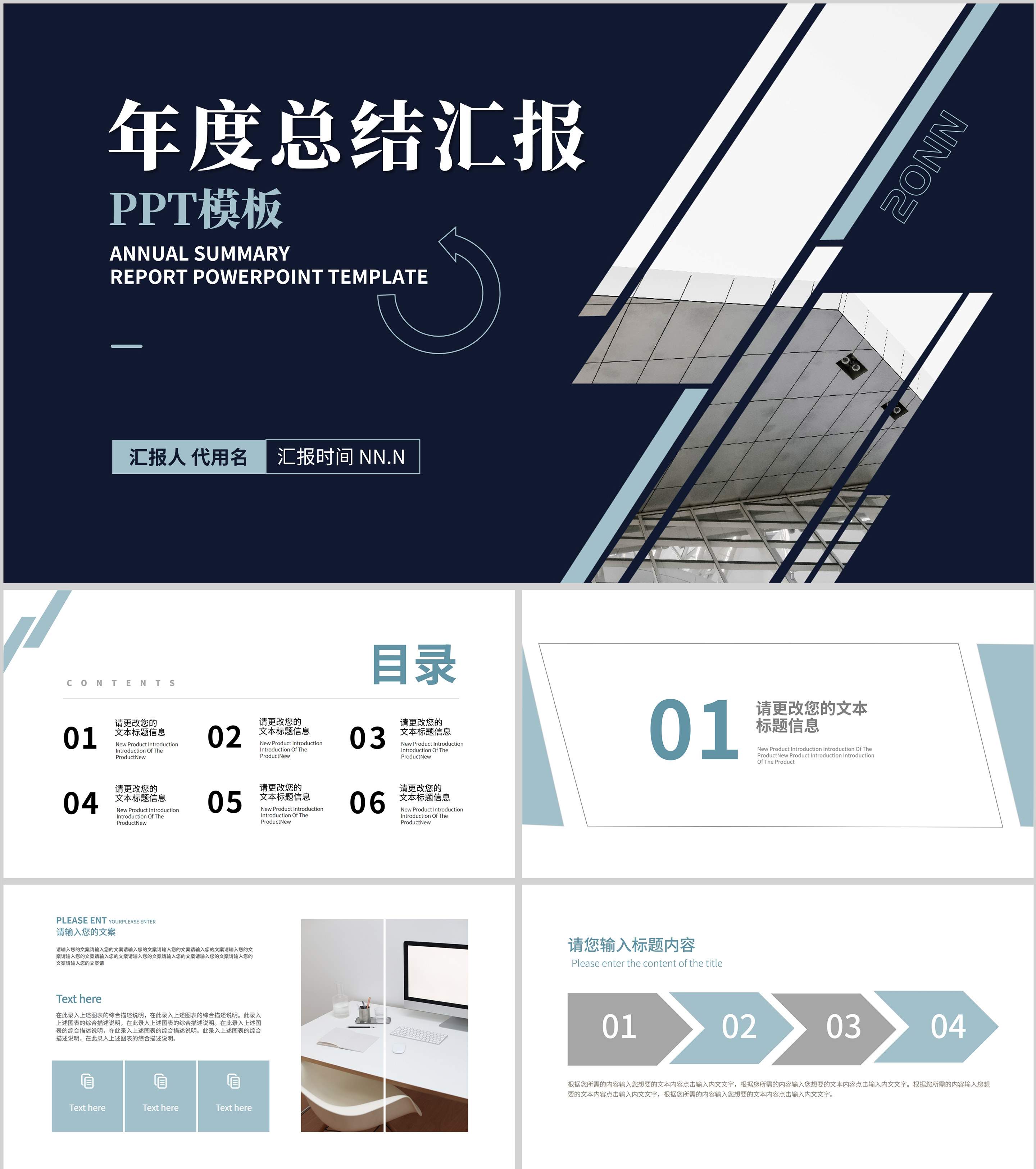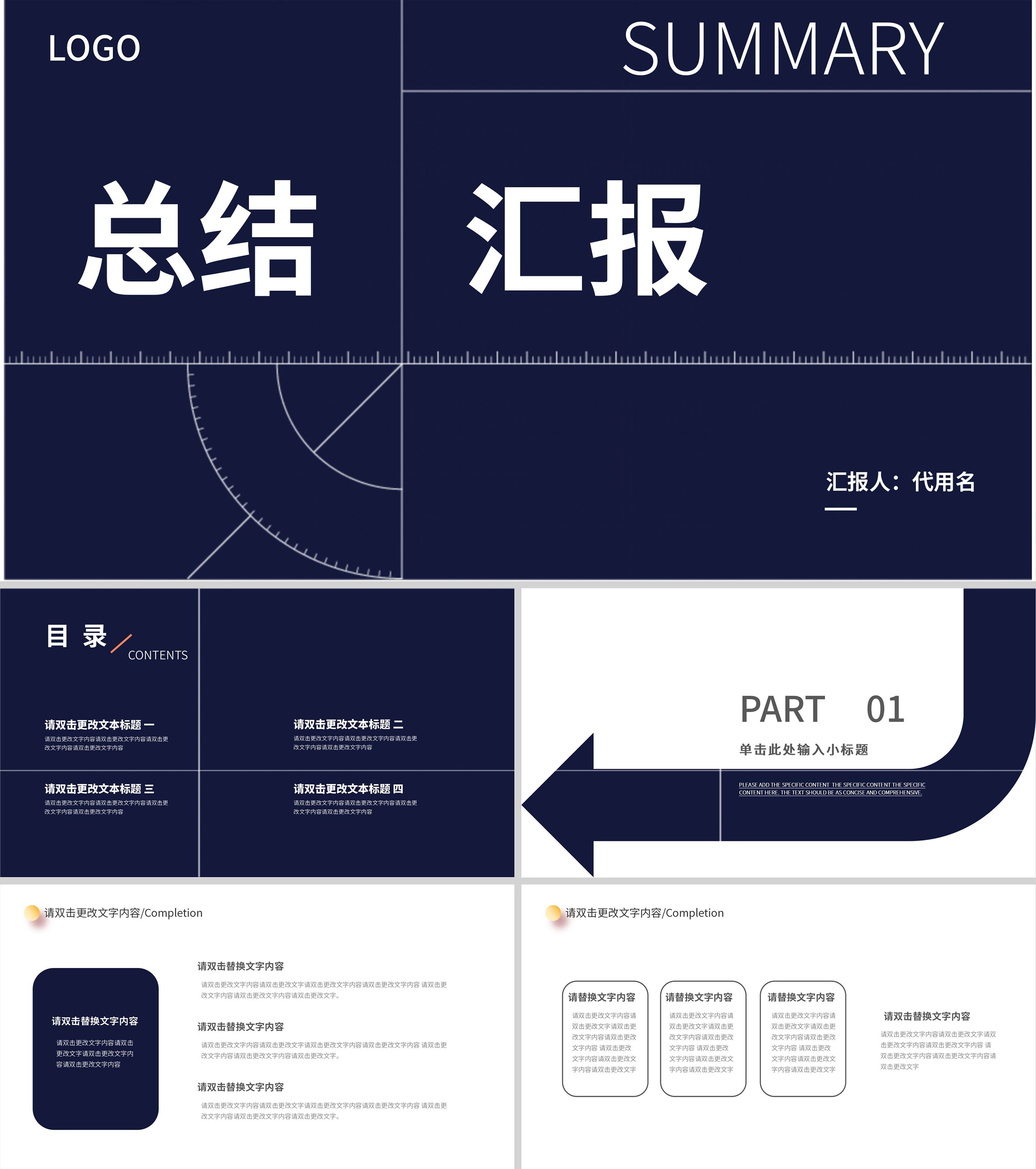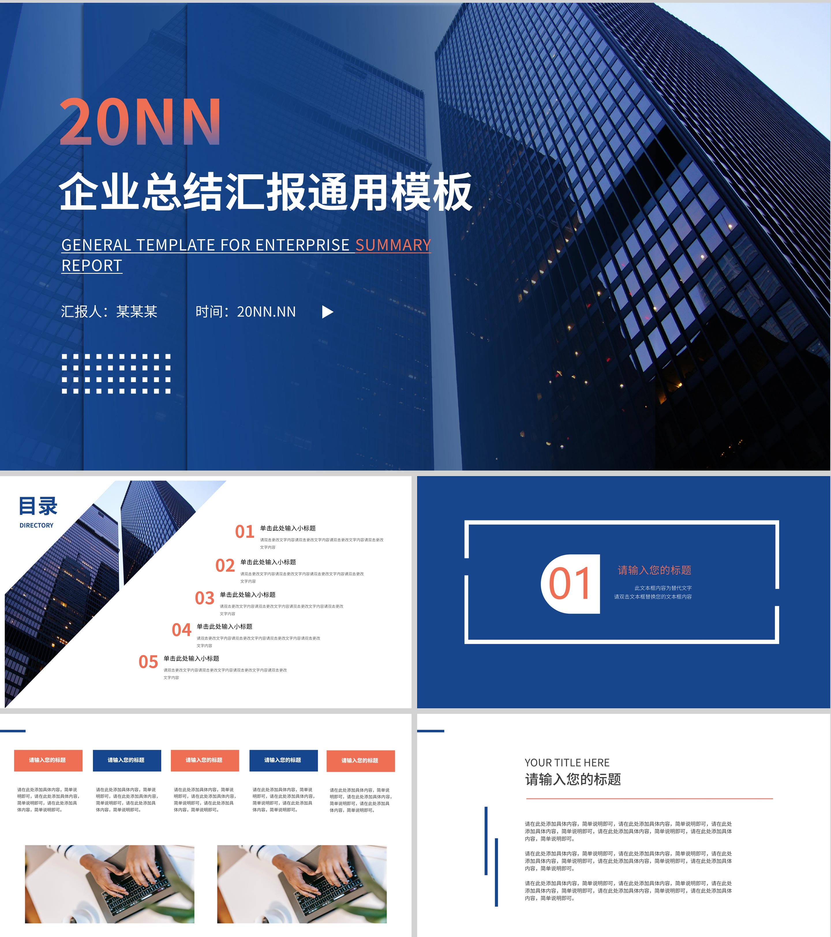 蓝色商务风企业总结汇报PPT模板