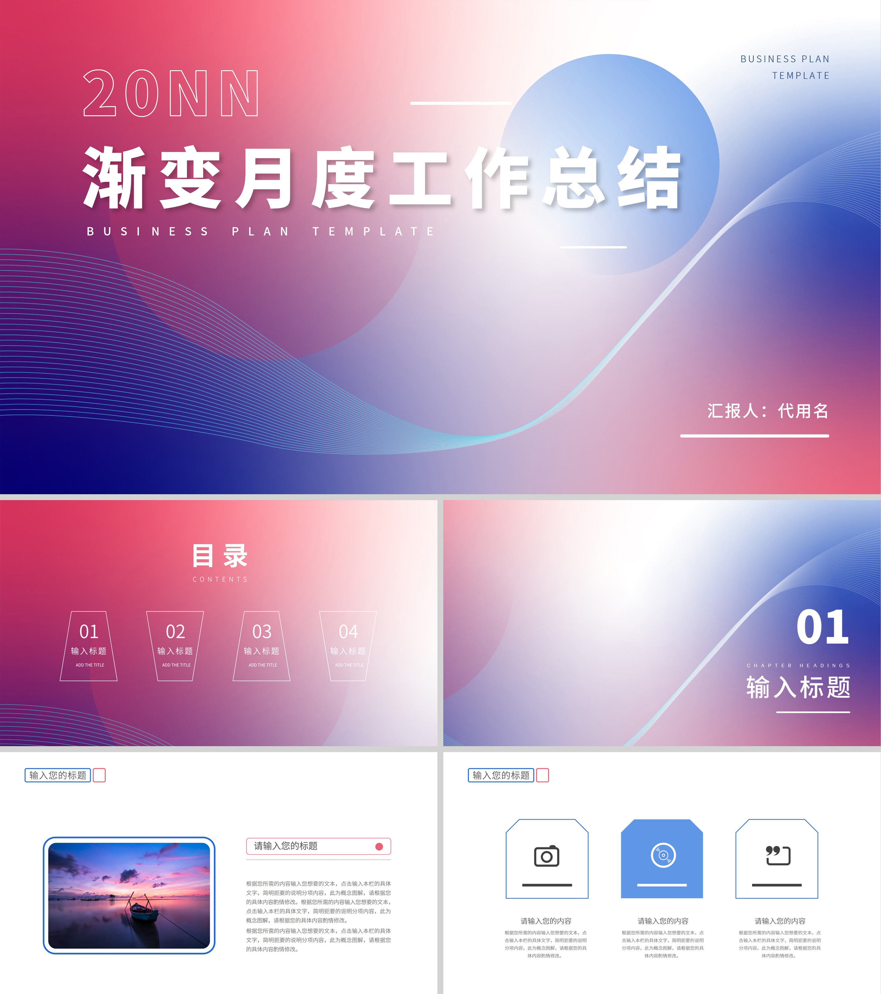 蓝色渐变风月度总结PPT模板