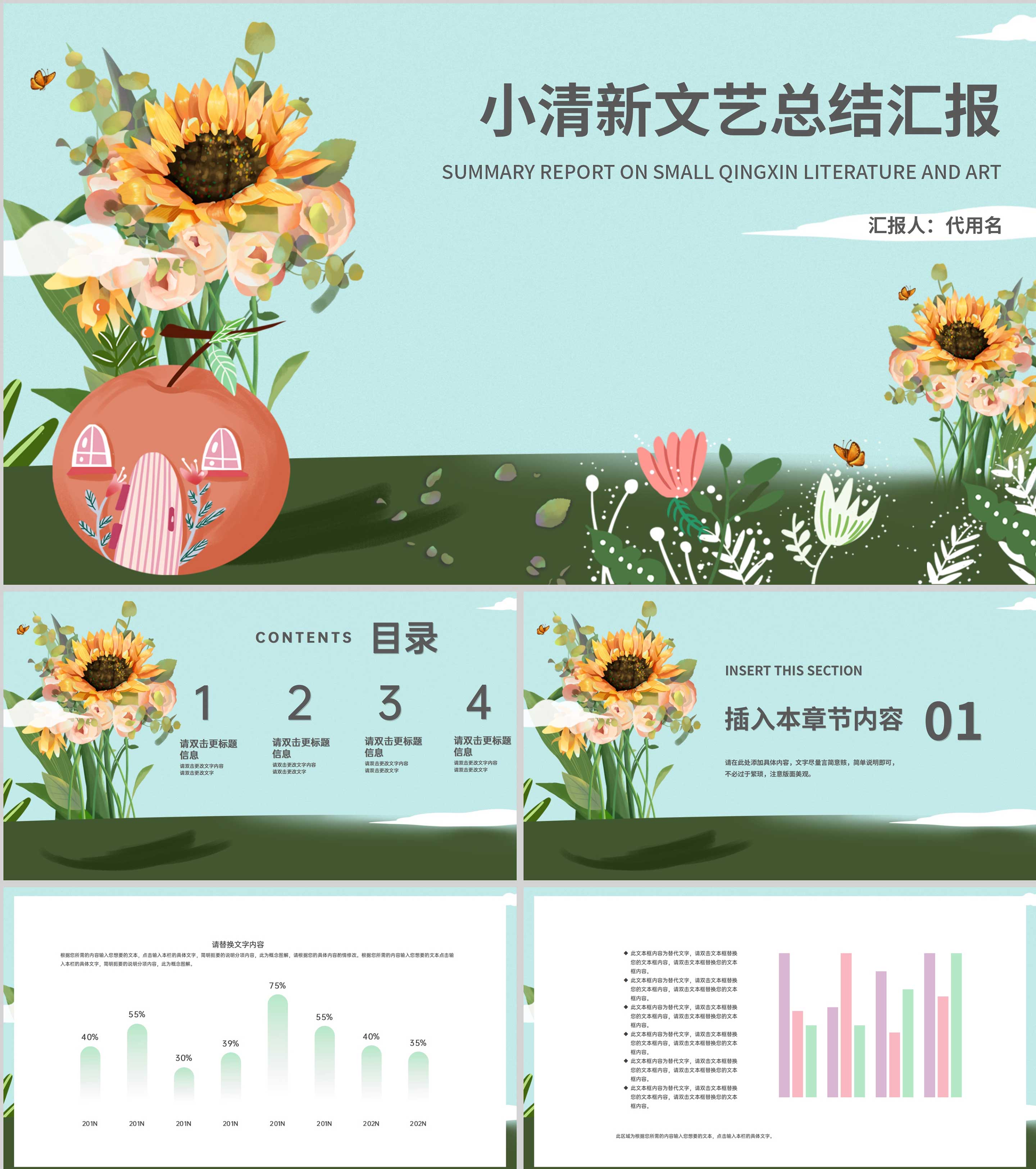 蓝色小清新总结汇报PPT模板
