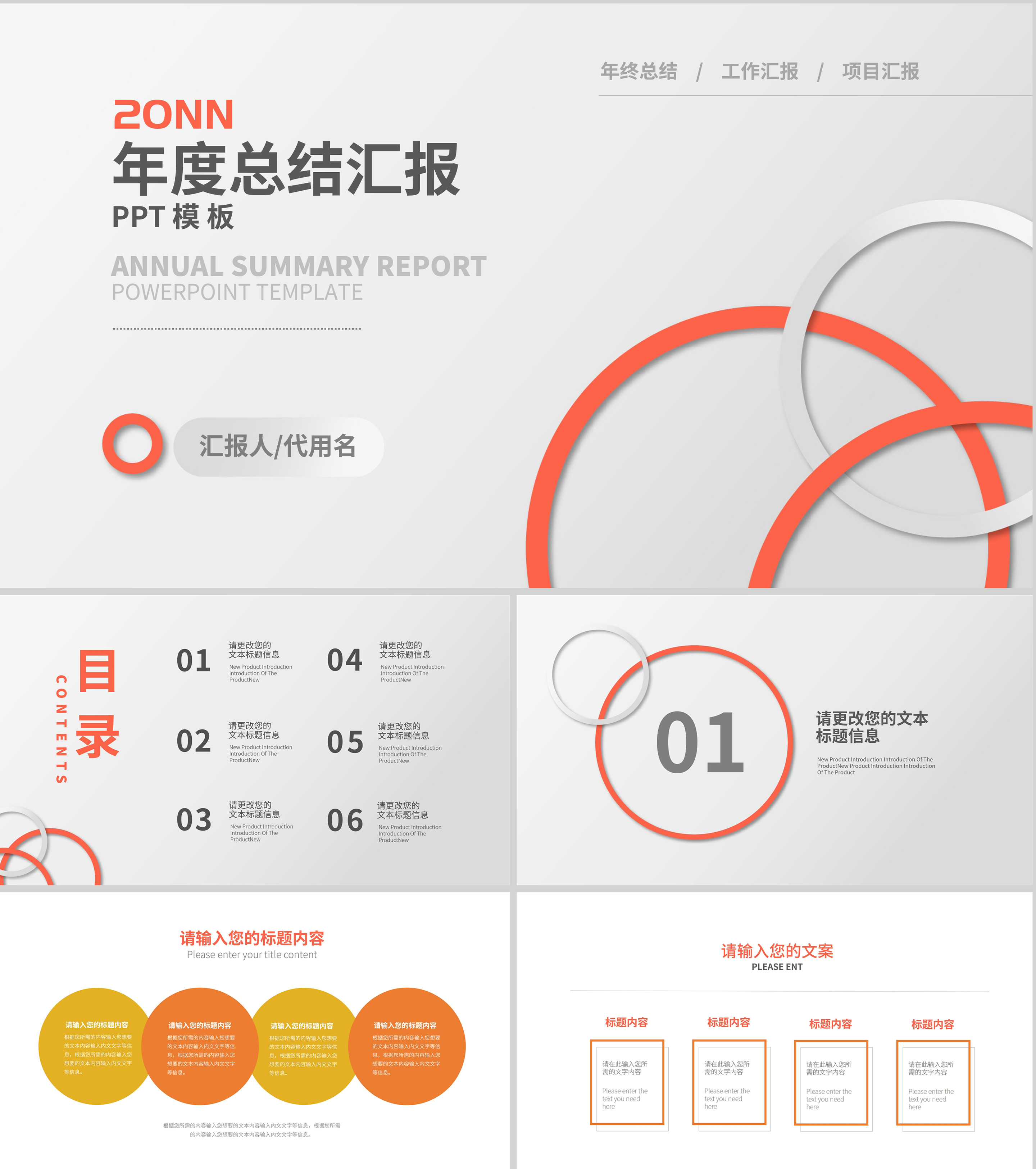白色简约风圆形年度总结汇报PPT模板