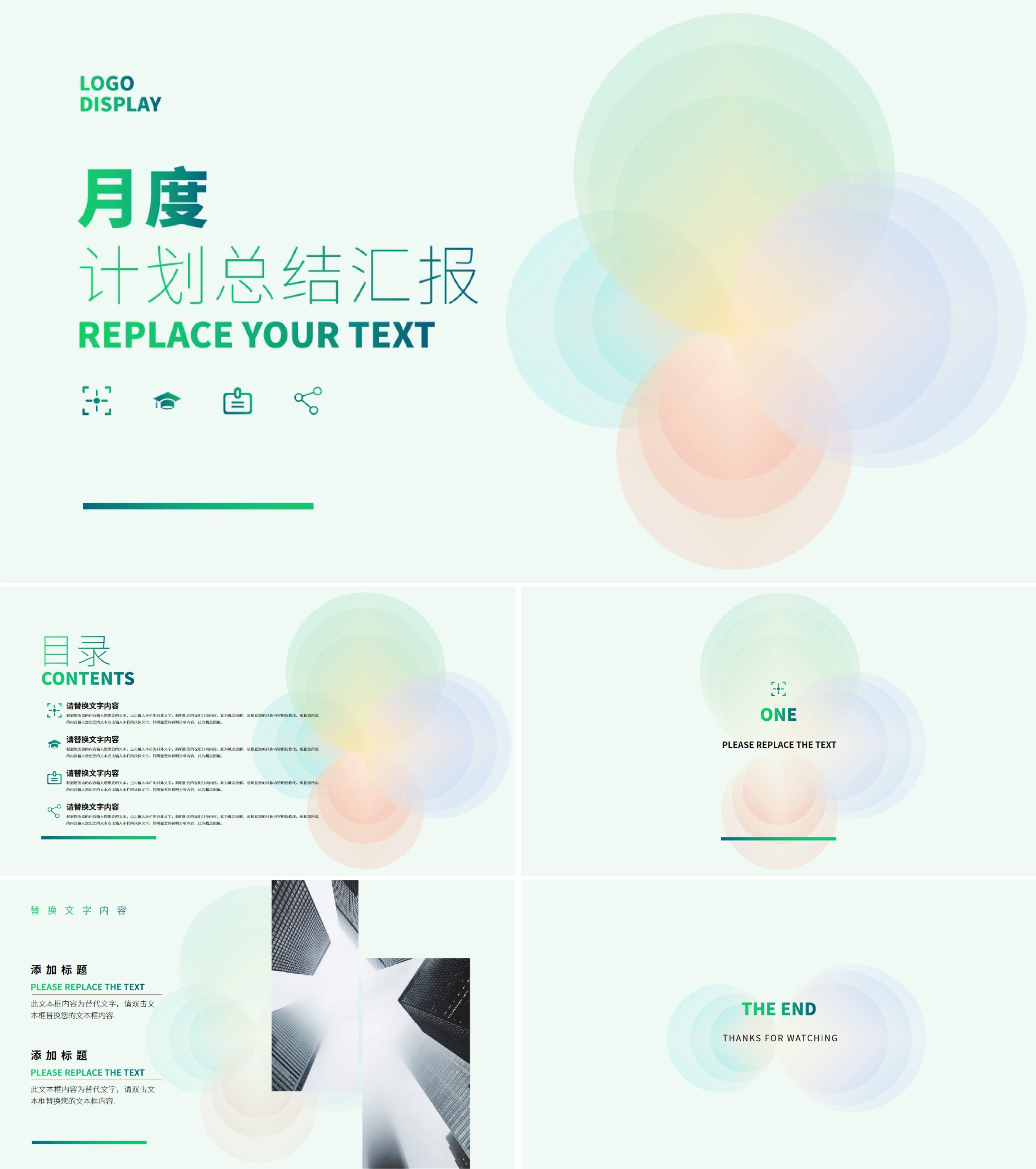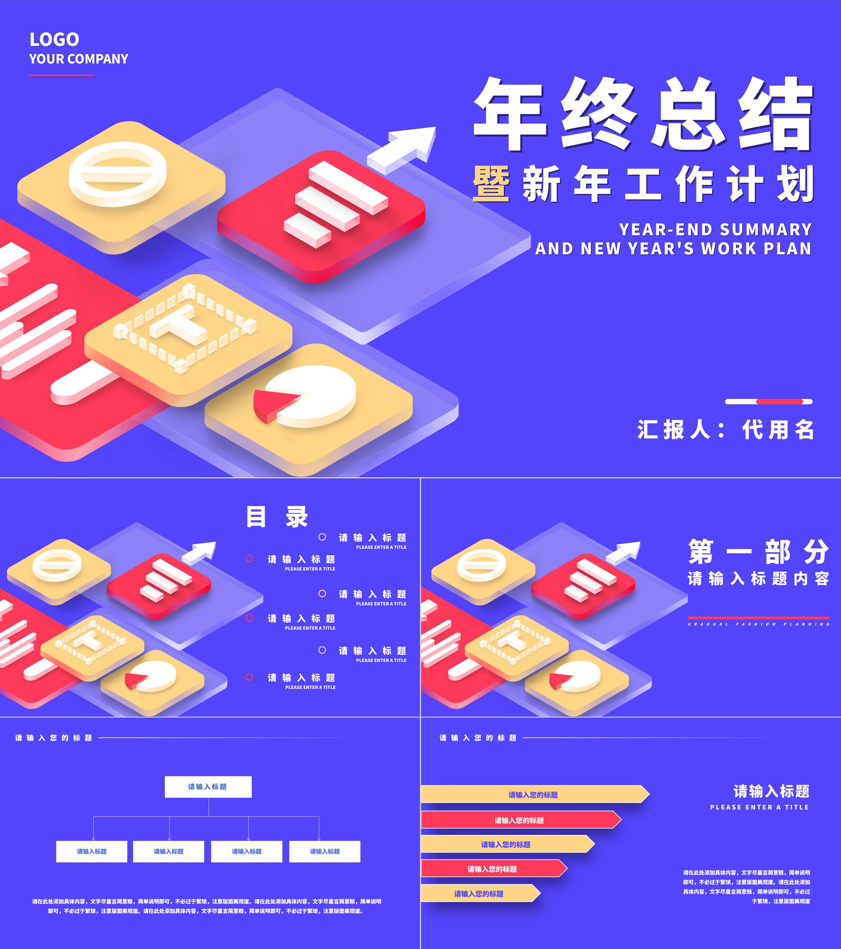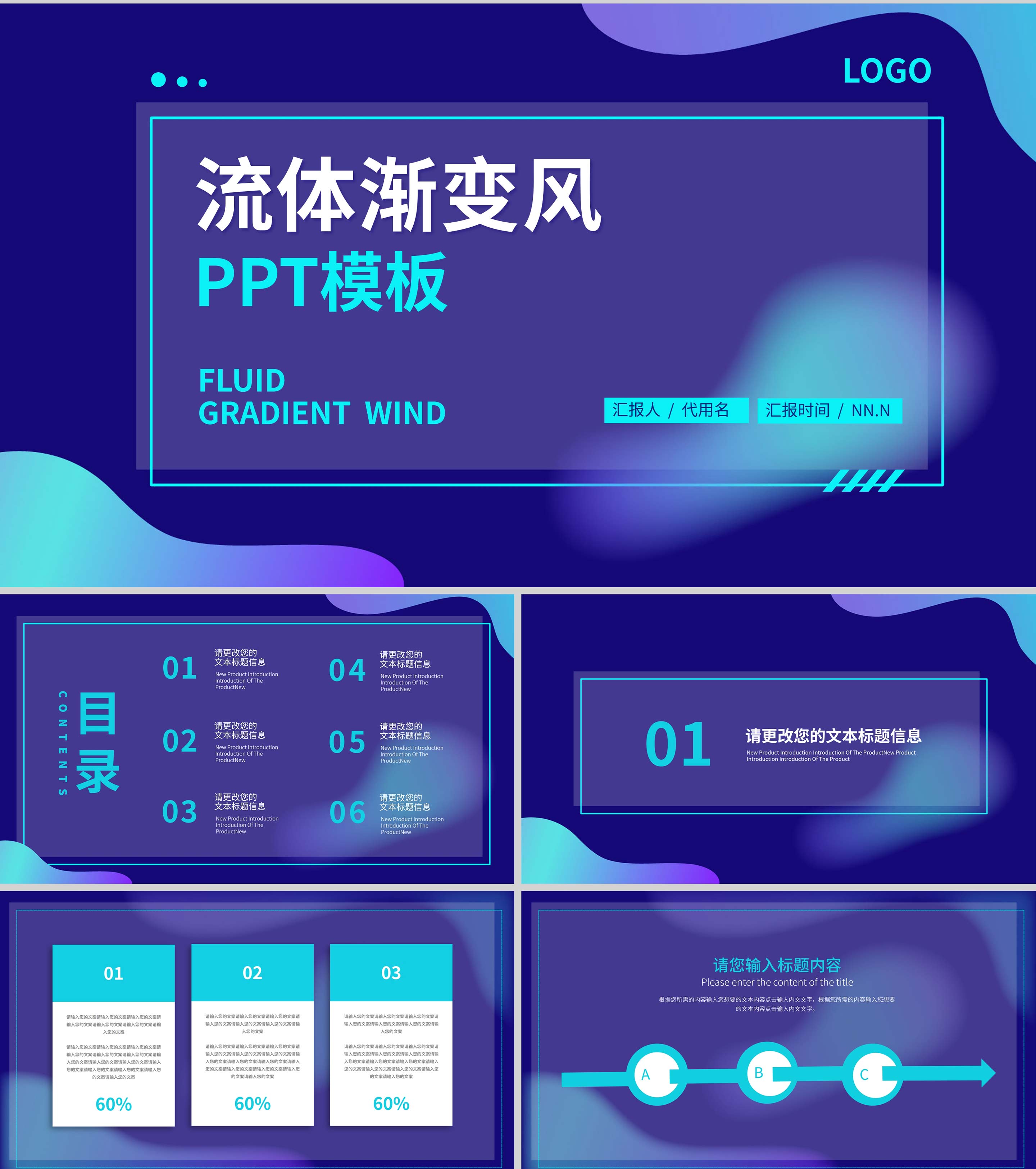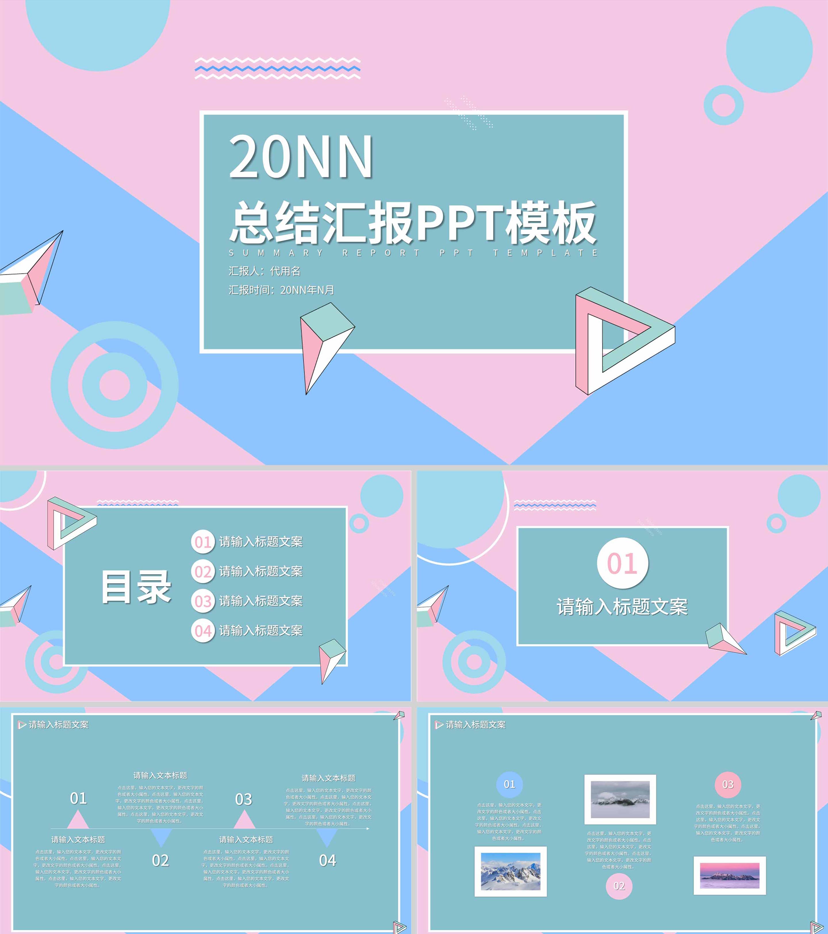 蓝色小清新孟菲斯风总结汇报PPT模板
