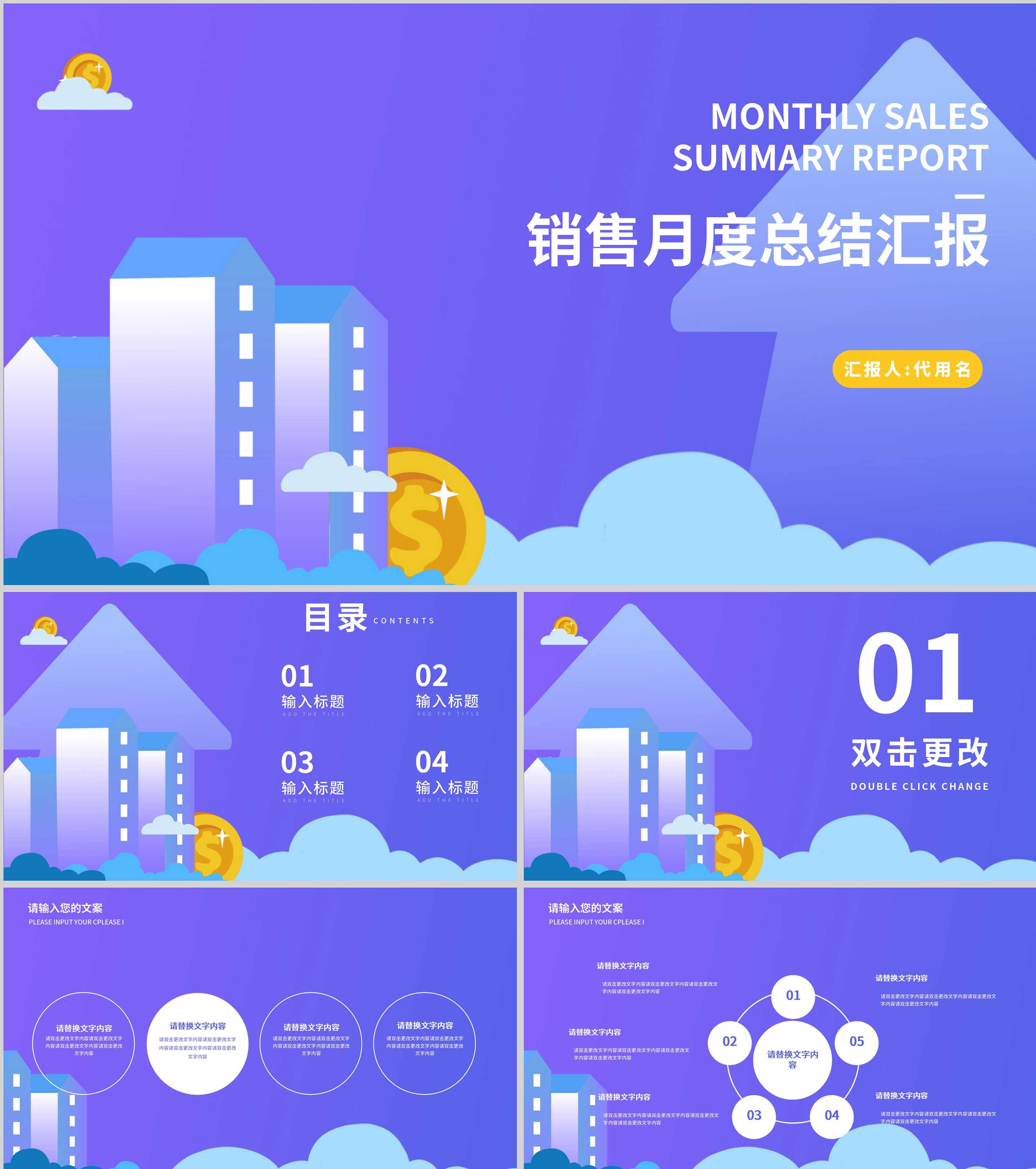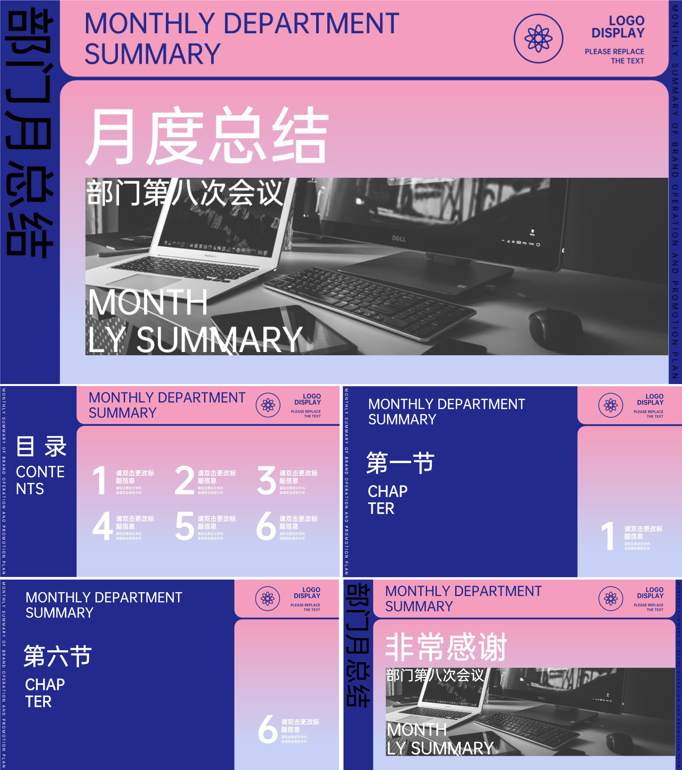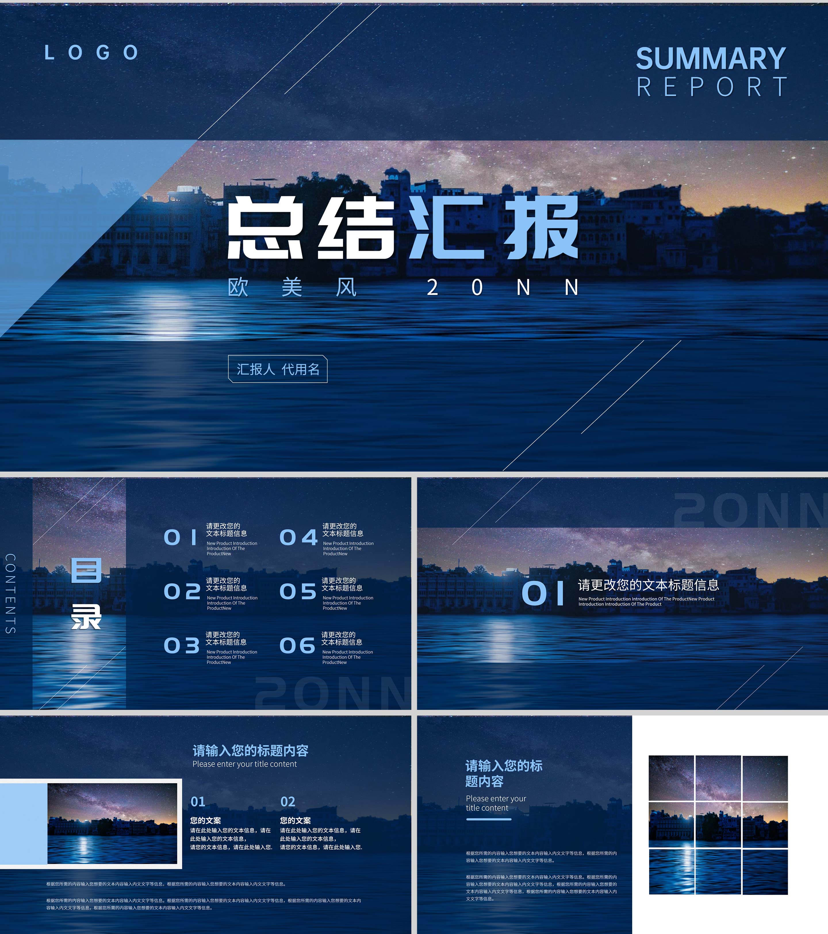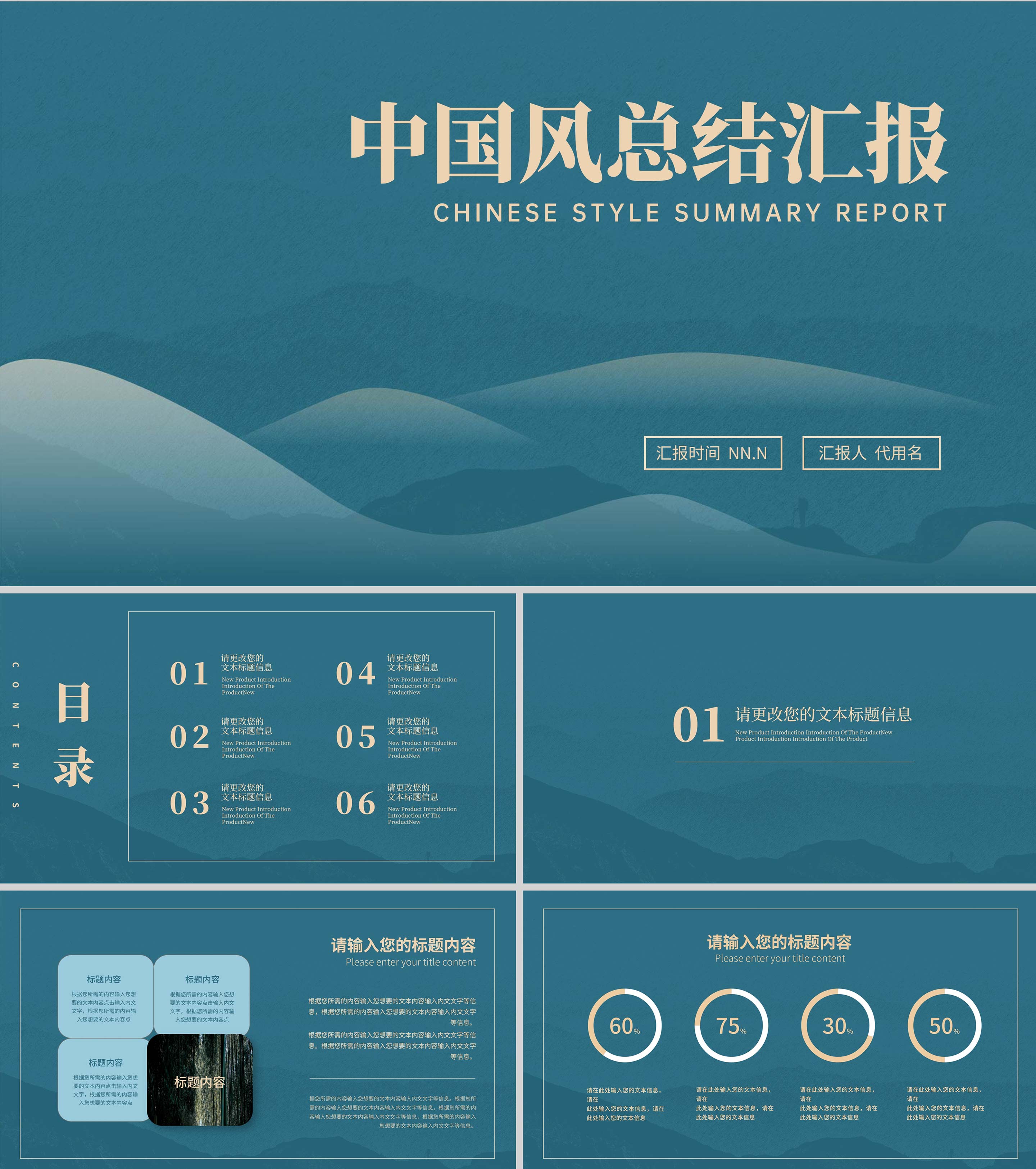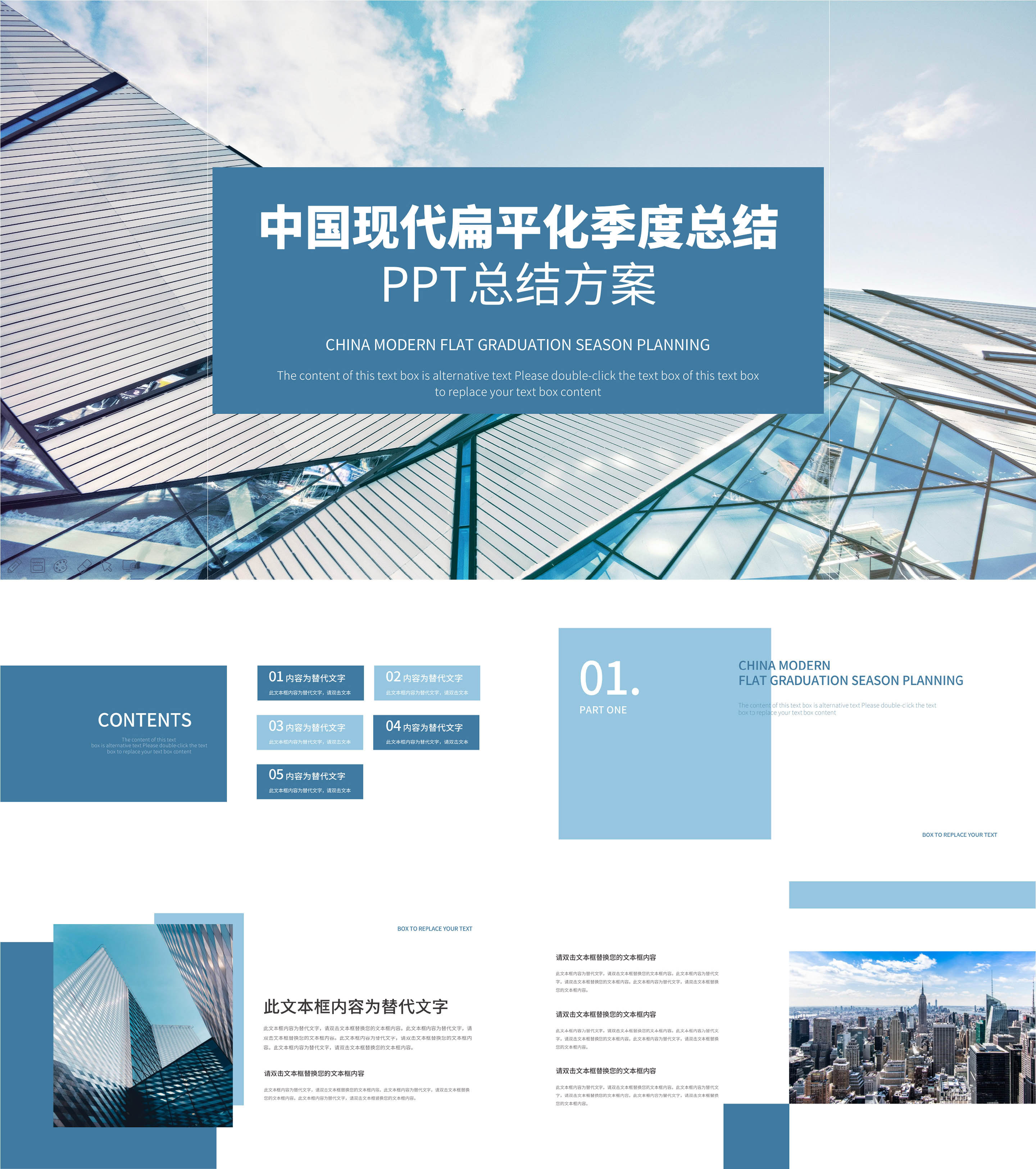蓝色小清新孟菲斯风总结汇报PPT模板