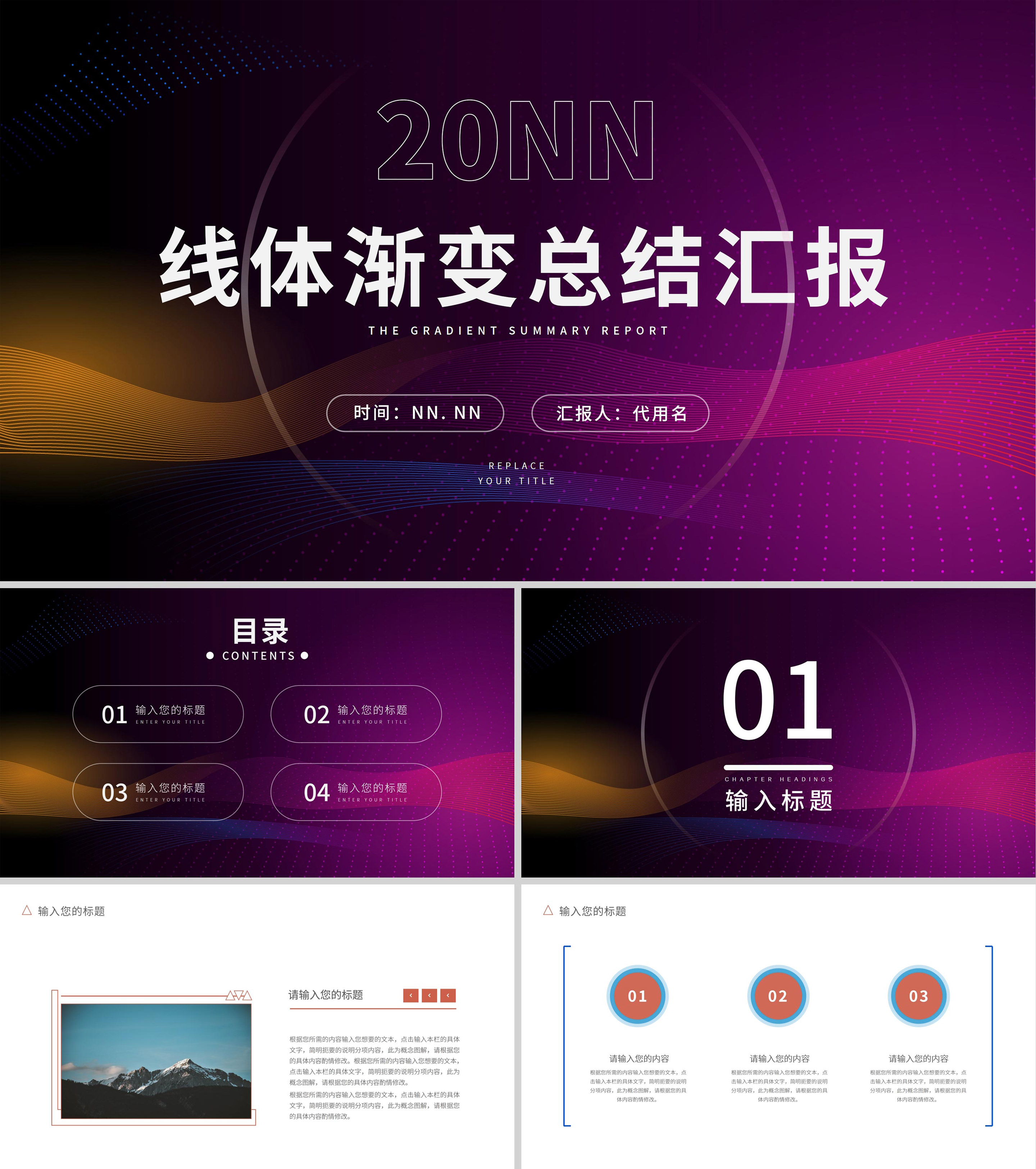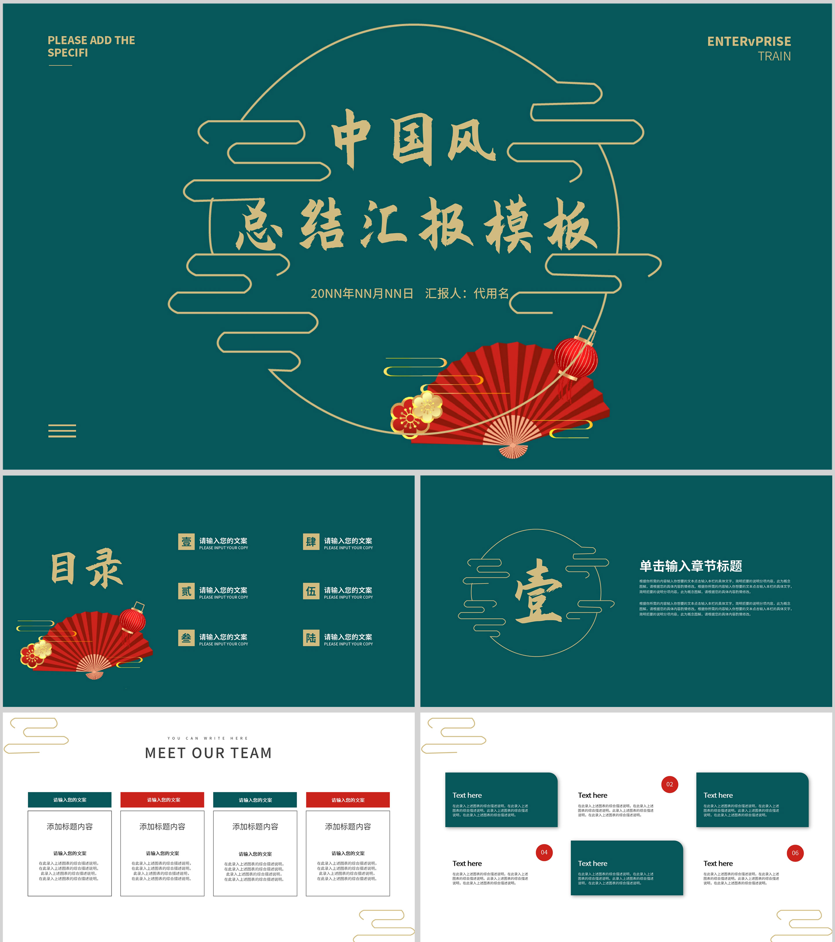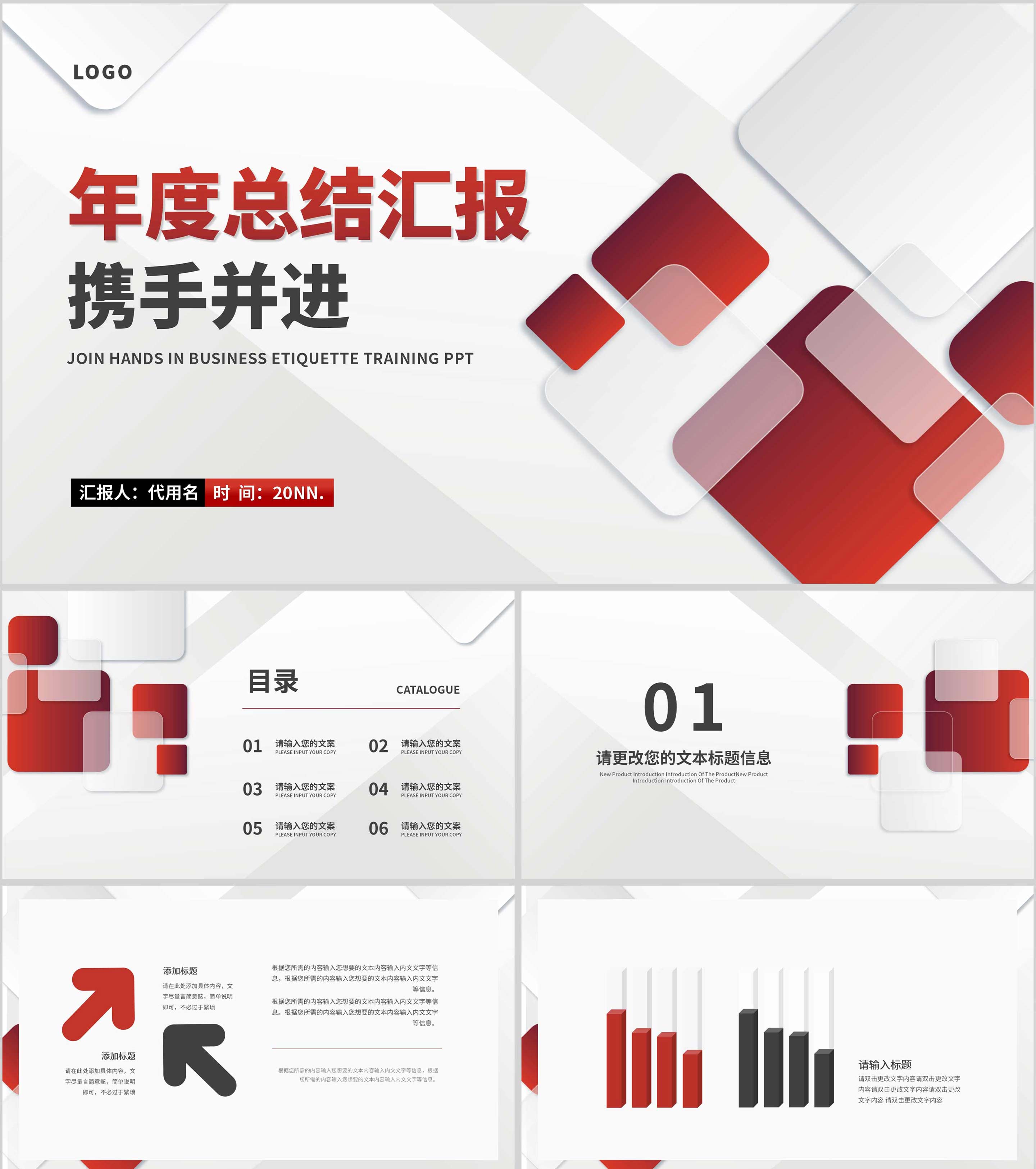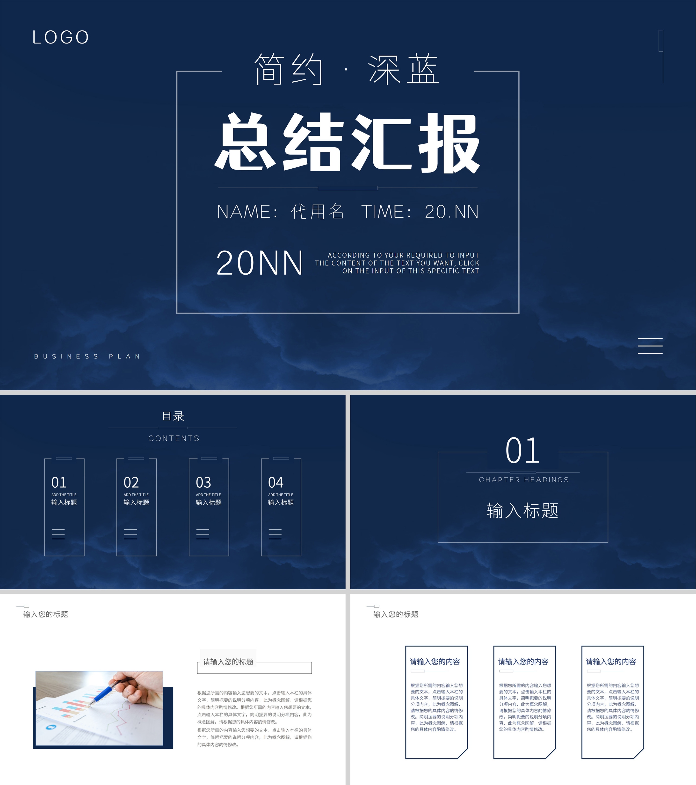蓝色小清新孟菲斯风总结汇报PPT模板