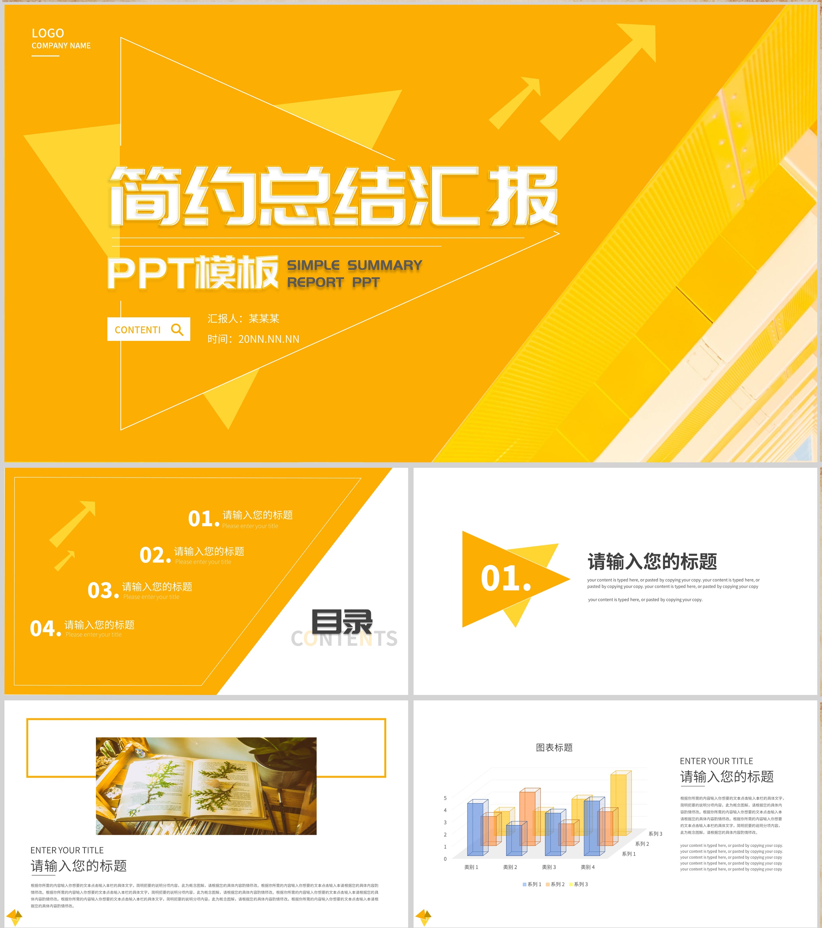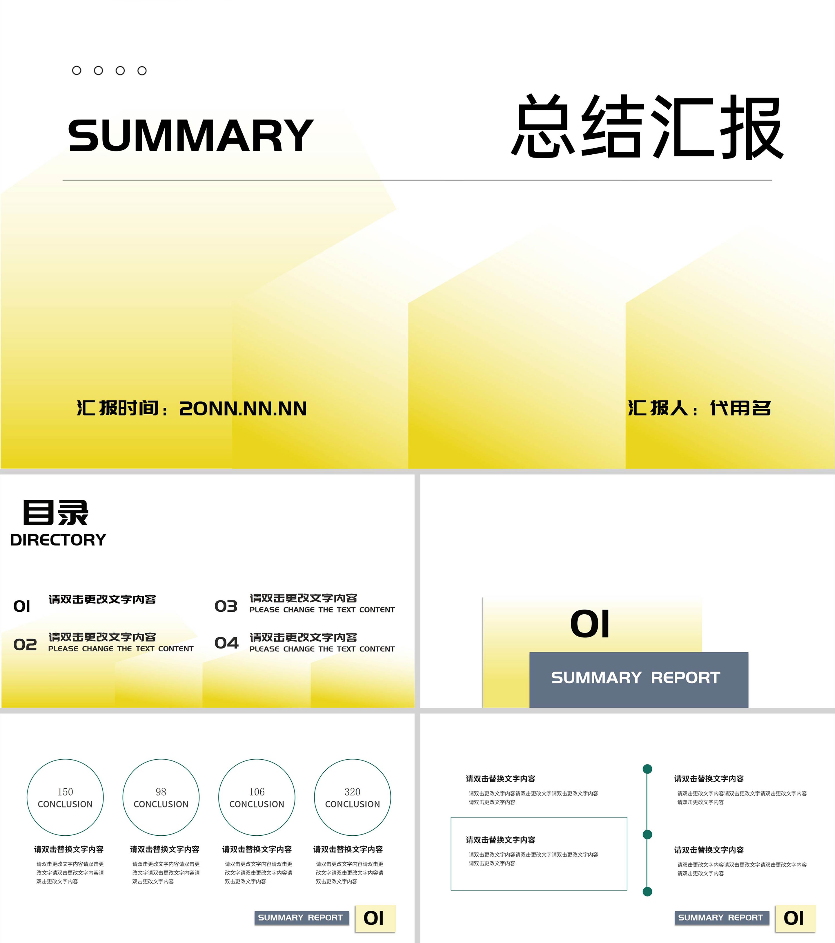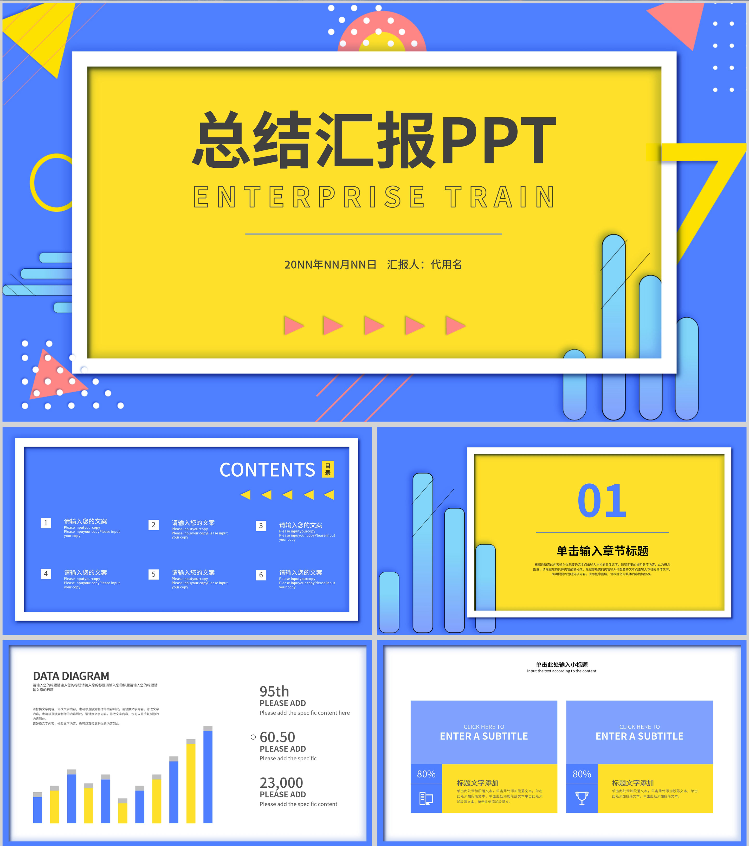 蓝黄拼色孟菲斯风总结汇报PPT模板
