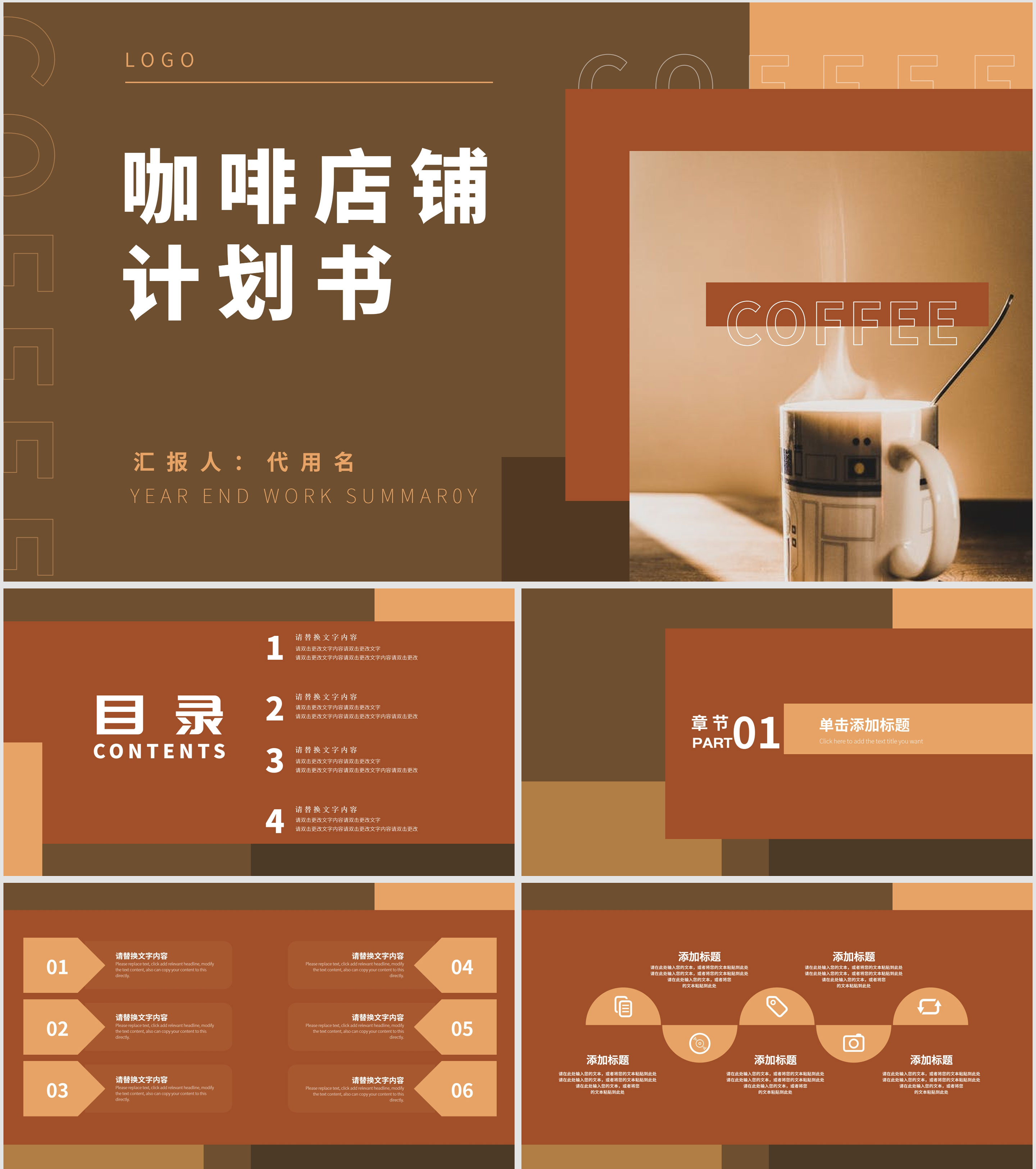 棕色简约风咖啡店铺计划书PPT模板