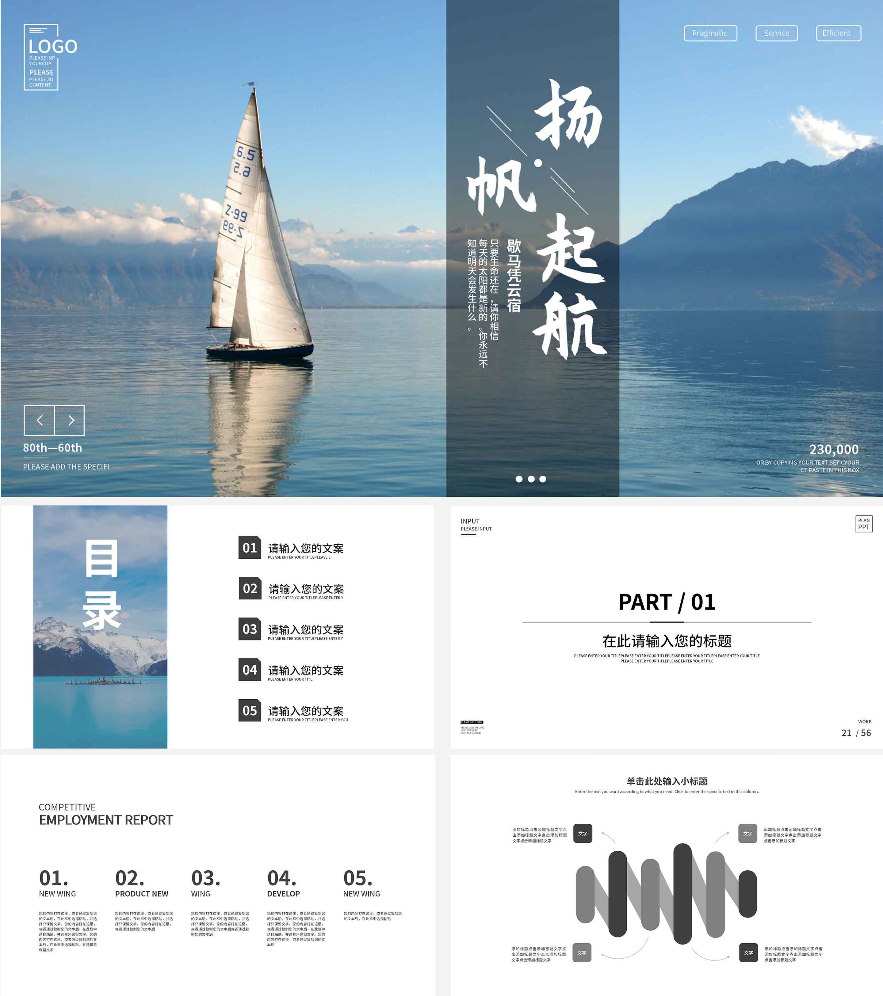 蓝色简约扬帆起航宣传PPT模板