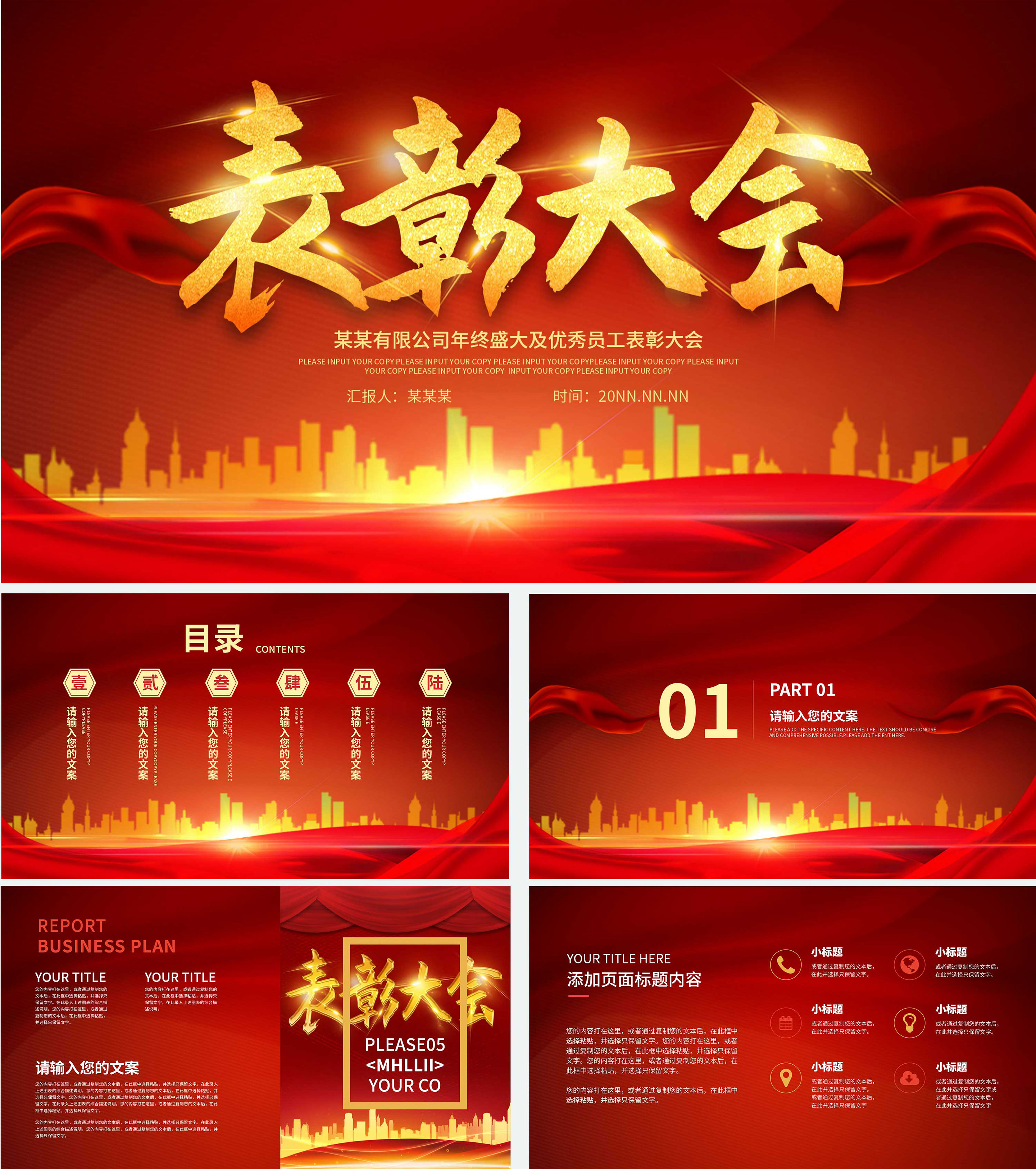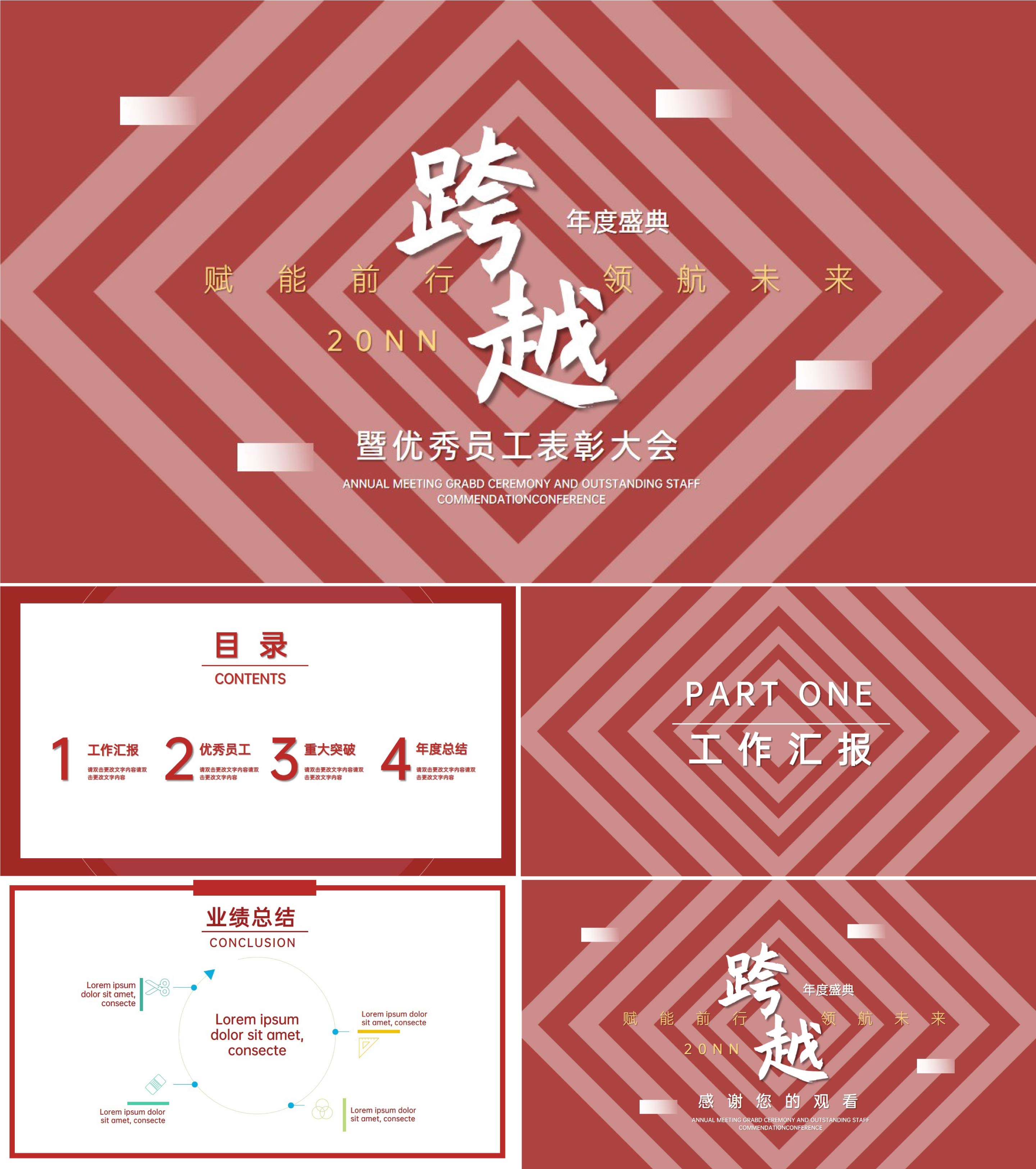 红色简约大气年终表彰大会PPT模板