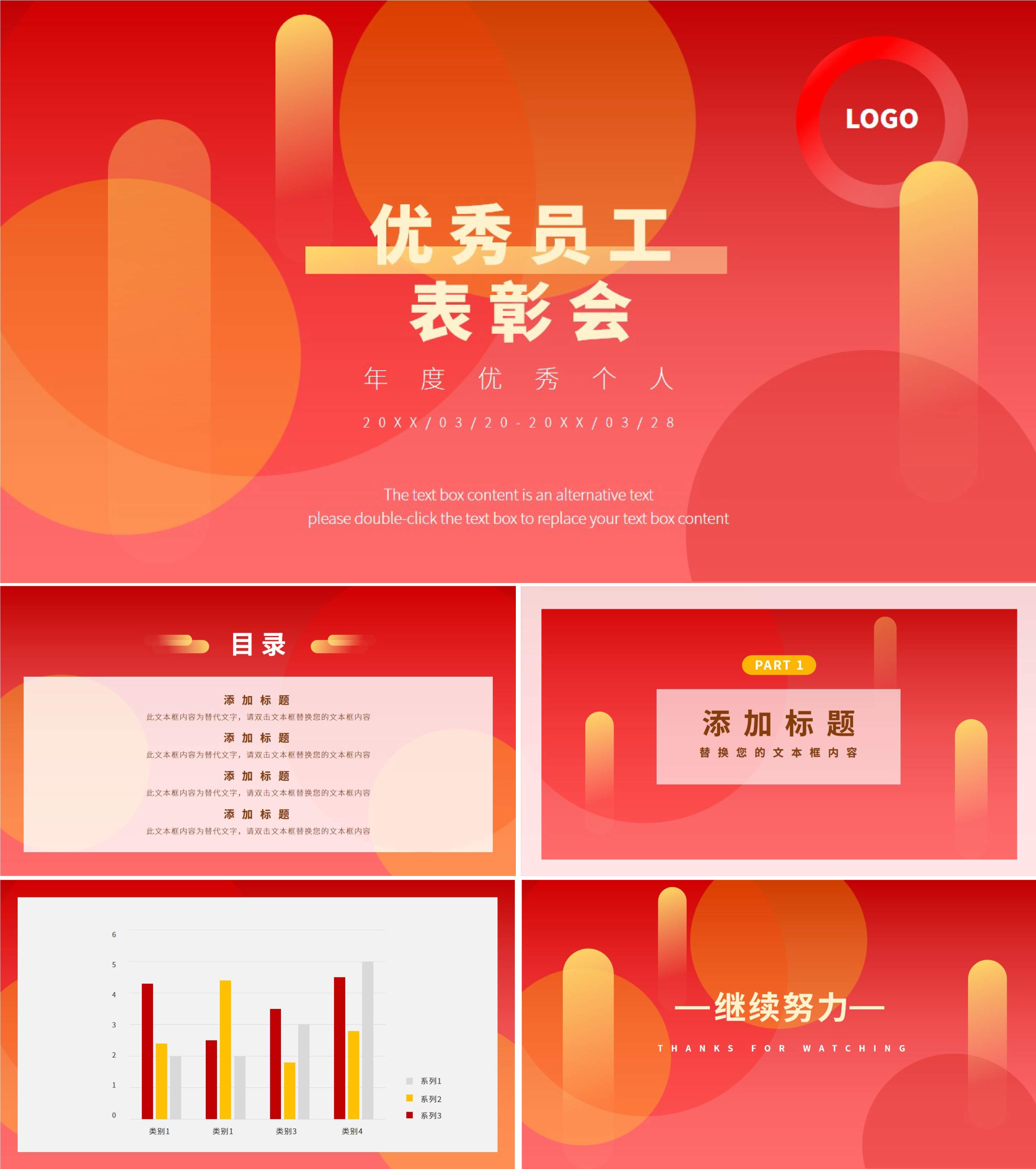 红色几何风员工表彰会PPT模板