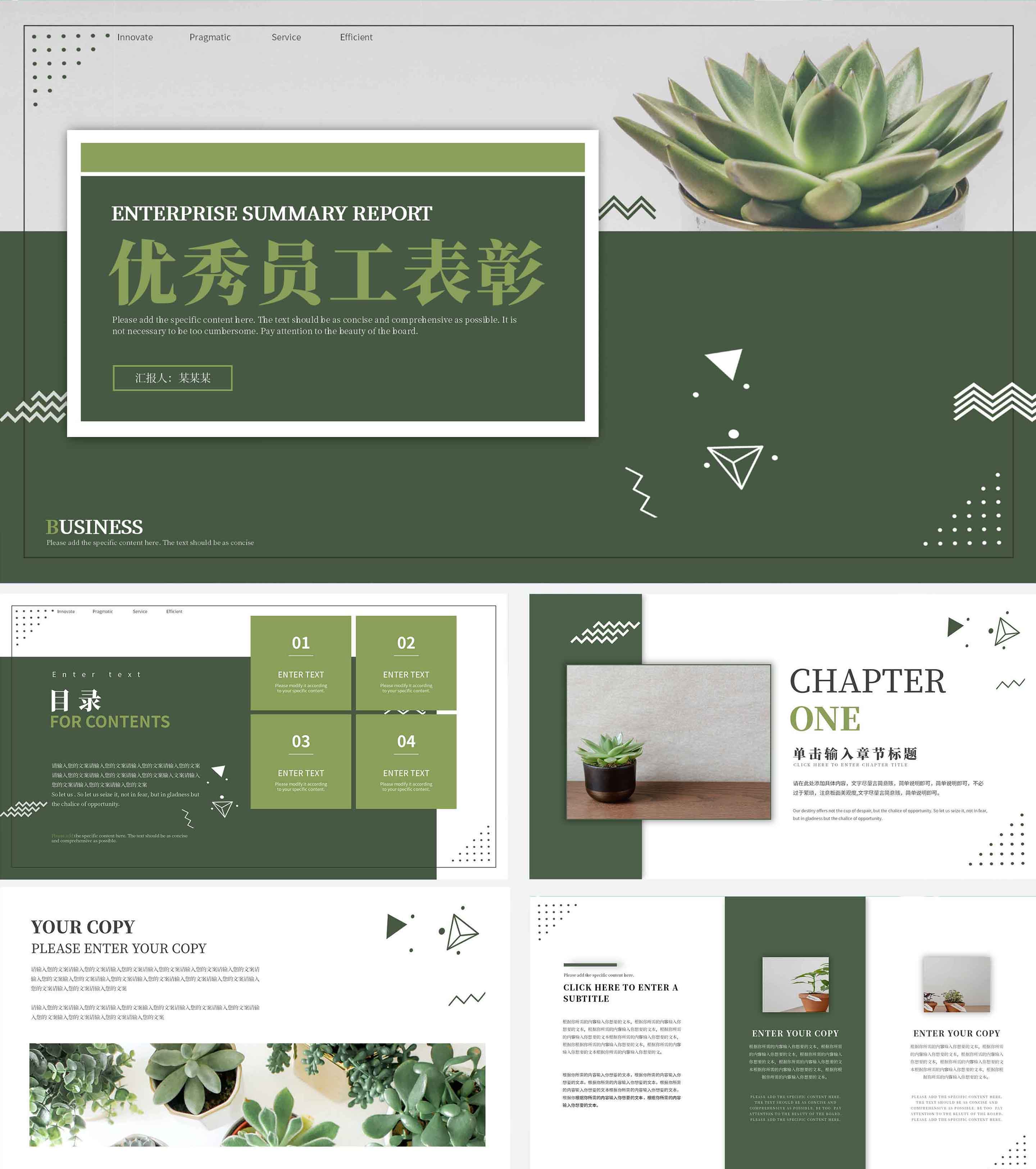绿色小清新画册风优秀员工表彰PPT模板