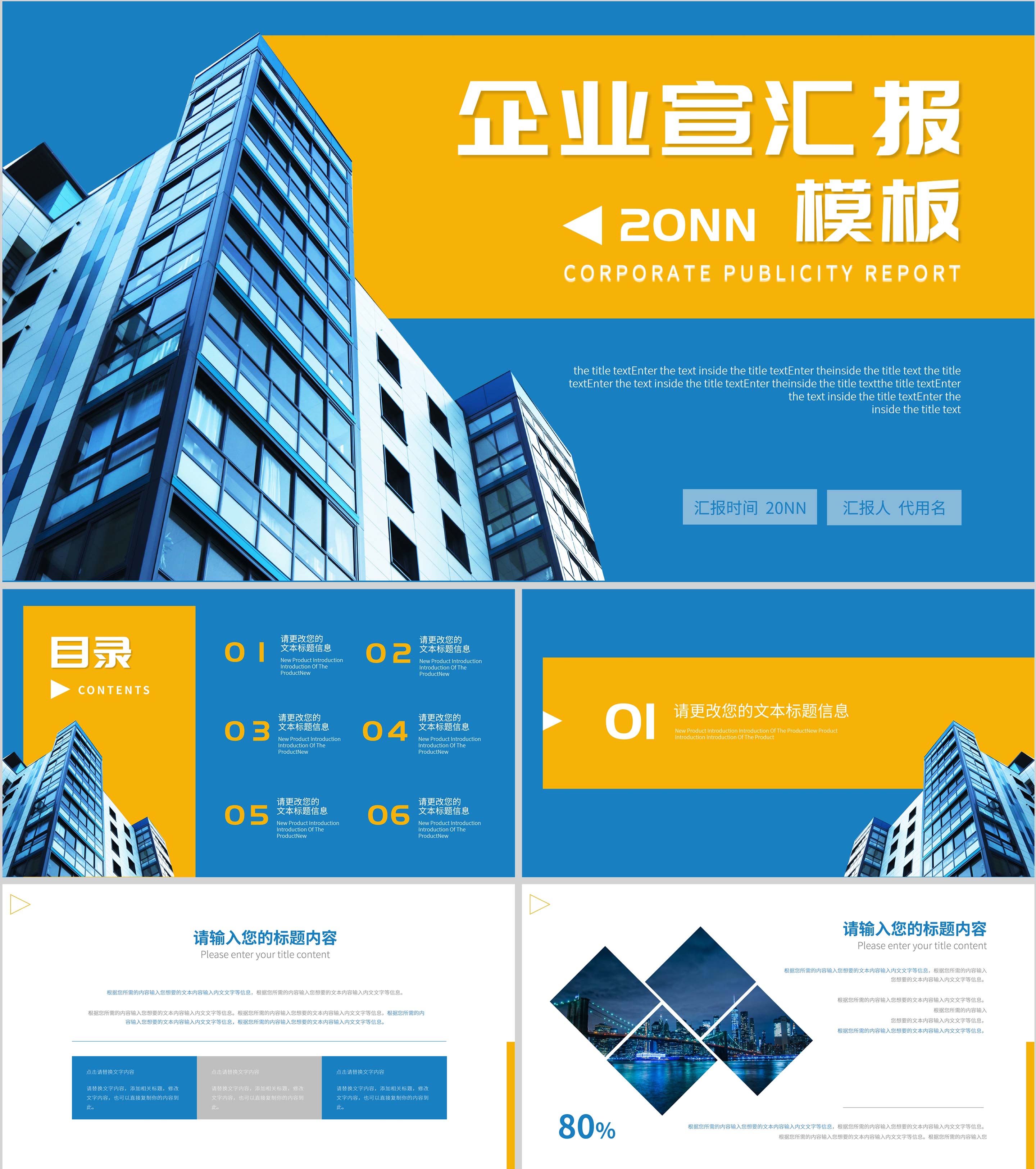 蓝色简约风企业宣传汇报PPT模板
