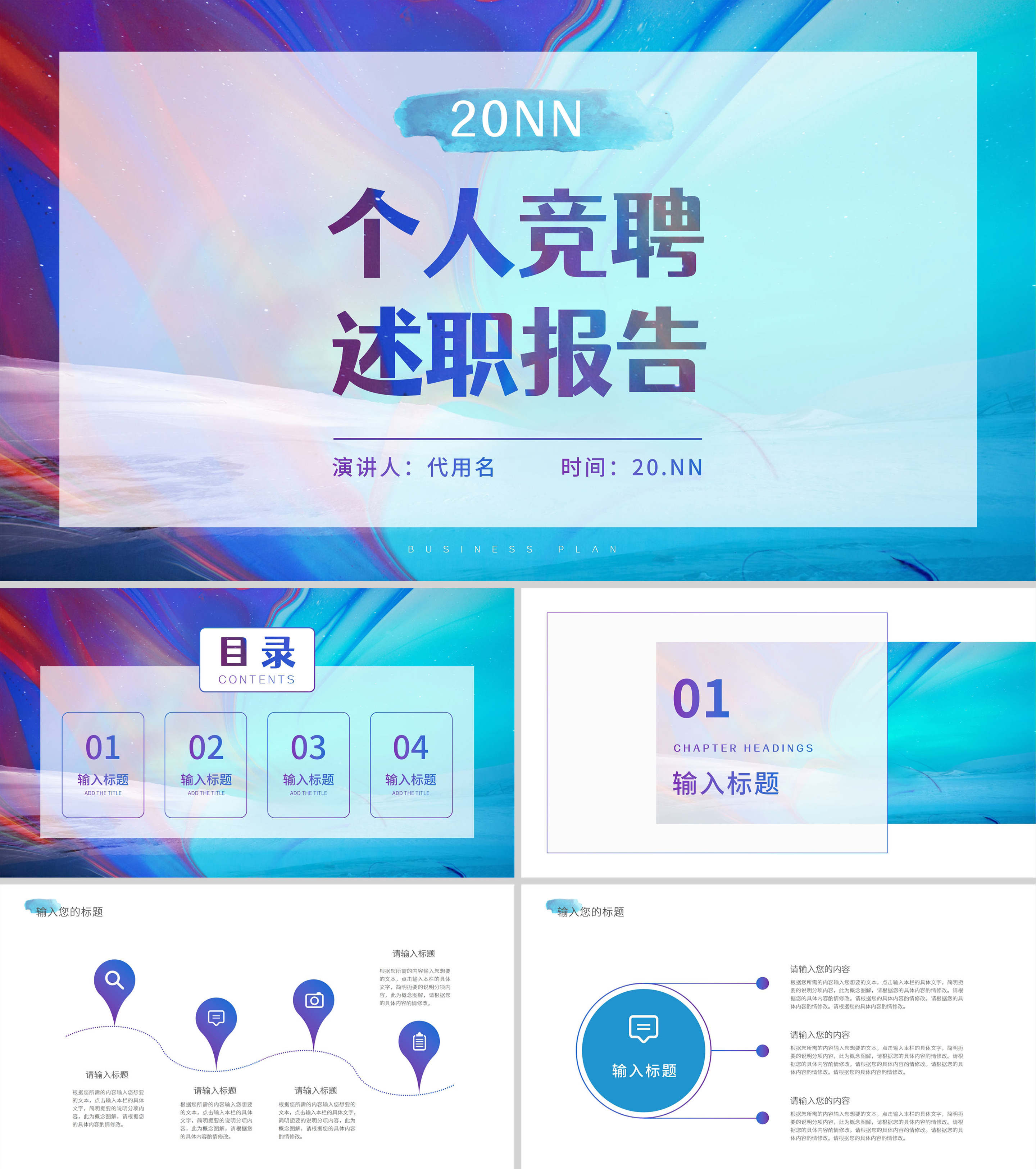蓝色简约晕染风竞聘述职PPT模板